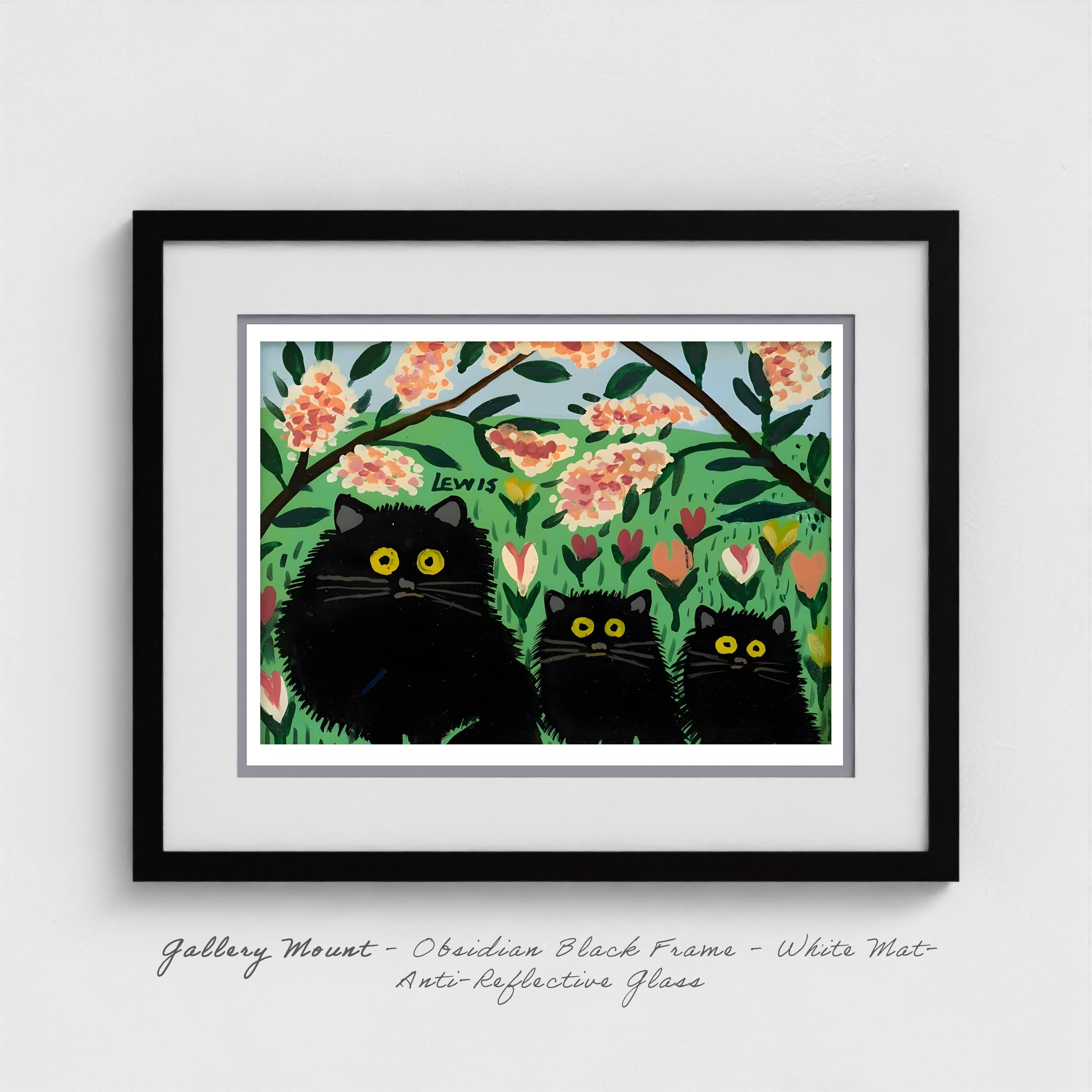 Gallery Mount Museum-style giclée fine art print on archival paper, protected under glass with acrylic glaze. Presented with a deep snow-white mount and fine white-grey margins, framed in solid hardwood and ready to hang. Gallery Mount option shown in Obsidian Black. Also available in Burnished Gold or Mahogany upon selection.