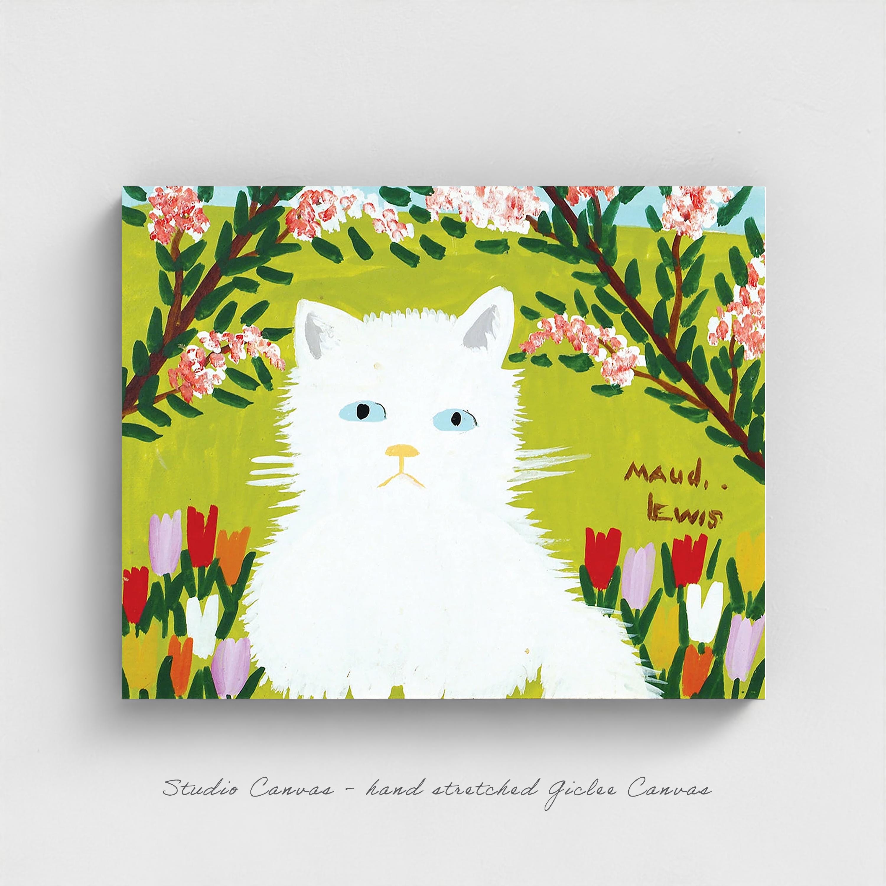 Embrace the tender companionship that warmed Maritime households through Maud Lewis's beloved "White Cat," capturing the quiet presence of feline friends who shared the intimate rhythms of Nova Scotia rural life. This endearing work showcases Lewis's profound understanding of how companion animals became family members in isolated Maritime communities, transforming a simple white cat into a folk art celebration of the bonds that brought comfort and joy to everyday domestic life.