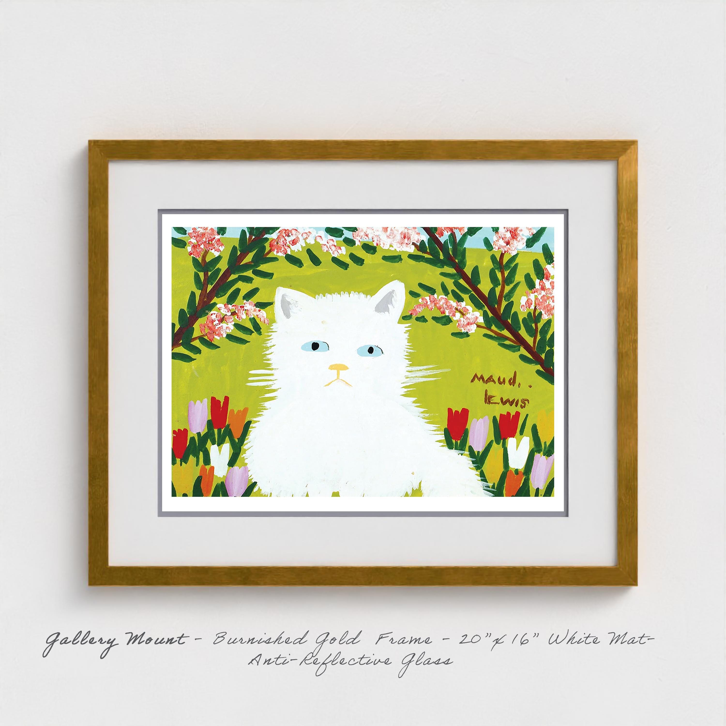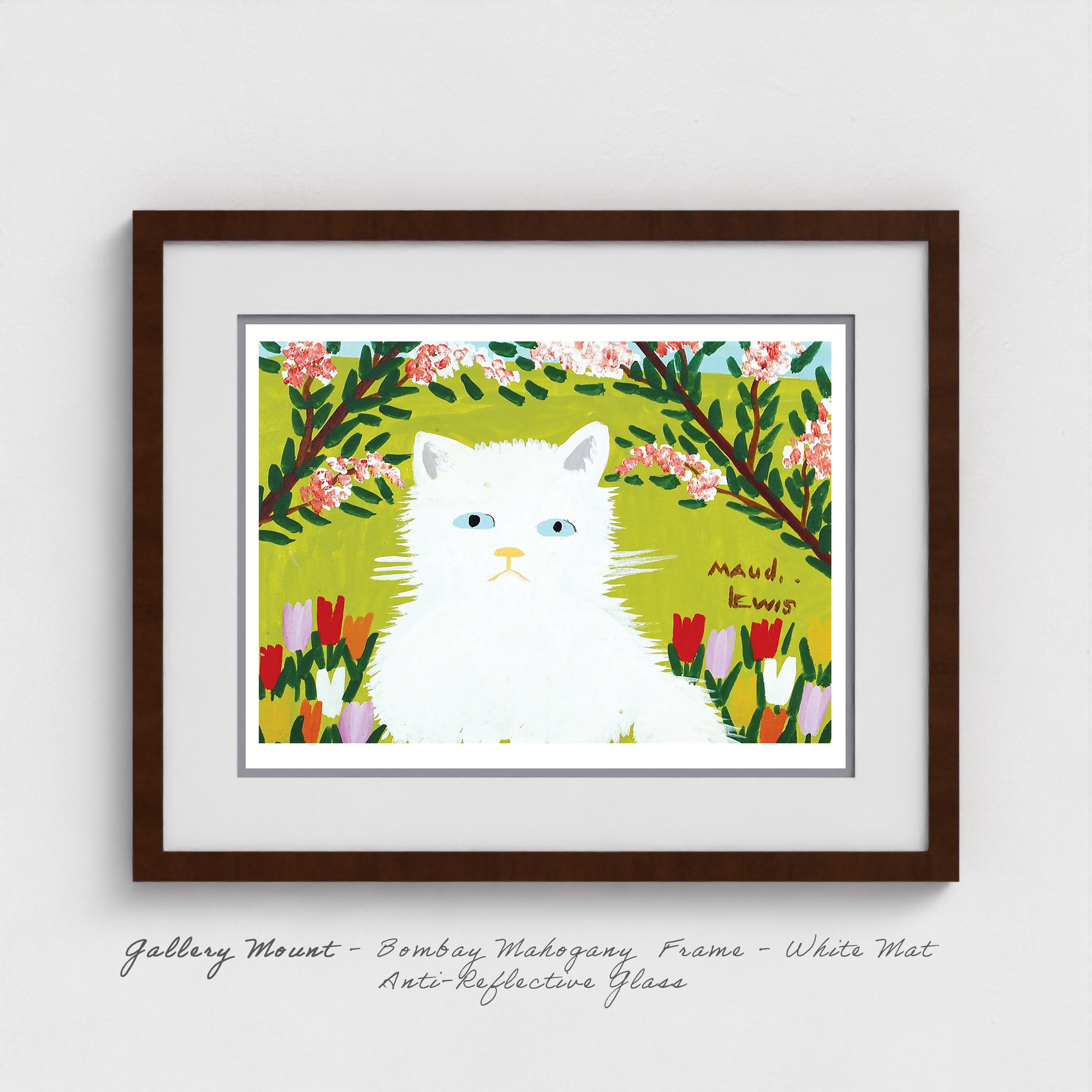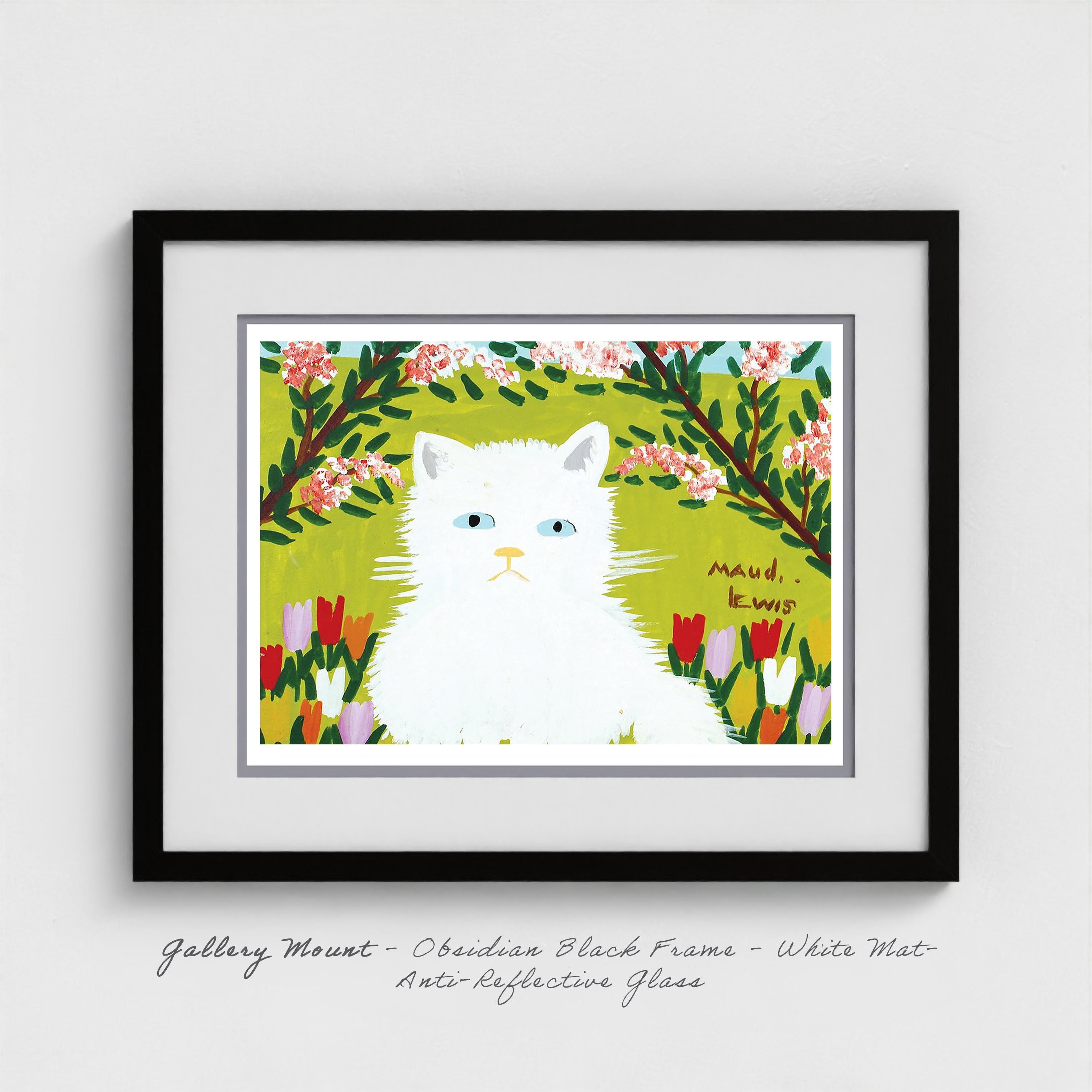 White Cat Folk Art Print - Nova Scotia Companion Animal Maritime Hearth Gift