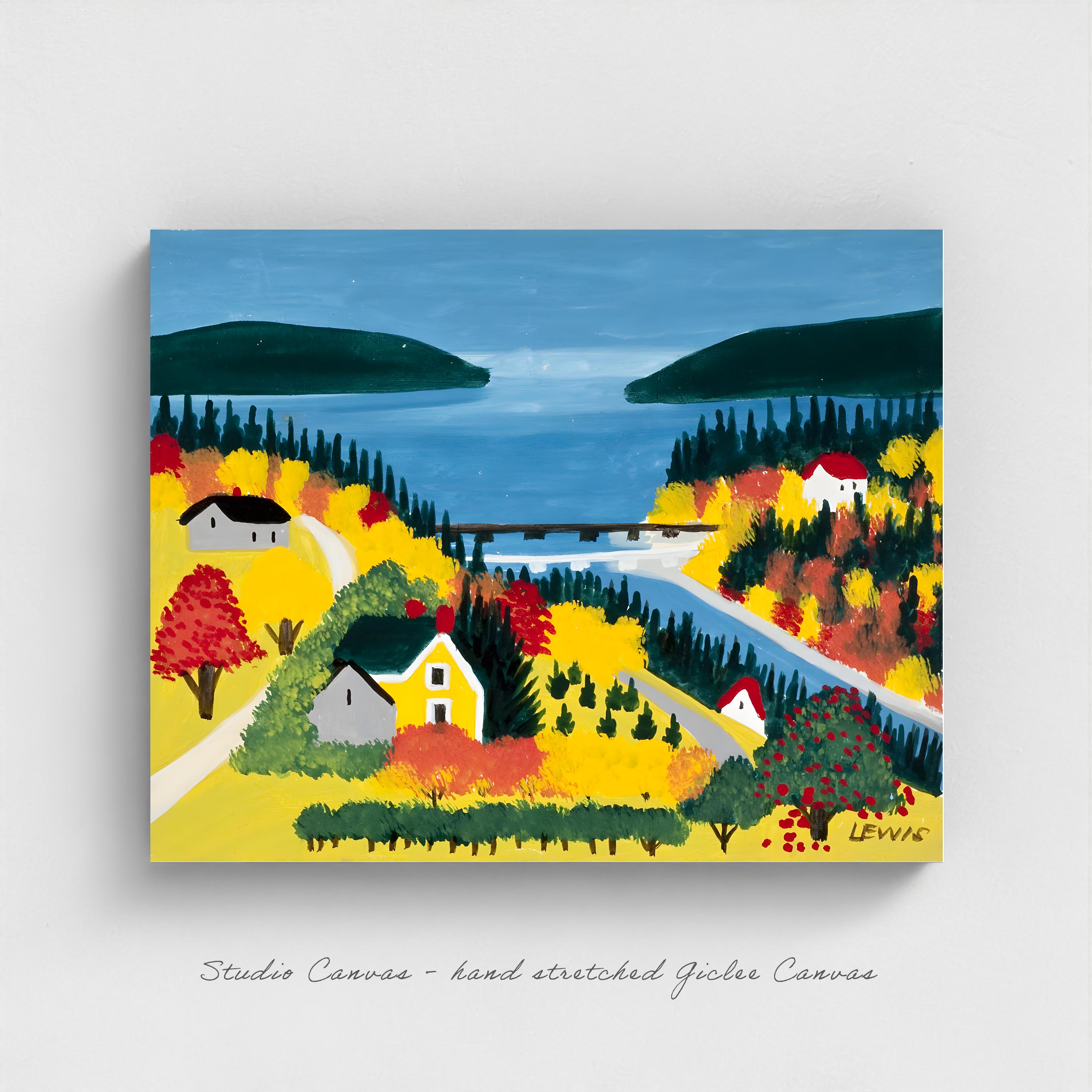Lewis painted these communities with deep appreciation for their quiet strength and enduring connection to the sea. Her work captures the harmony between human settlement and natural environment that characterised the best of Maritime coastal living.
