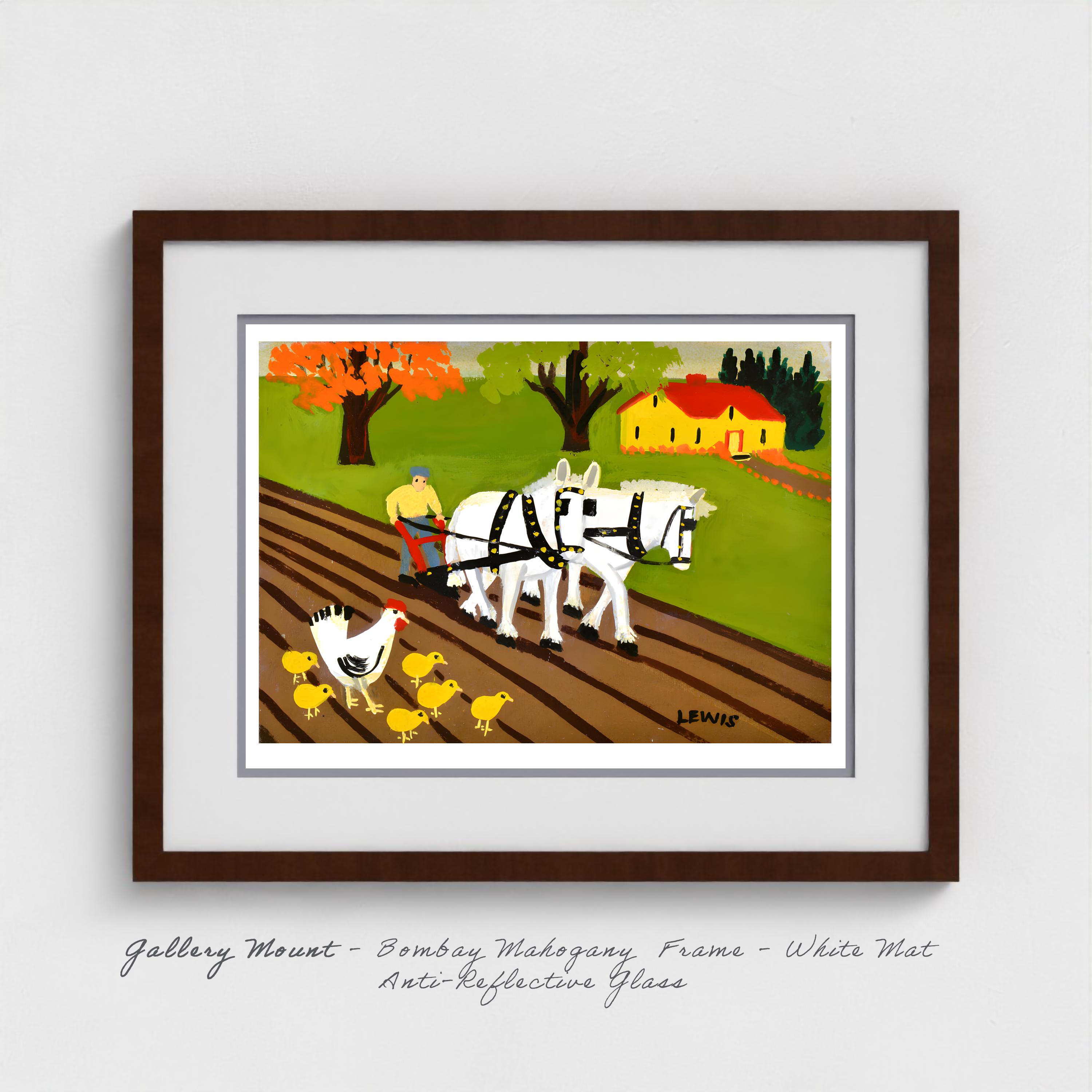 Transform your space with this beloved Maud Lewis "Hen with Chicks and Horses Plowing" reproduction, capturing the charming innocence of Canada's most celebrated folk artist. This iconic Maritime scene represents the heart of Nova Scotia's pastoral beauty, professionally reproduced using gallery-grade materials for lasting joy.