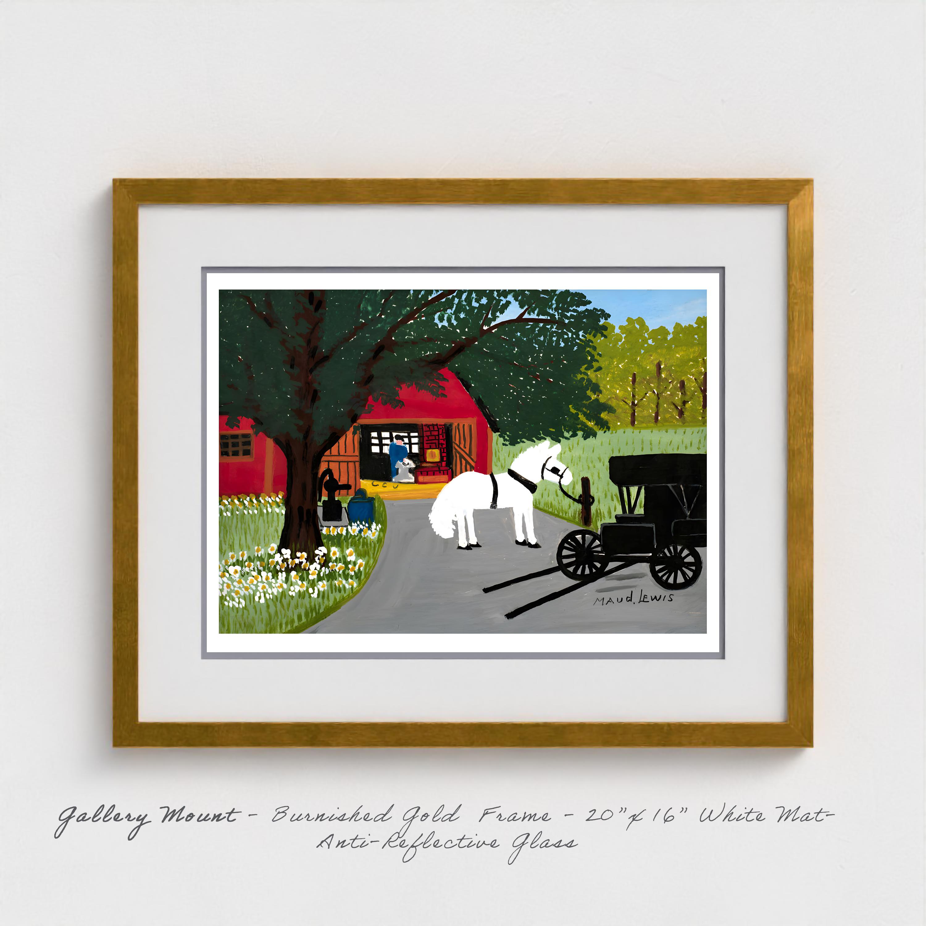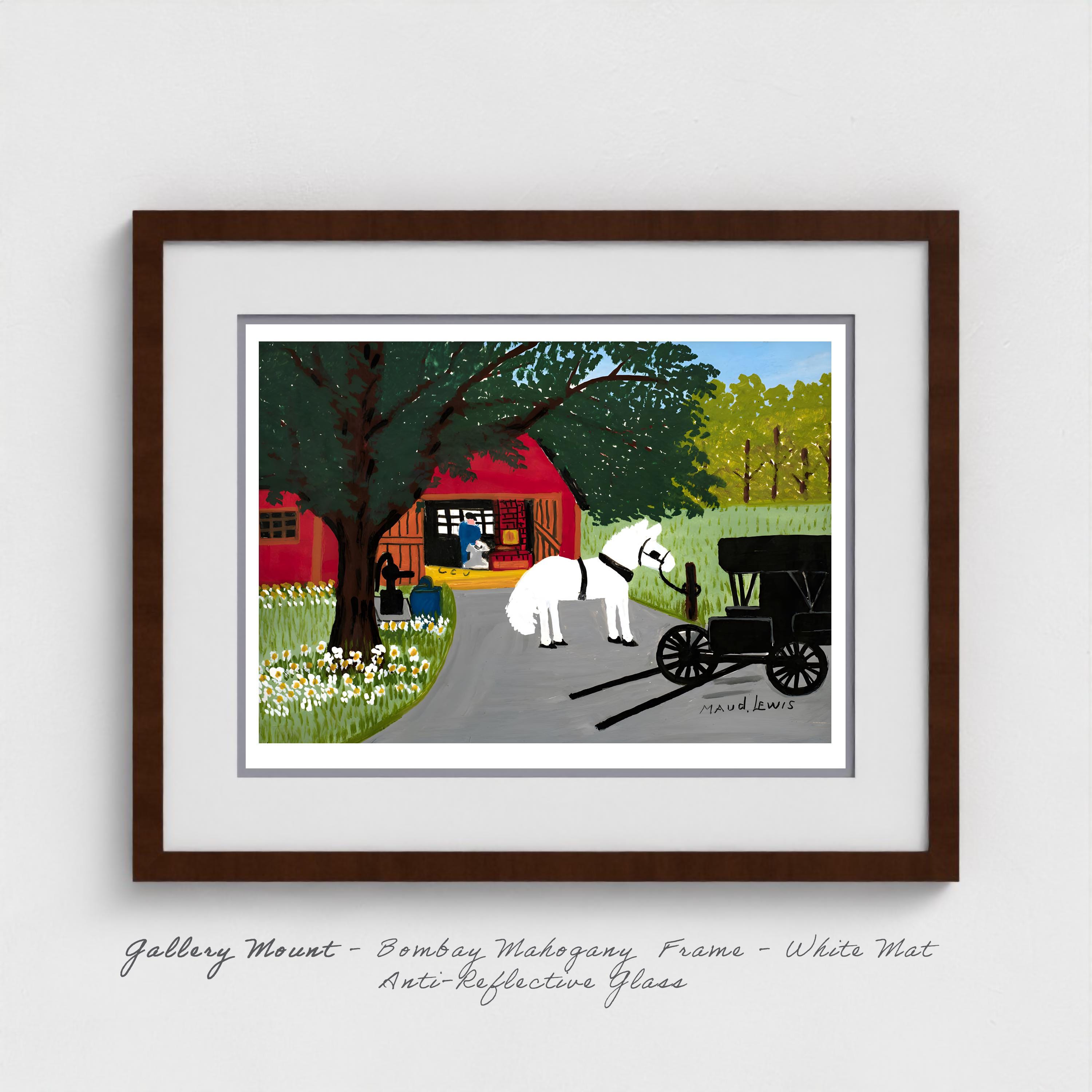 Celebrate the essential trades that built Maritime communities through Maud Lewis's industrious "The Blacksmith's Shop," capturing the heart of village craftsmanship where iron was shaped into the tools that sustained rural Nova Scotia life. This authentic work honours the skilled blacksmiths whose forges were centres of community activity and essential problem-solving.