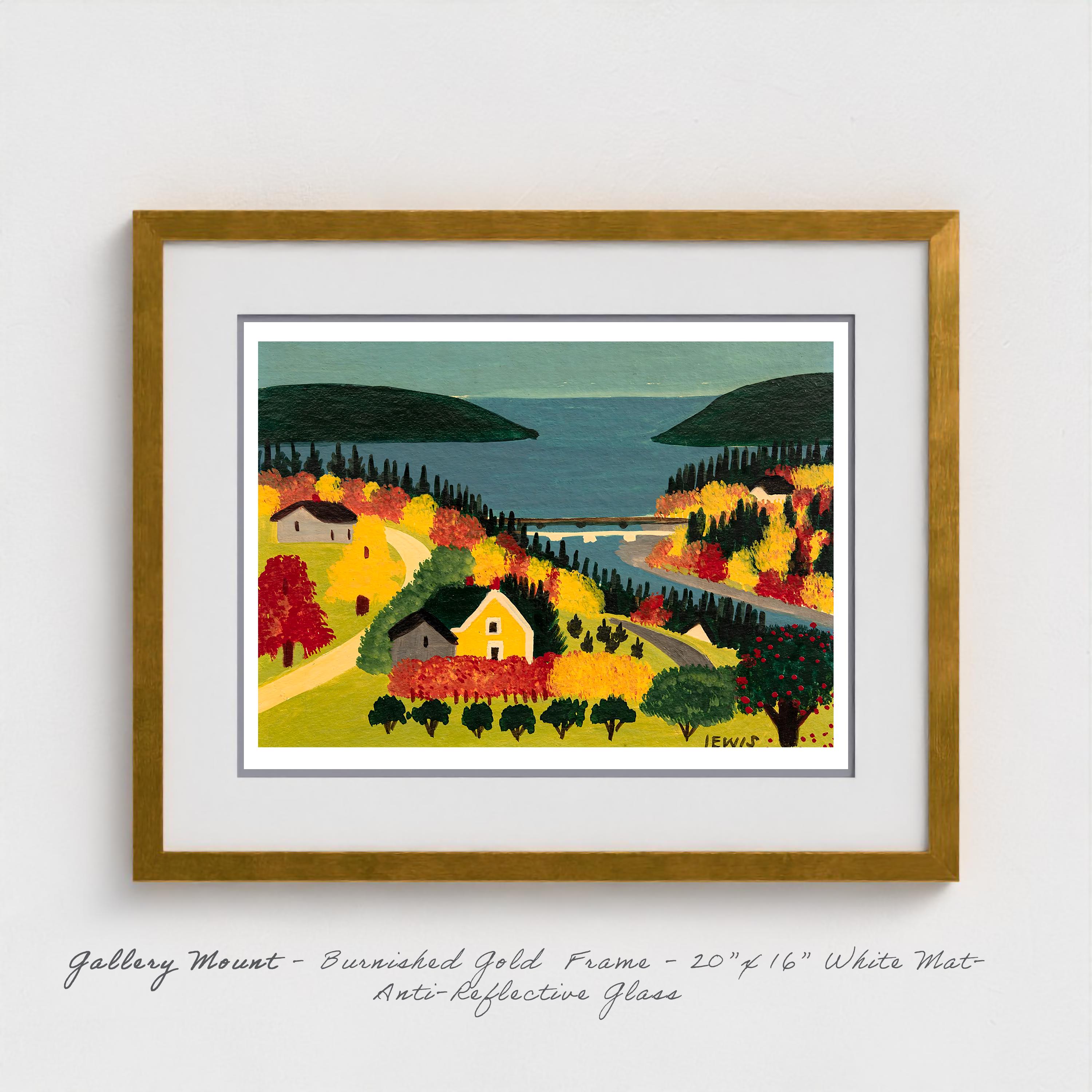 Transform your space instantly with Maud Lewis's beloved "Victoria Bridge" - Canada's most cherished folk art scene, ready to hang and enjoy today. This iconic Maritime painting captures the innocent joy and pastoral beauty that made Lewis a household name, professionally reproduced and elegantly presented for immediate display in your favourite room.