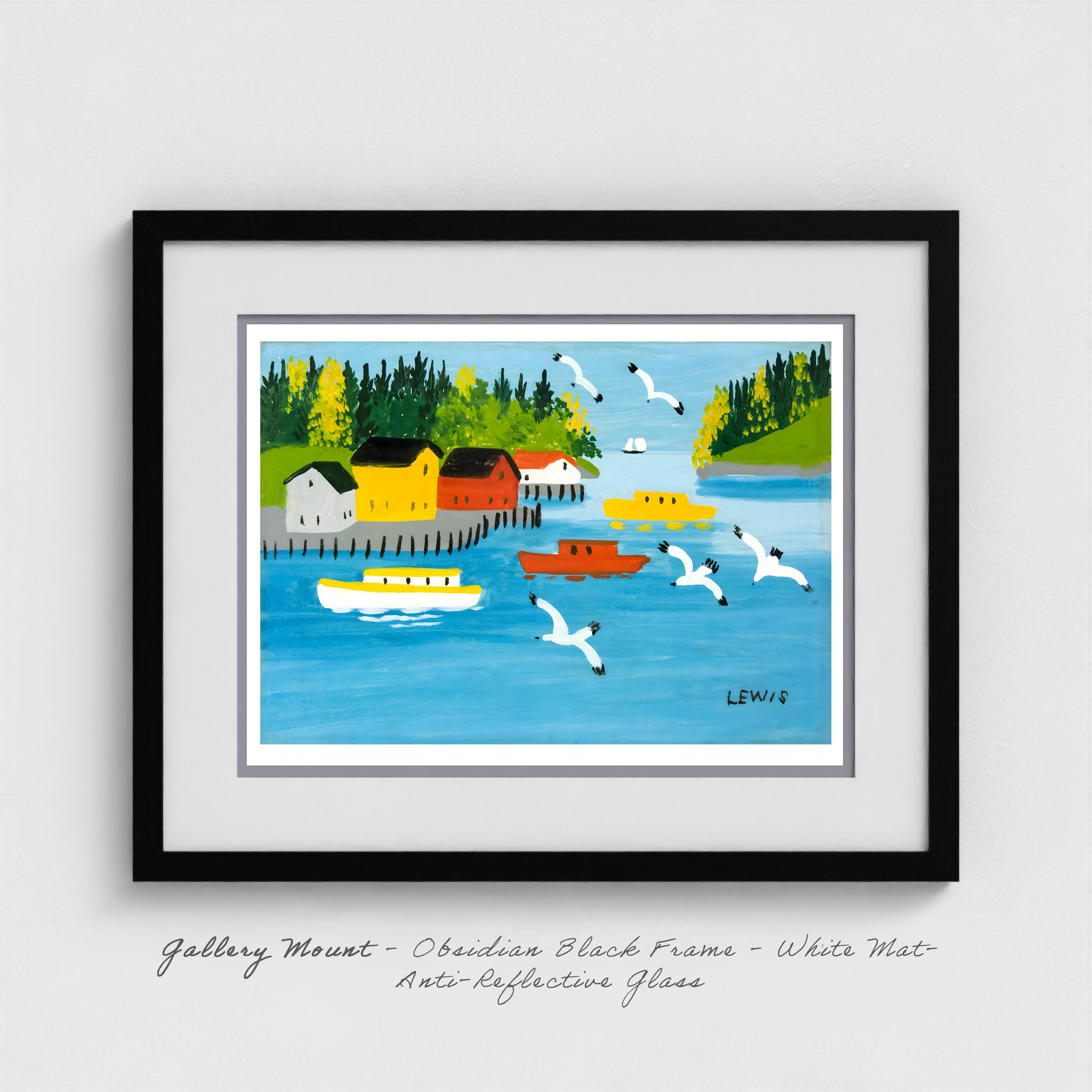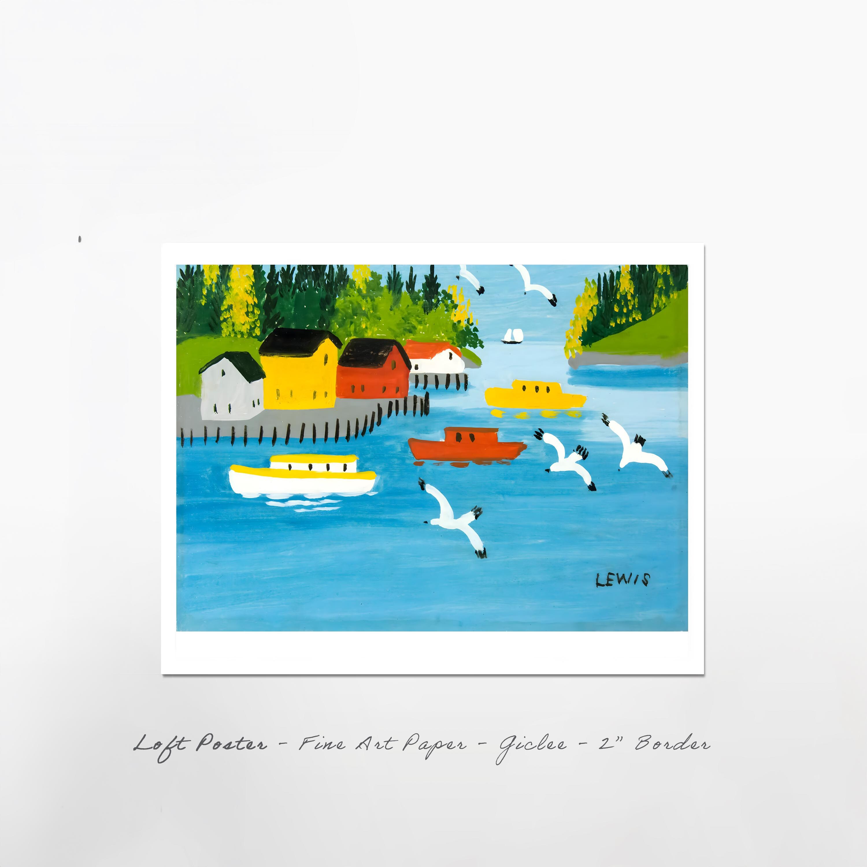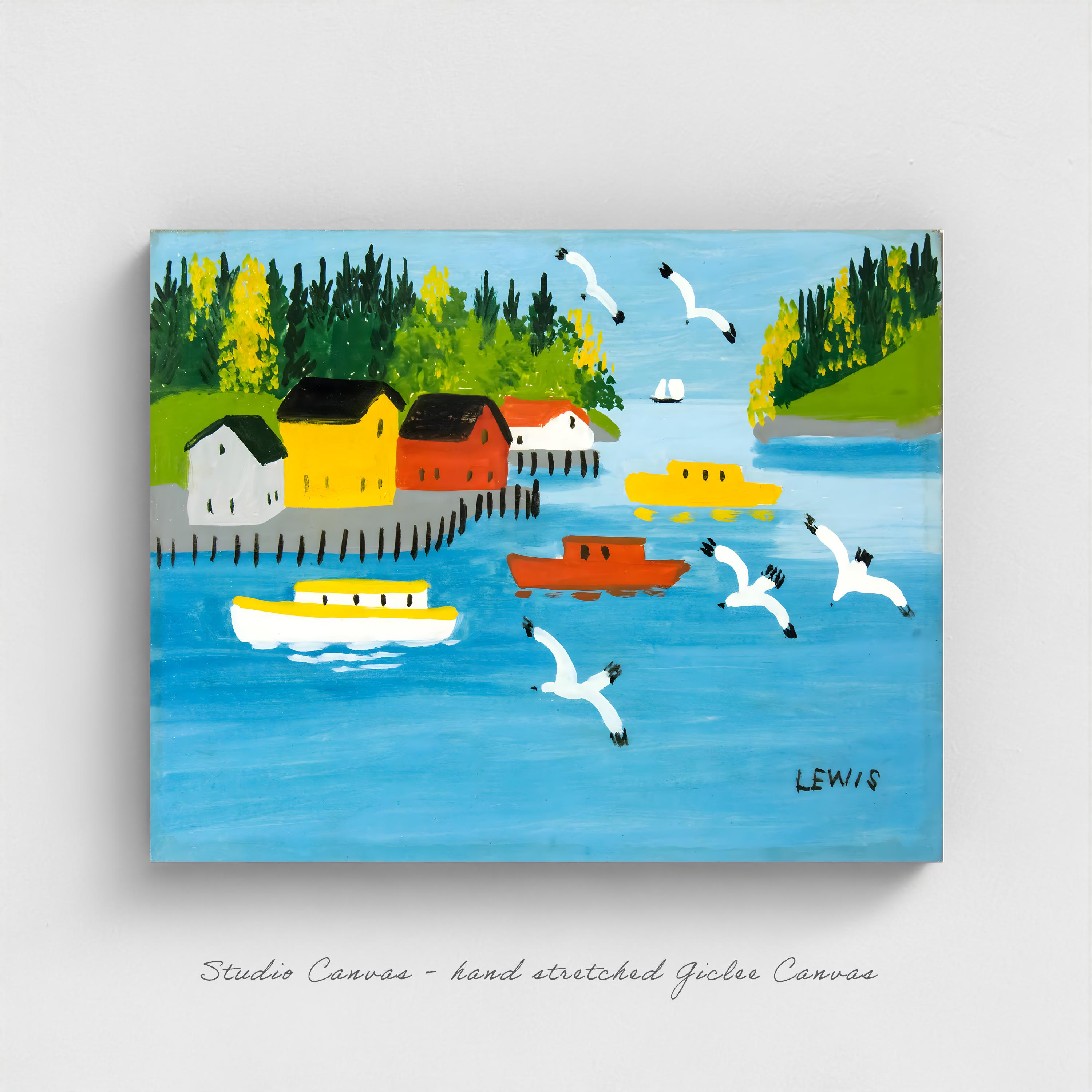 Maud Lewis Print: Boats at Sandy Cove, Canadian Folk Art Giclee