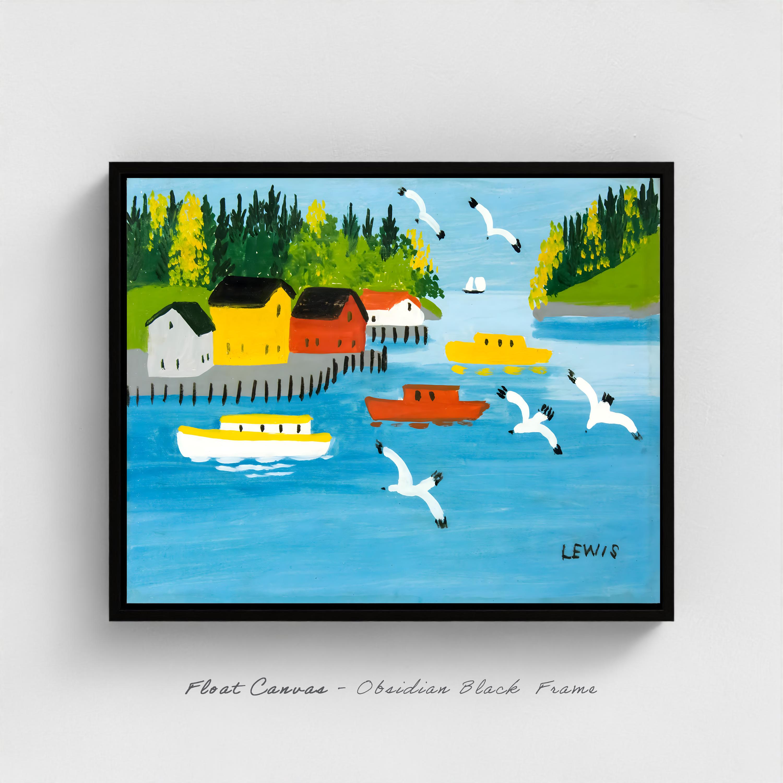 Sandy Cove represents the countless small Maritime harbours where boats gathered for protection and community. Lewis understood that these harbours were the heart of coastal life, where boats meant survival, partnership, and hope.