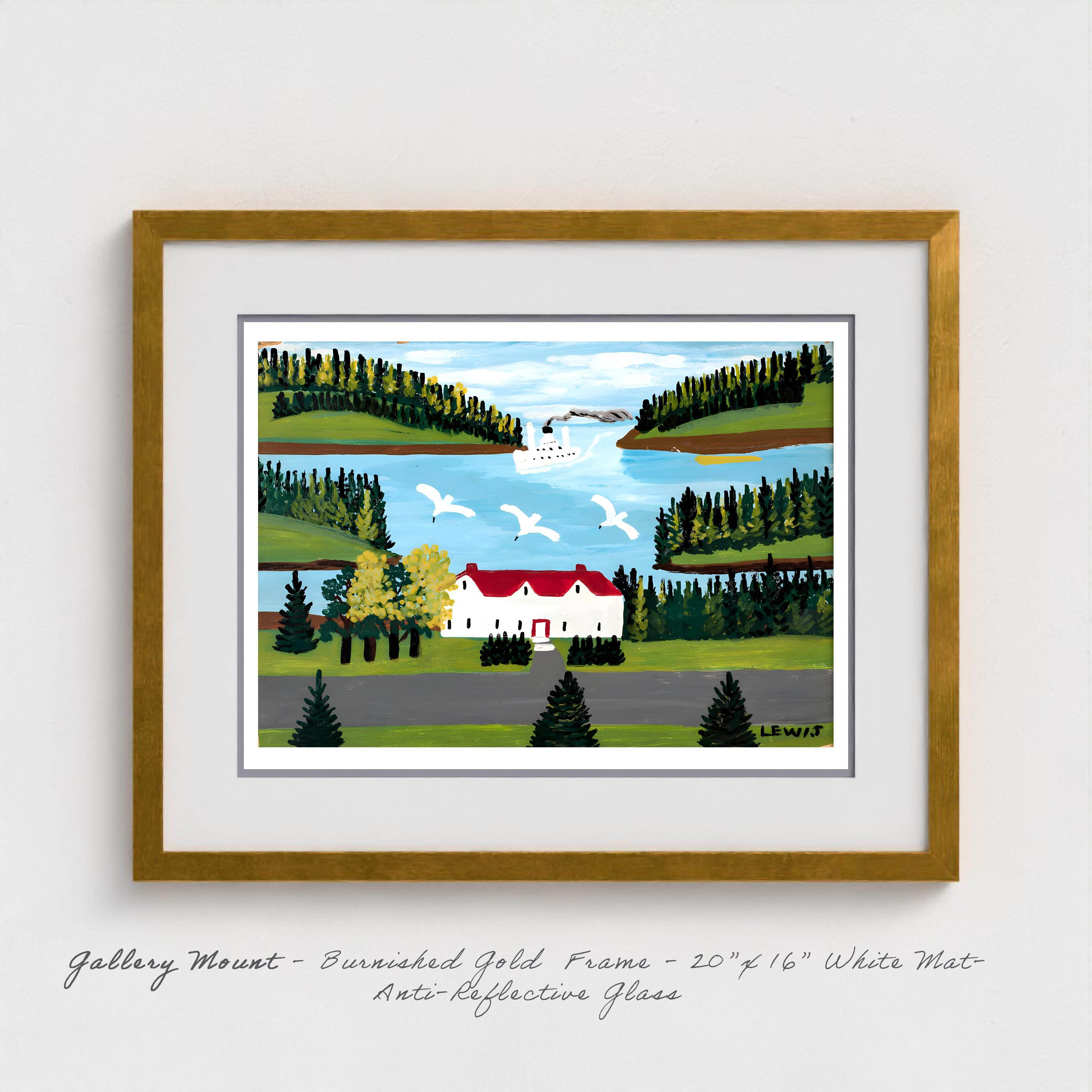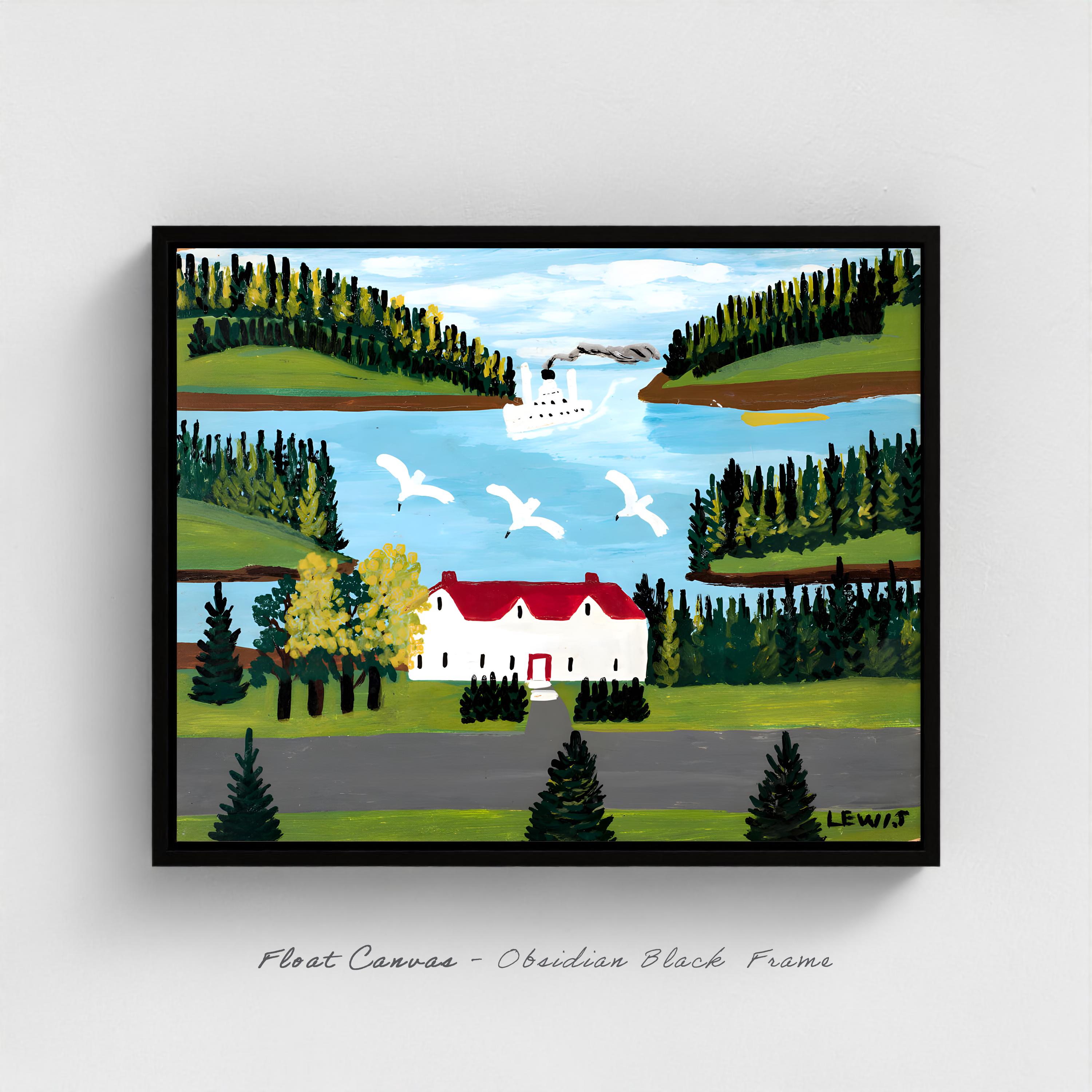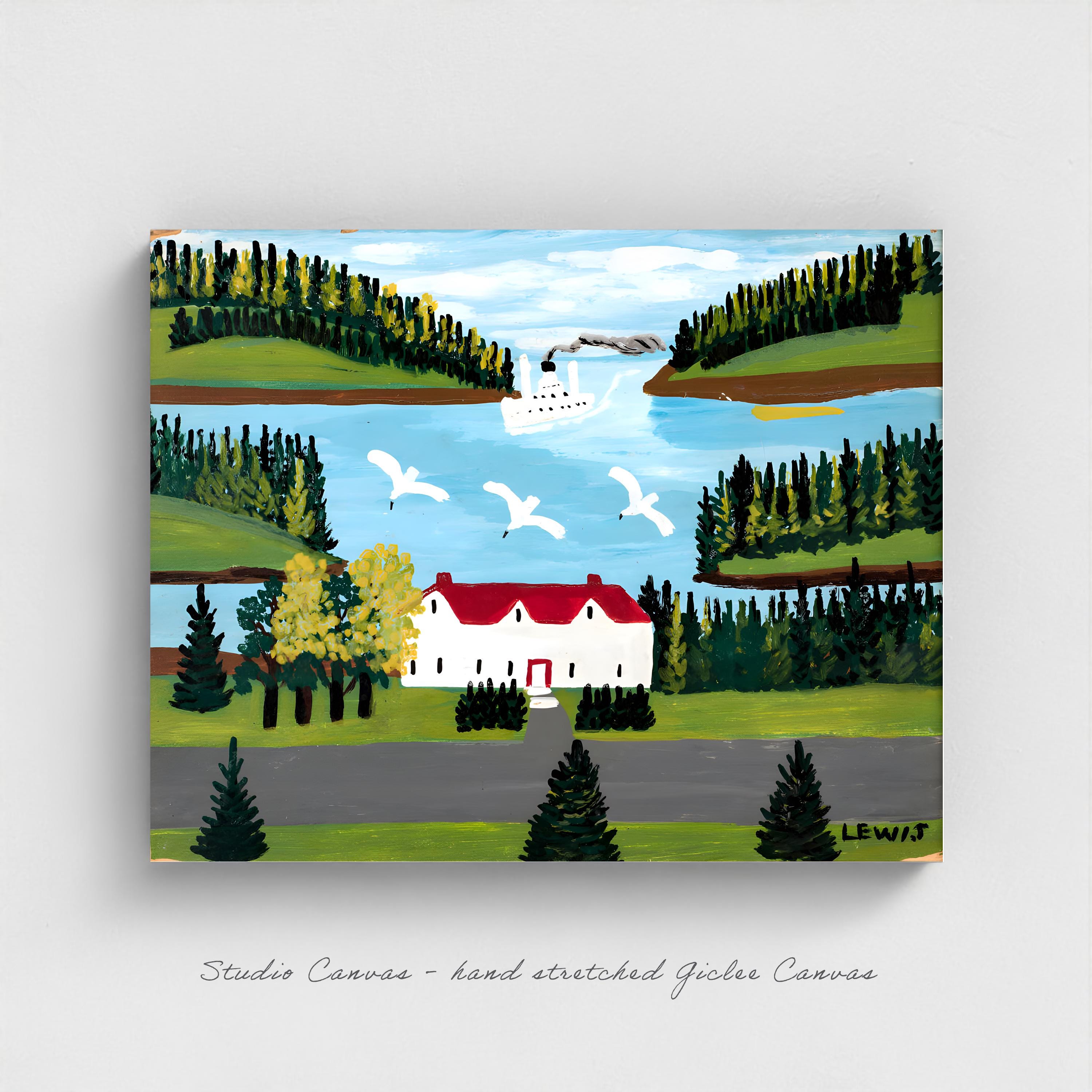 The white house represents the Maritime tradition of coastal homes that served as both family dwellings and navigation landmarks for vessels navigating the challenging tidal currents of Digby Gut. Lewis understood that these waterfront homes were integral to the Maritime way of life.