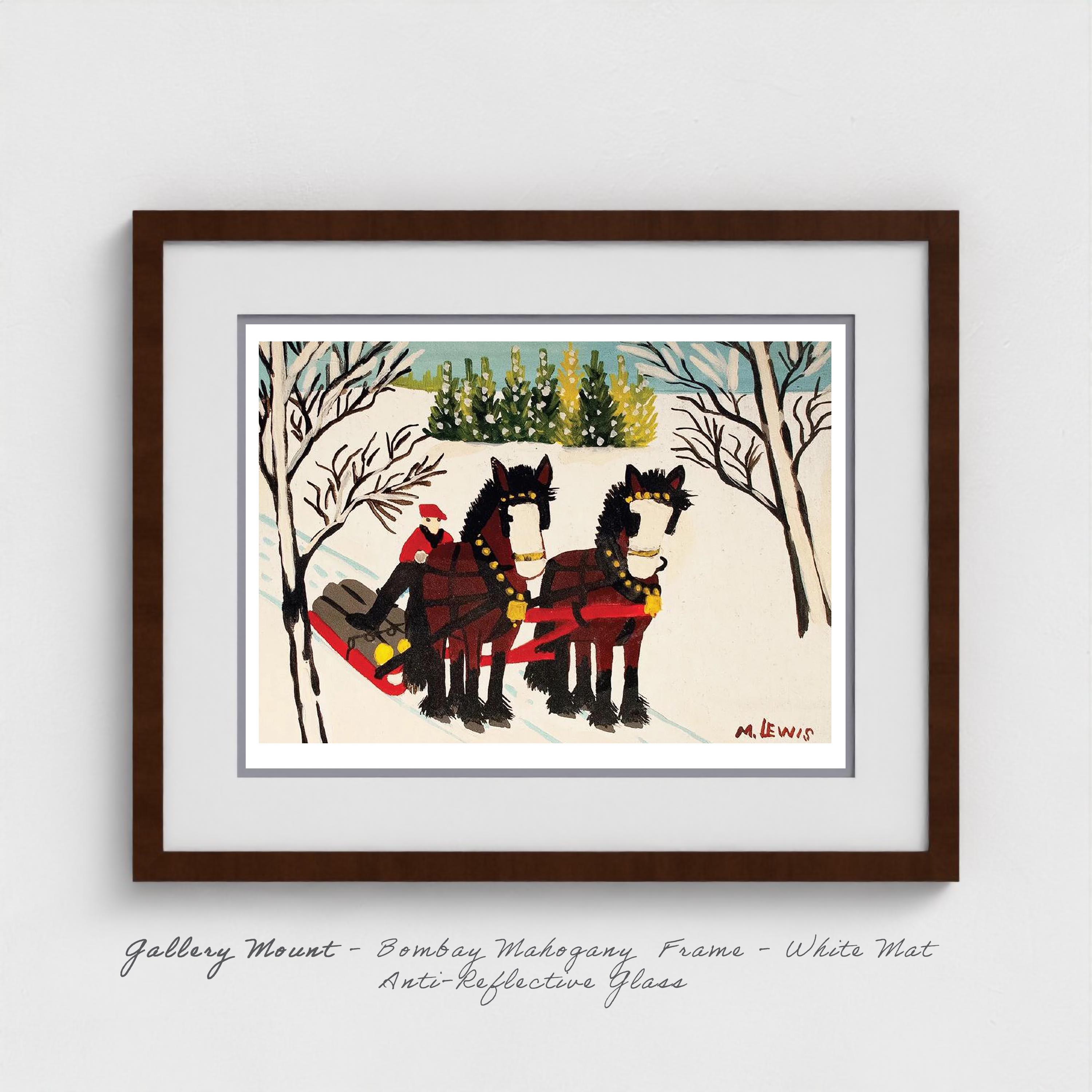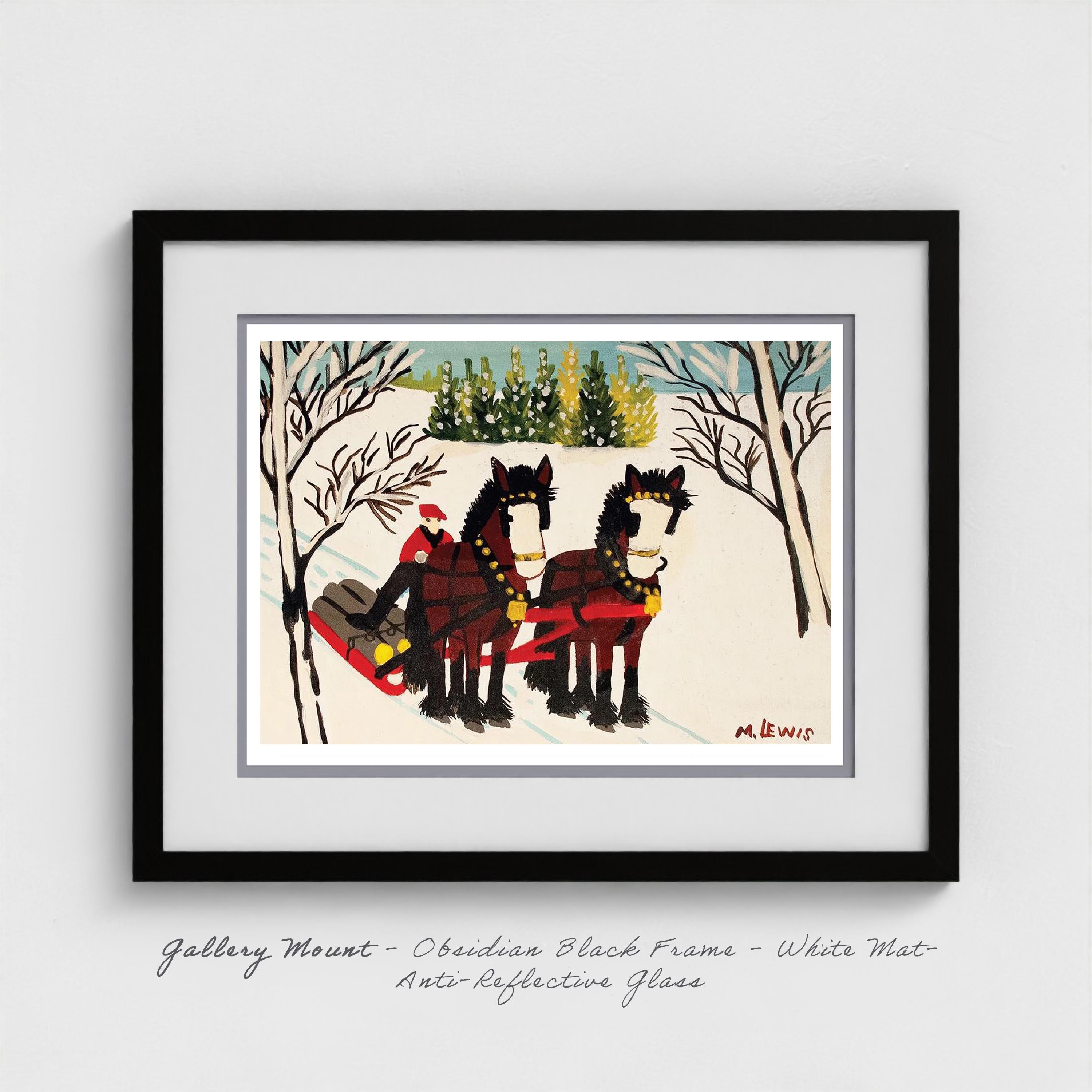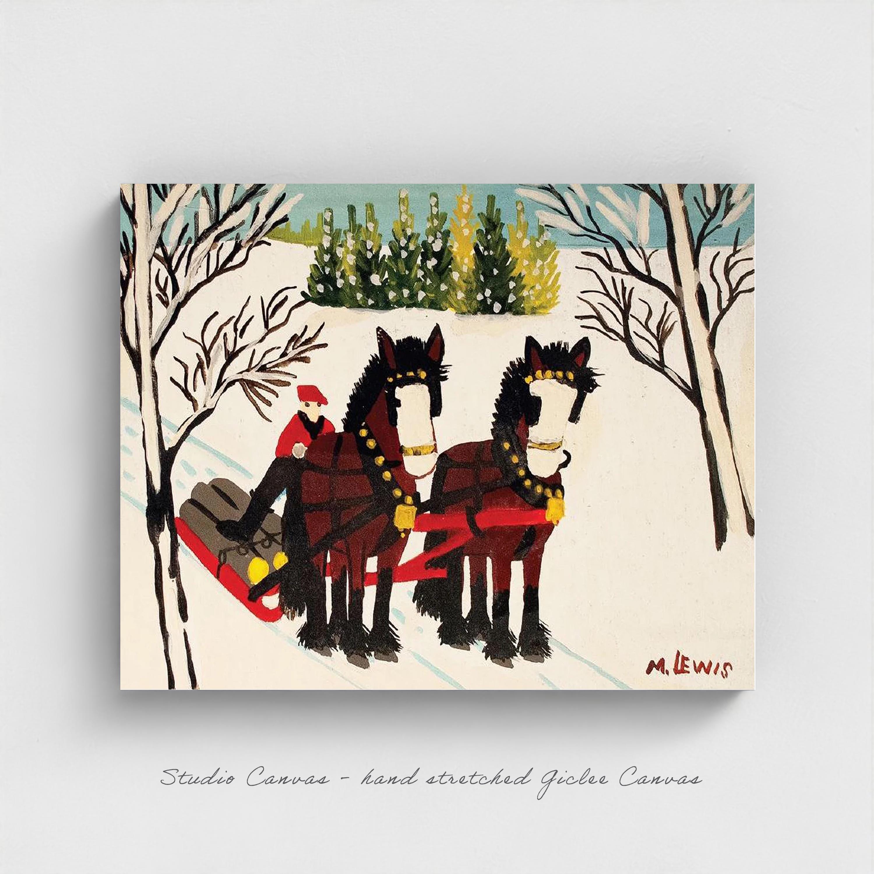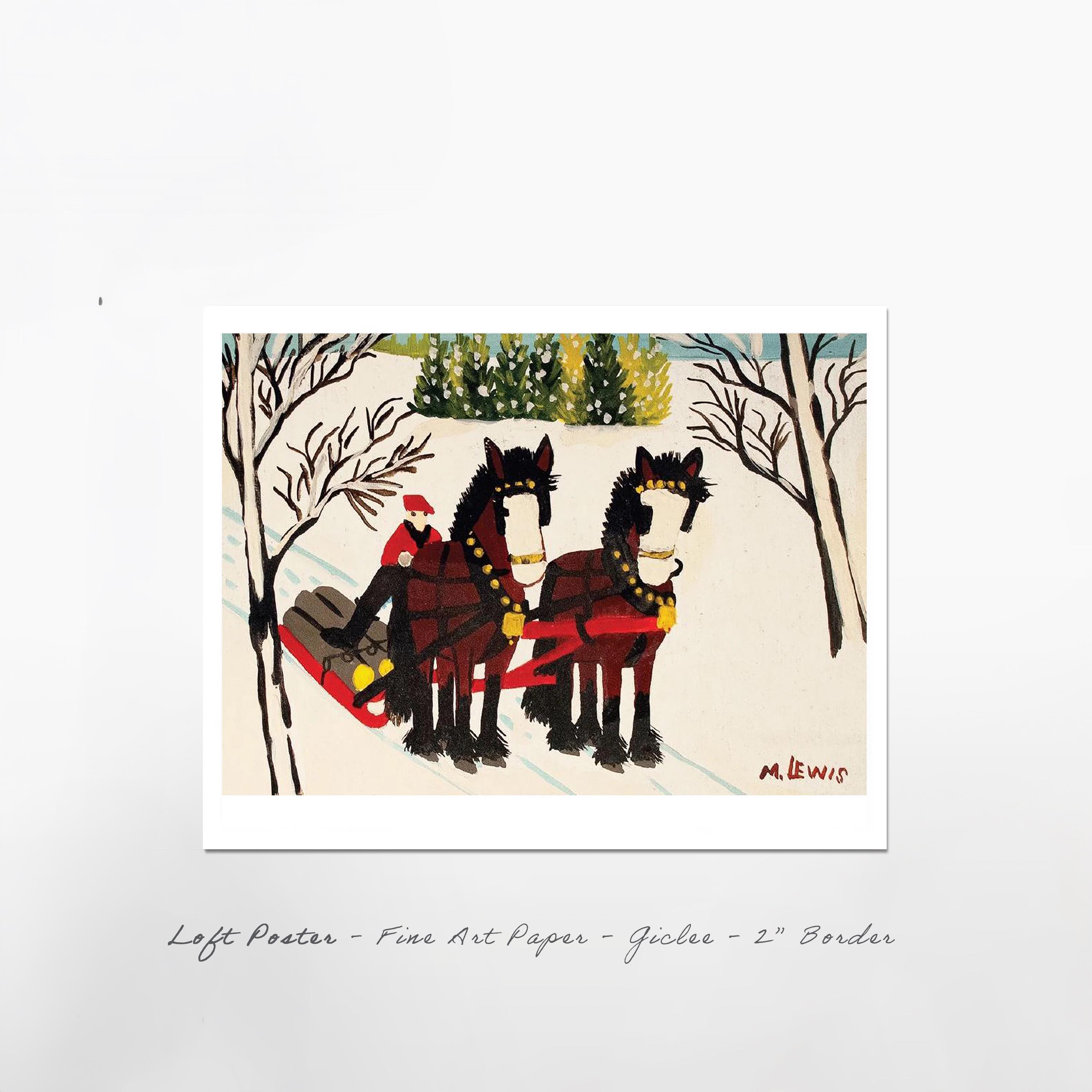 Maud Lewis Print: Horses Hauling Logs, Nova Scotia Folk Art