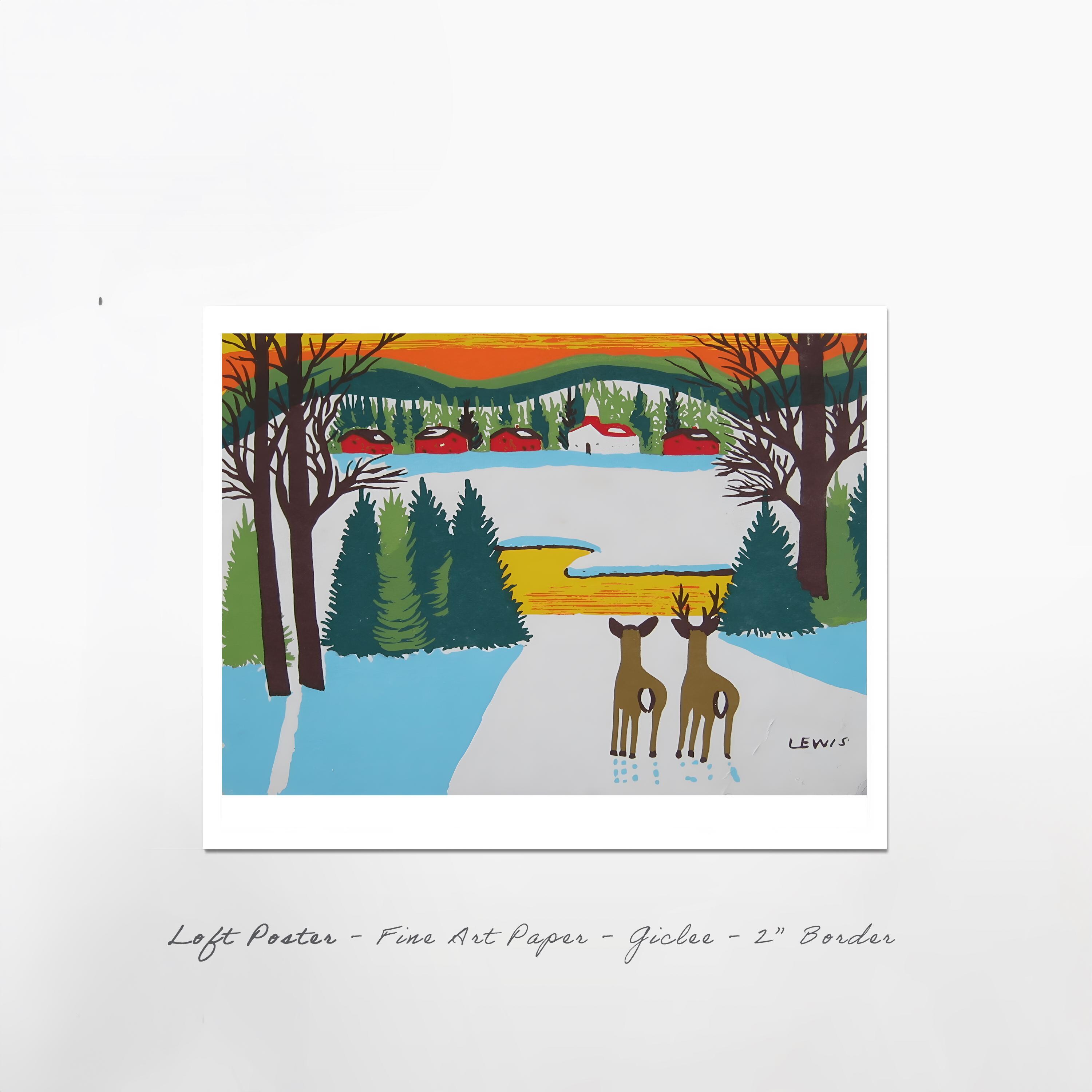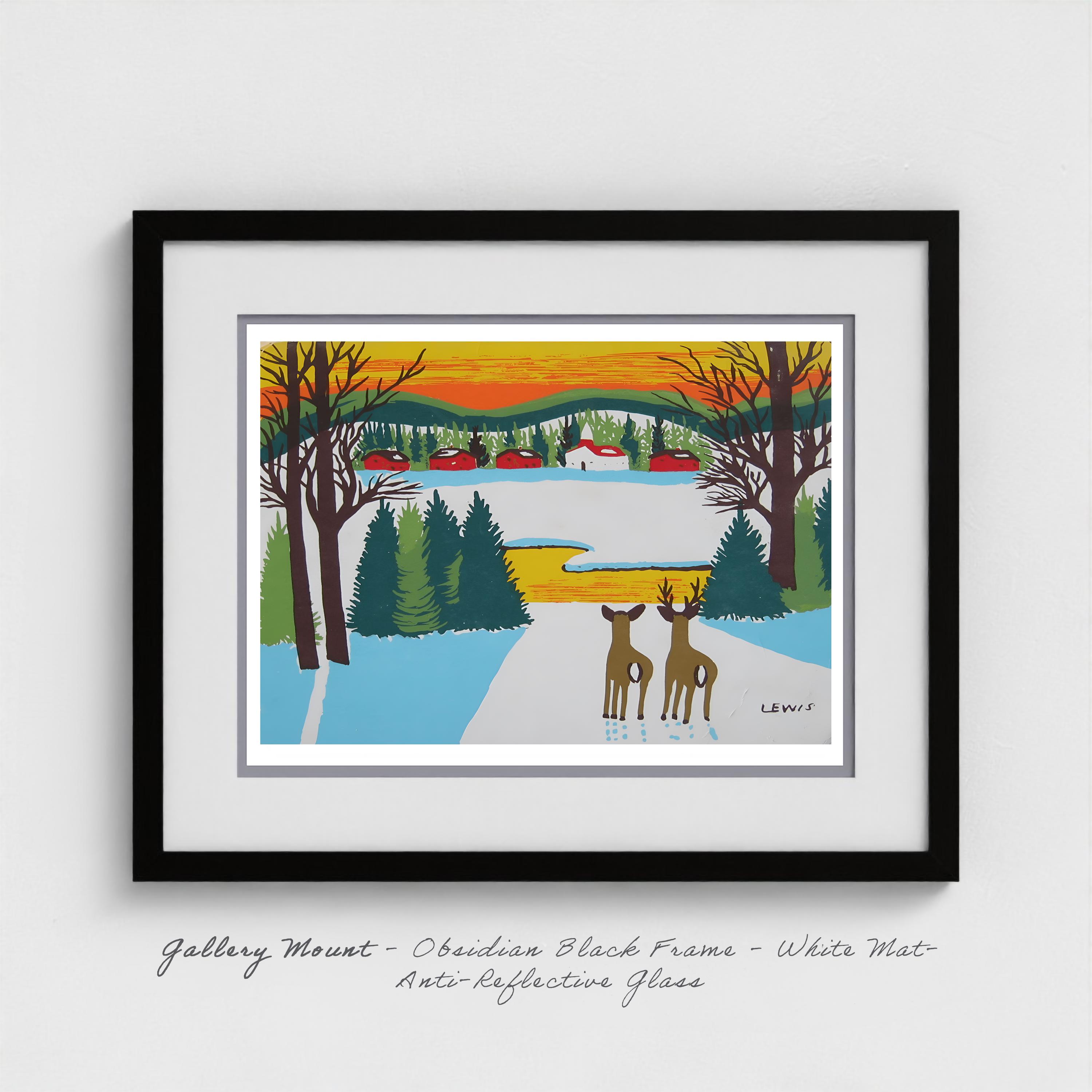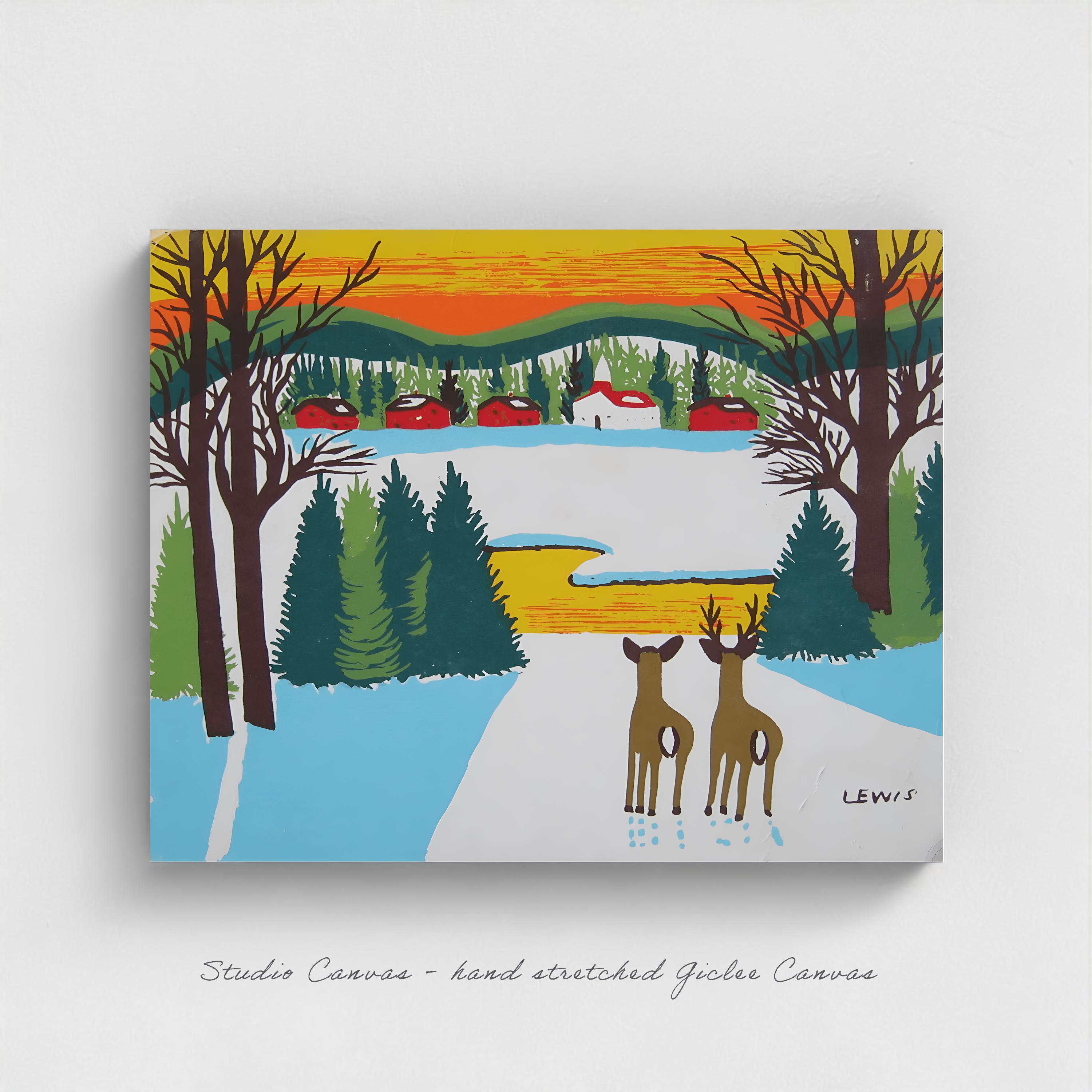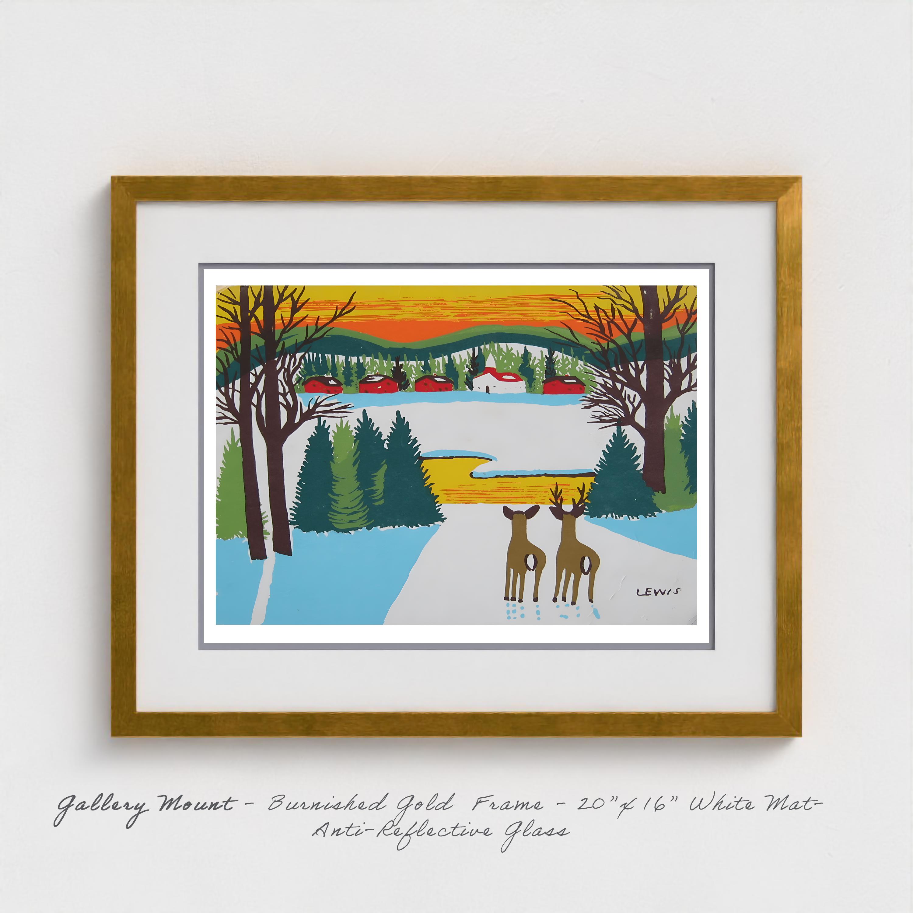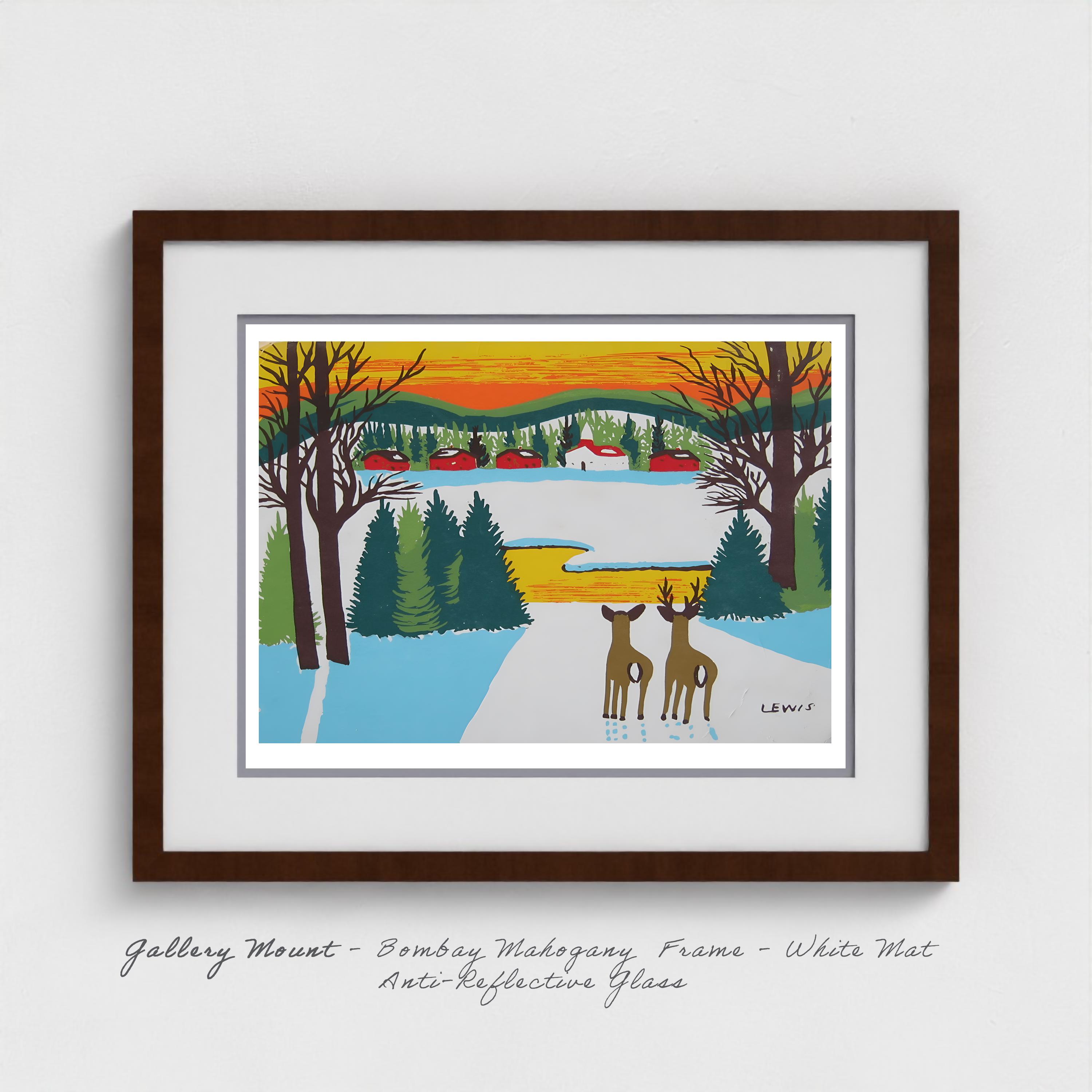 Maud Lewis "Deer in Winter" Folk Art Print - Nova Scotia Wildlife