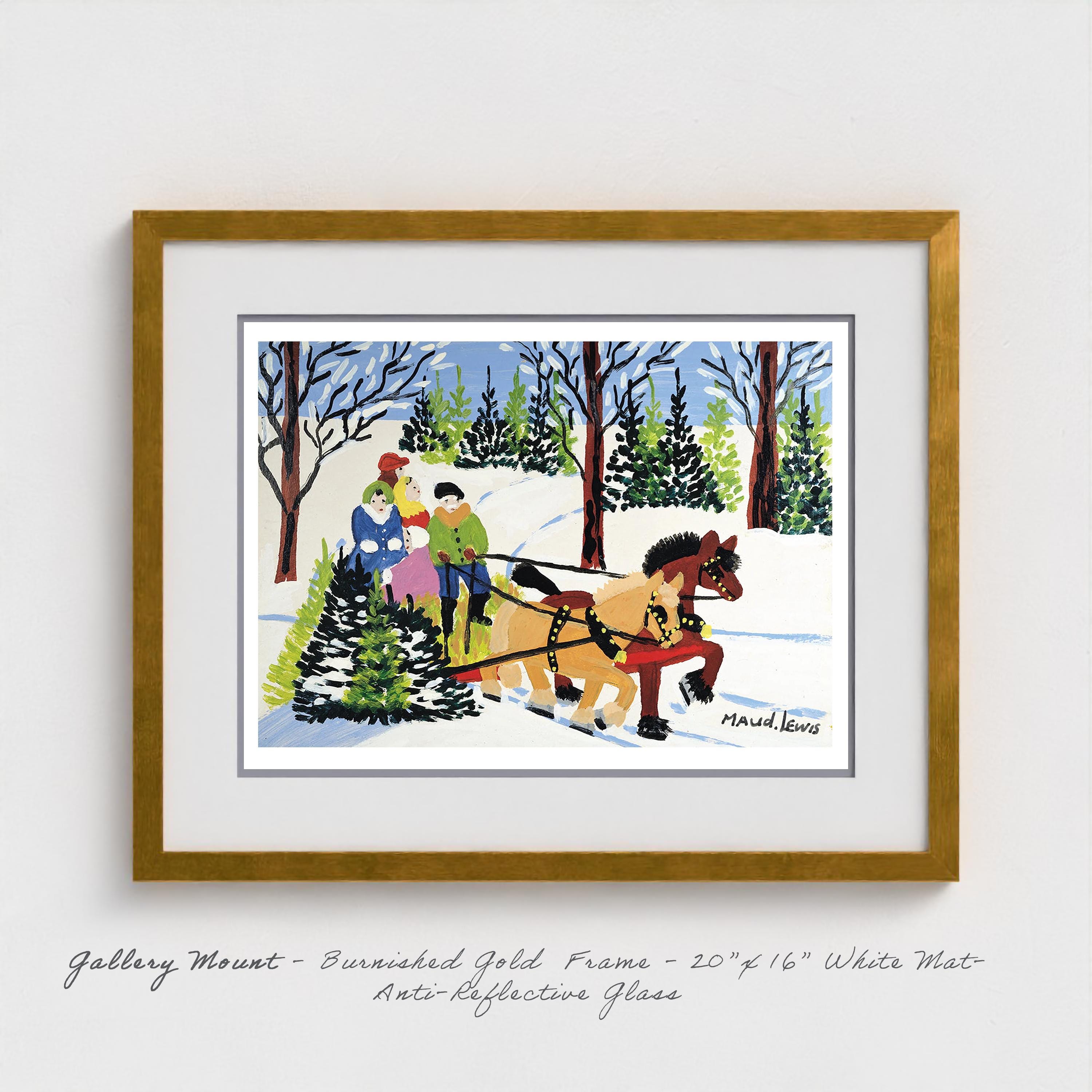Maud Lewis Print: Family Sleigh Ride - Nova Scotia Folk Art