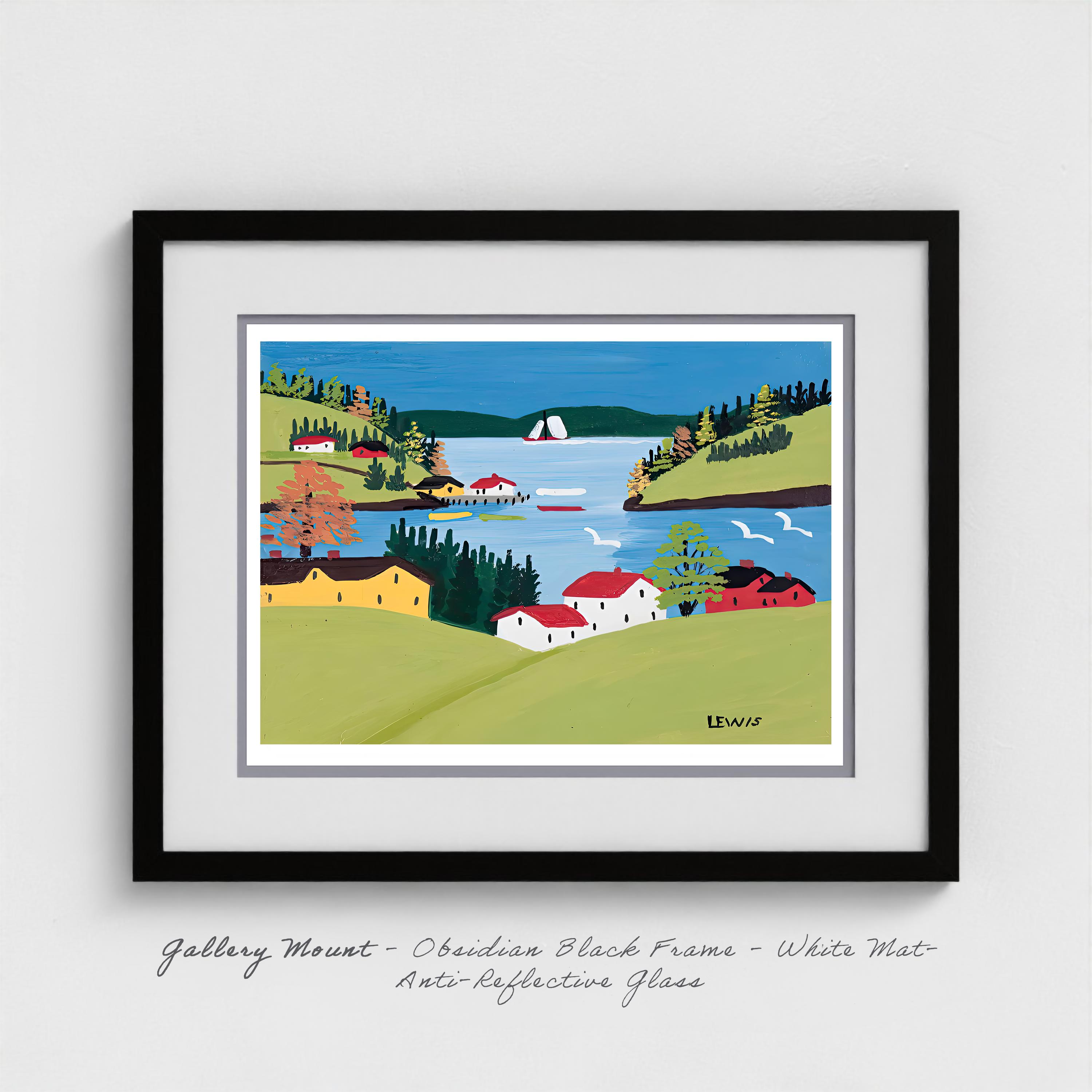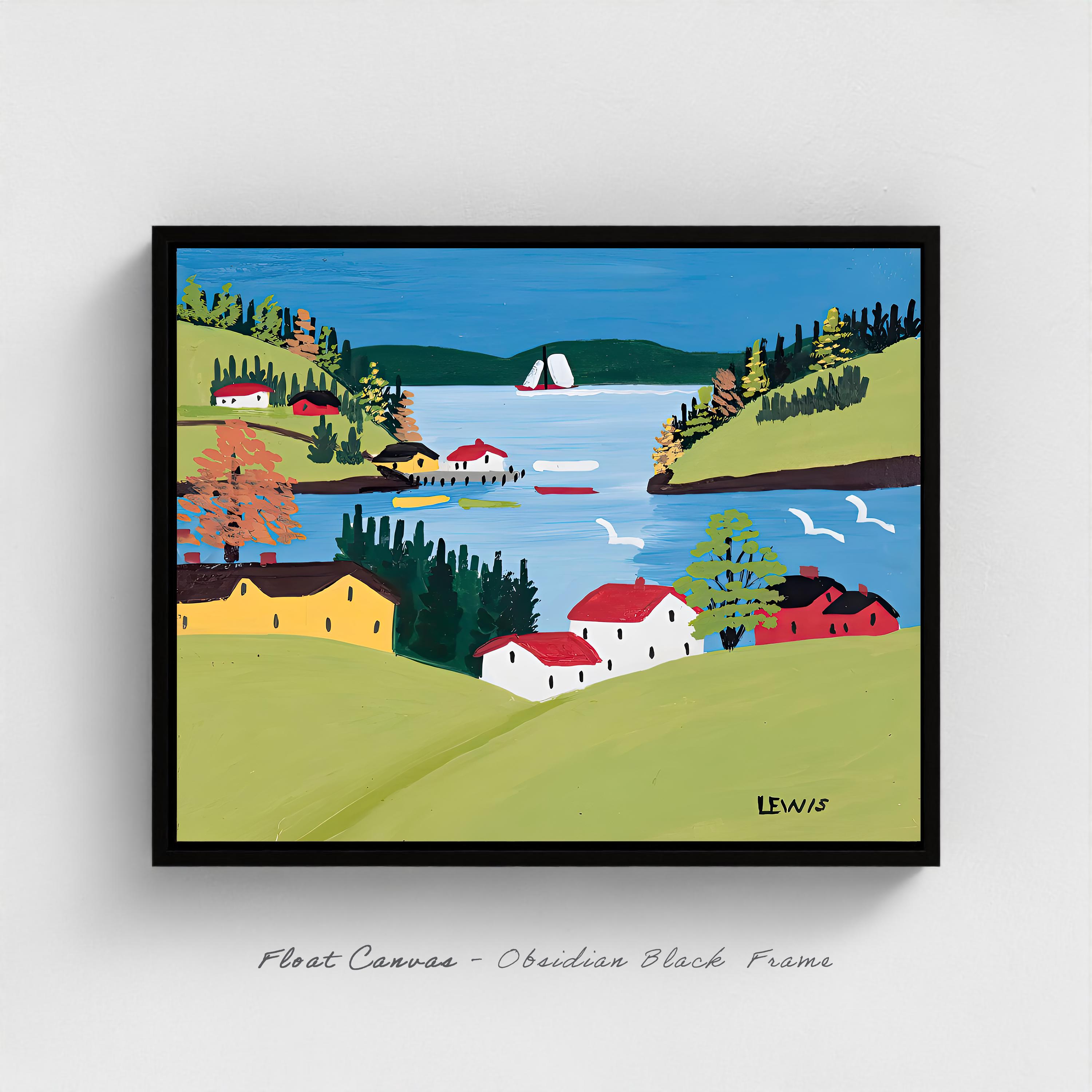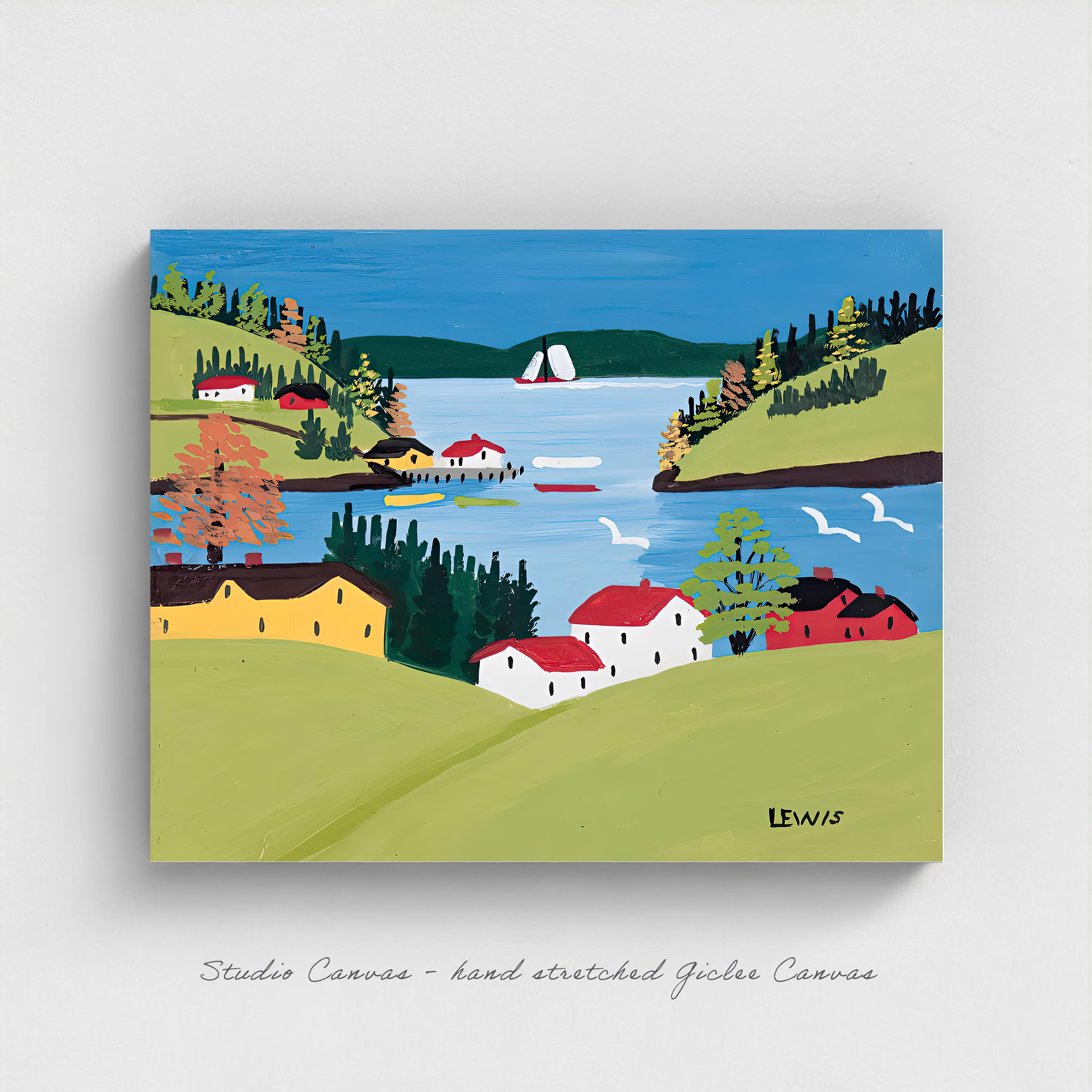Experience the delightful charm of Maud Lewis with this vibrant harbour scene. Digby’s working waterfront comes alive in her signature bold, happy colors that capture the simple beauty of Nova Scotia’s coastal life. Every brushstroke radiates the warmth and optimism that made Maud’s work so treasured.