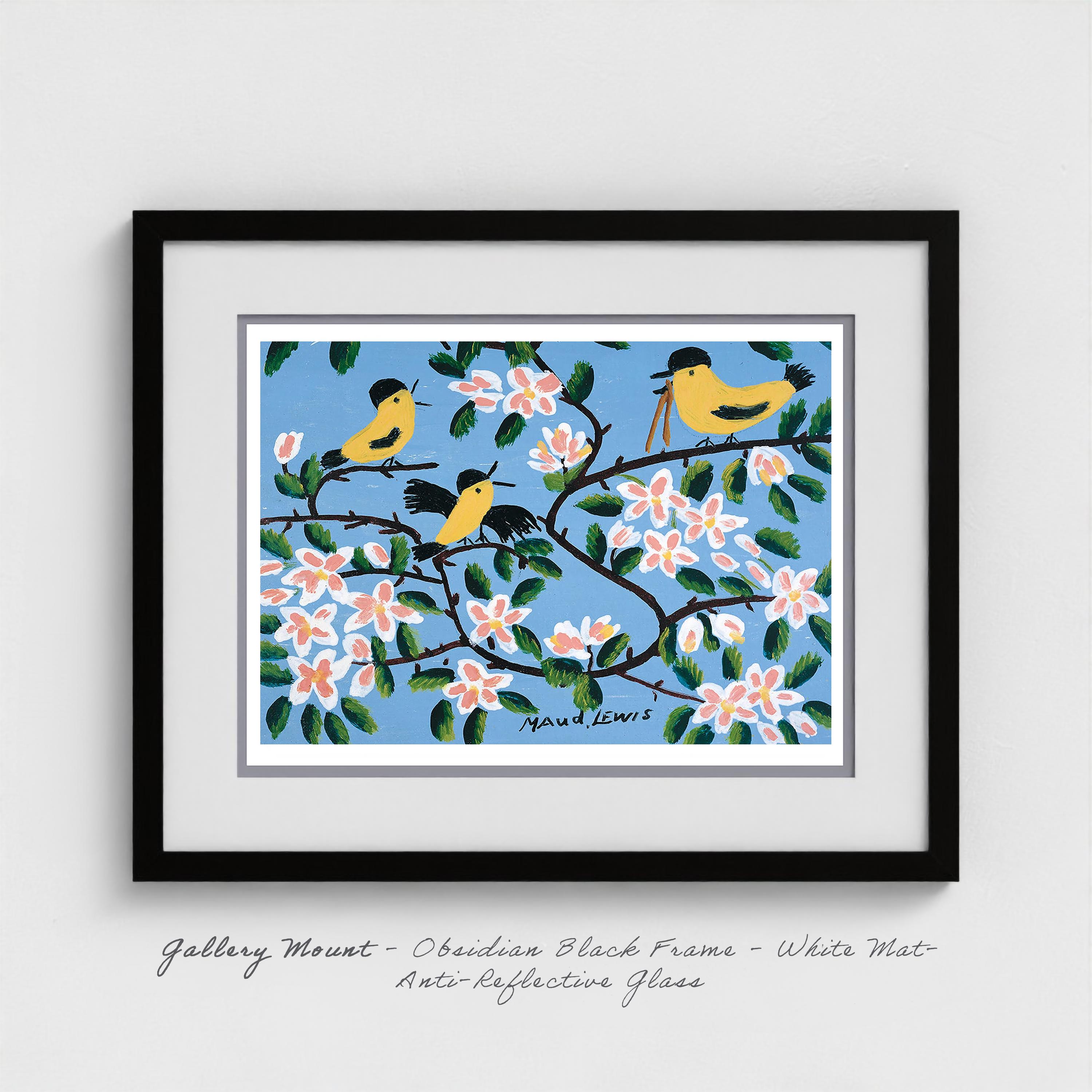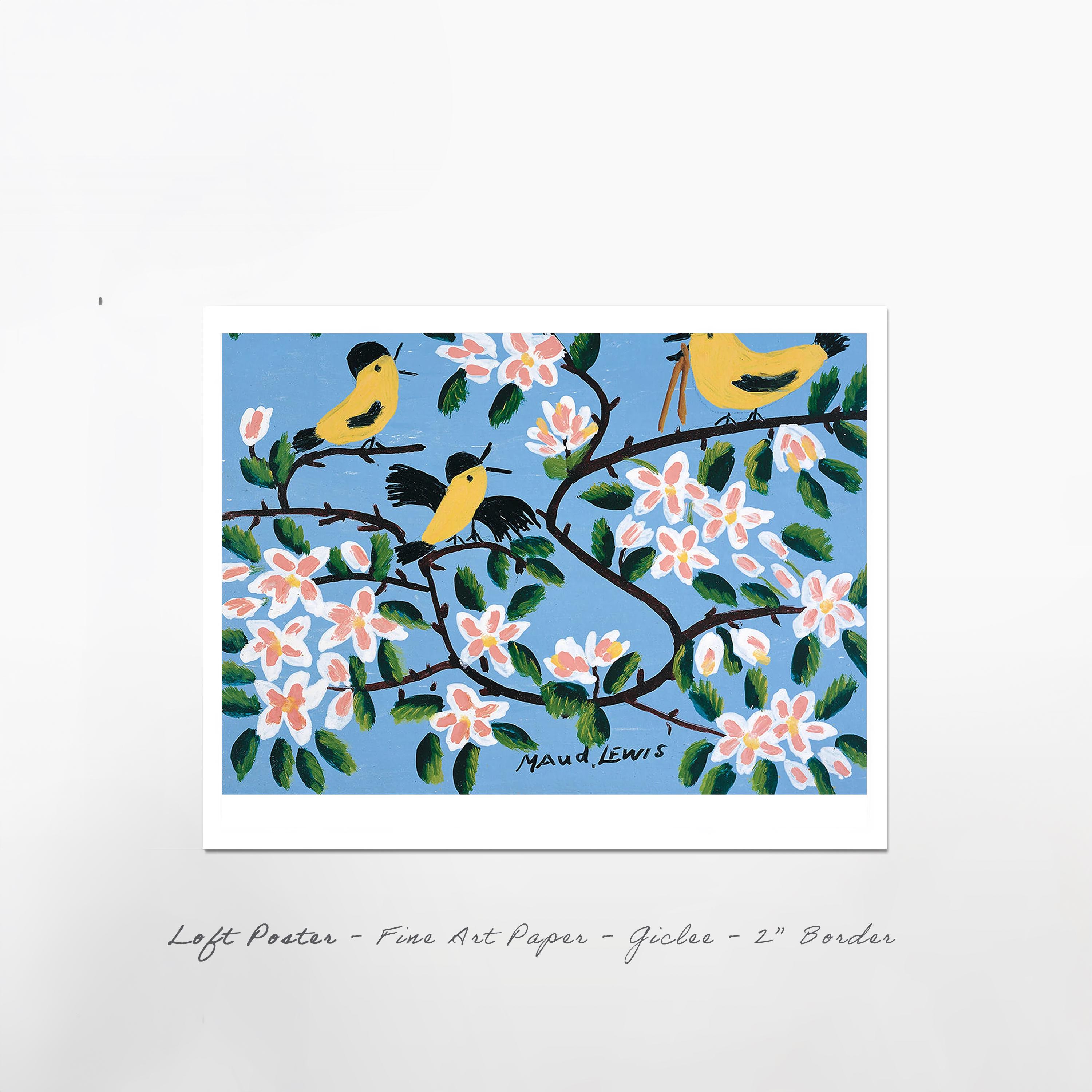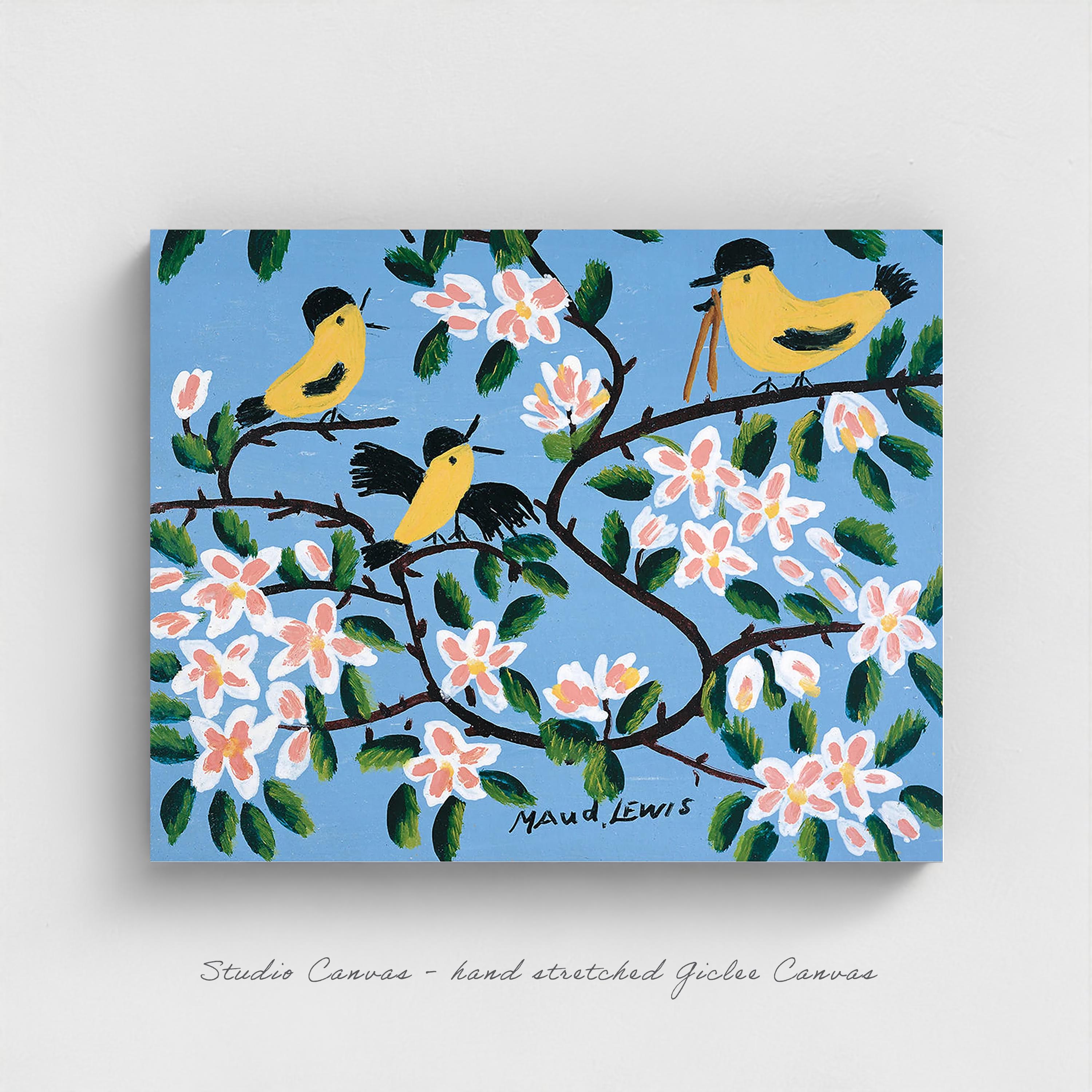 Maud Lewis - Yellow Birds Folk Art Print - Nova Scotia Songbird Joy Maritime Spring Gift