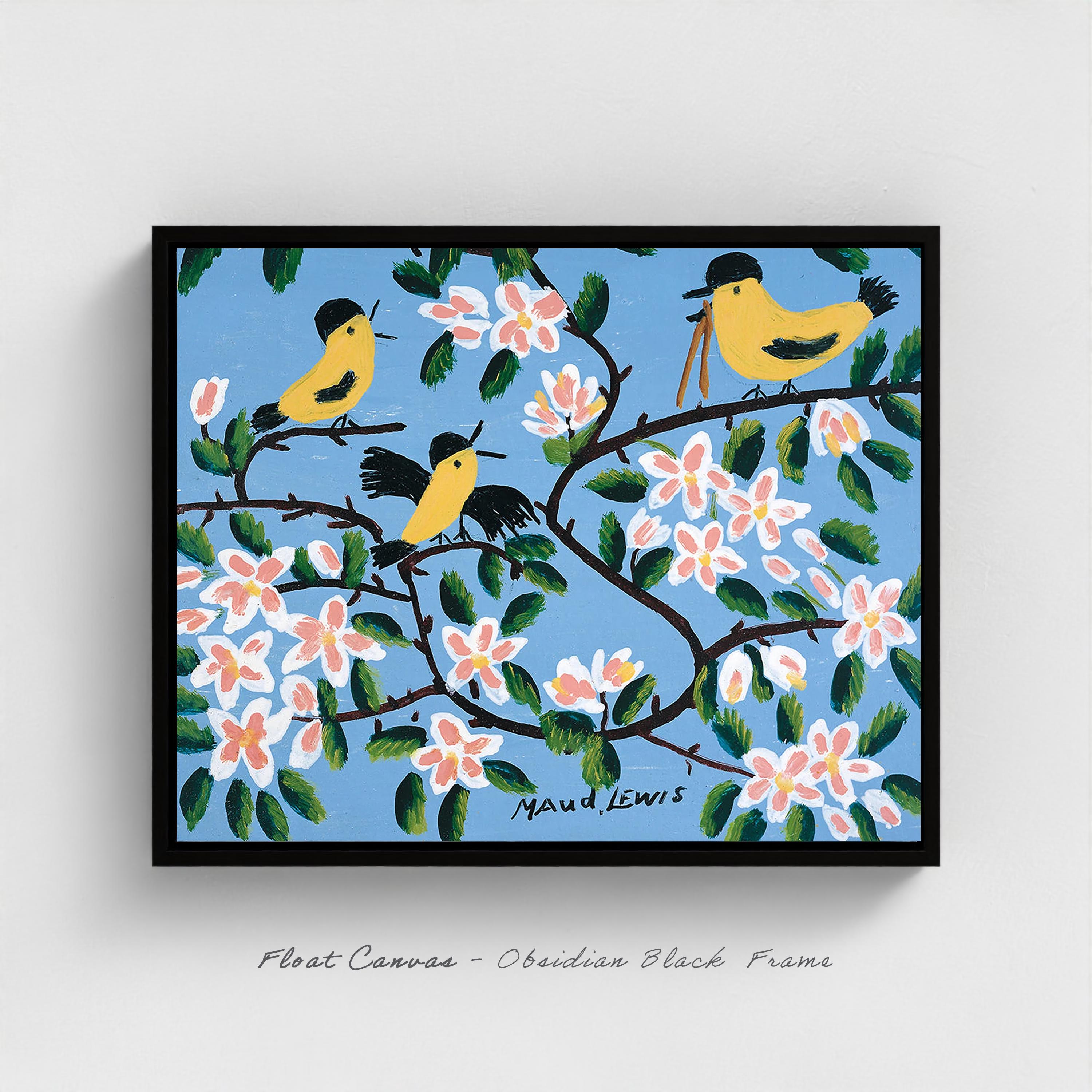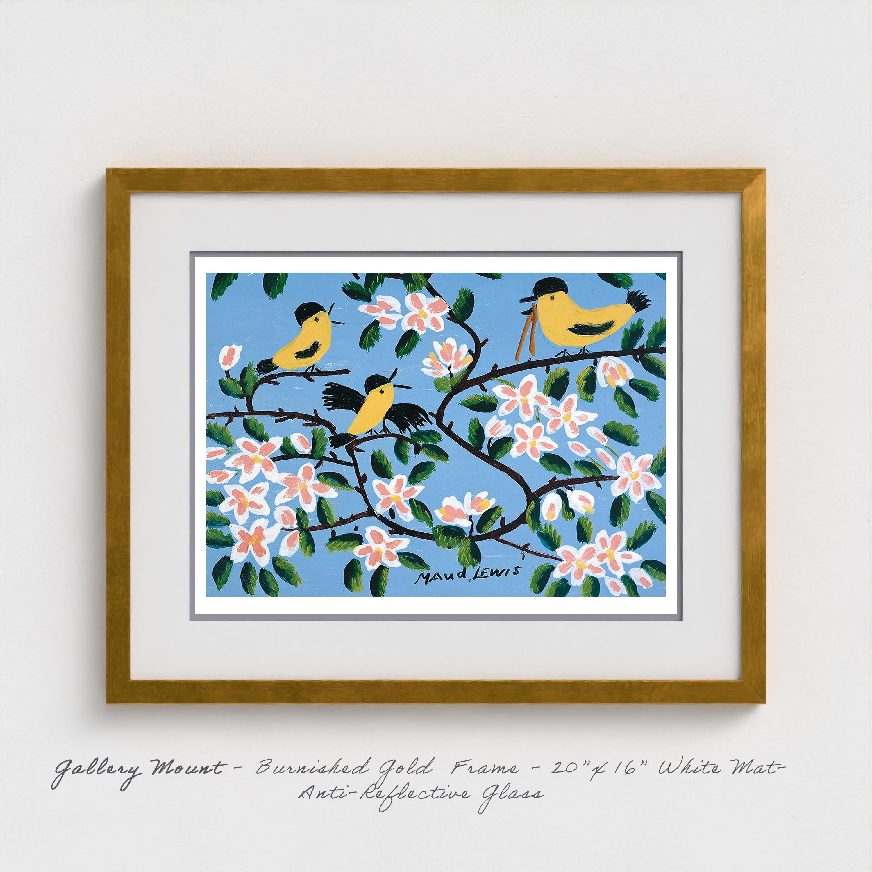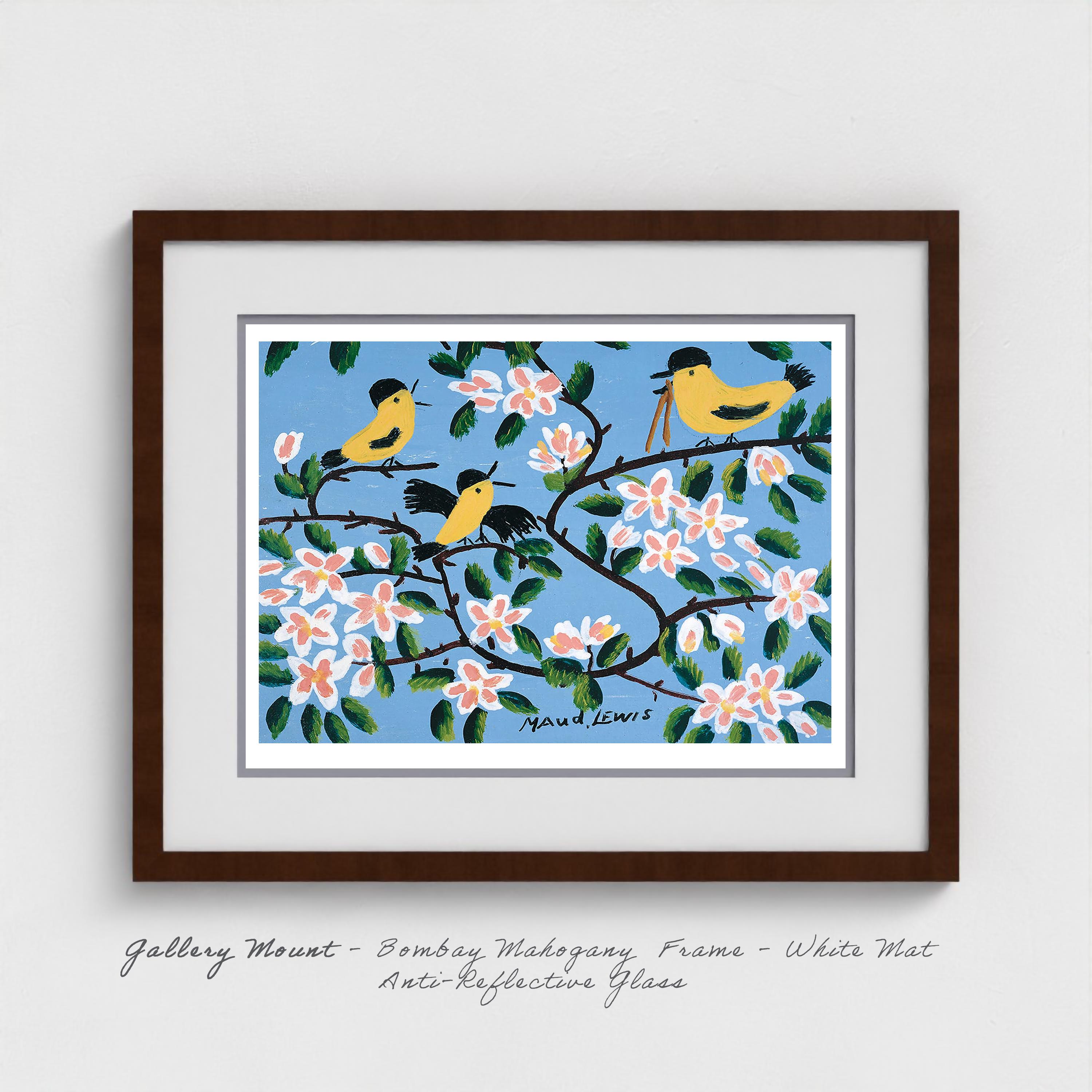 Maud Lewis - Yellow Birds Folk Art Print - Nova Scotia Songbird Joy Maritime Spring Gift