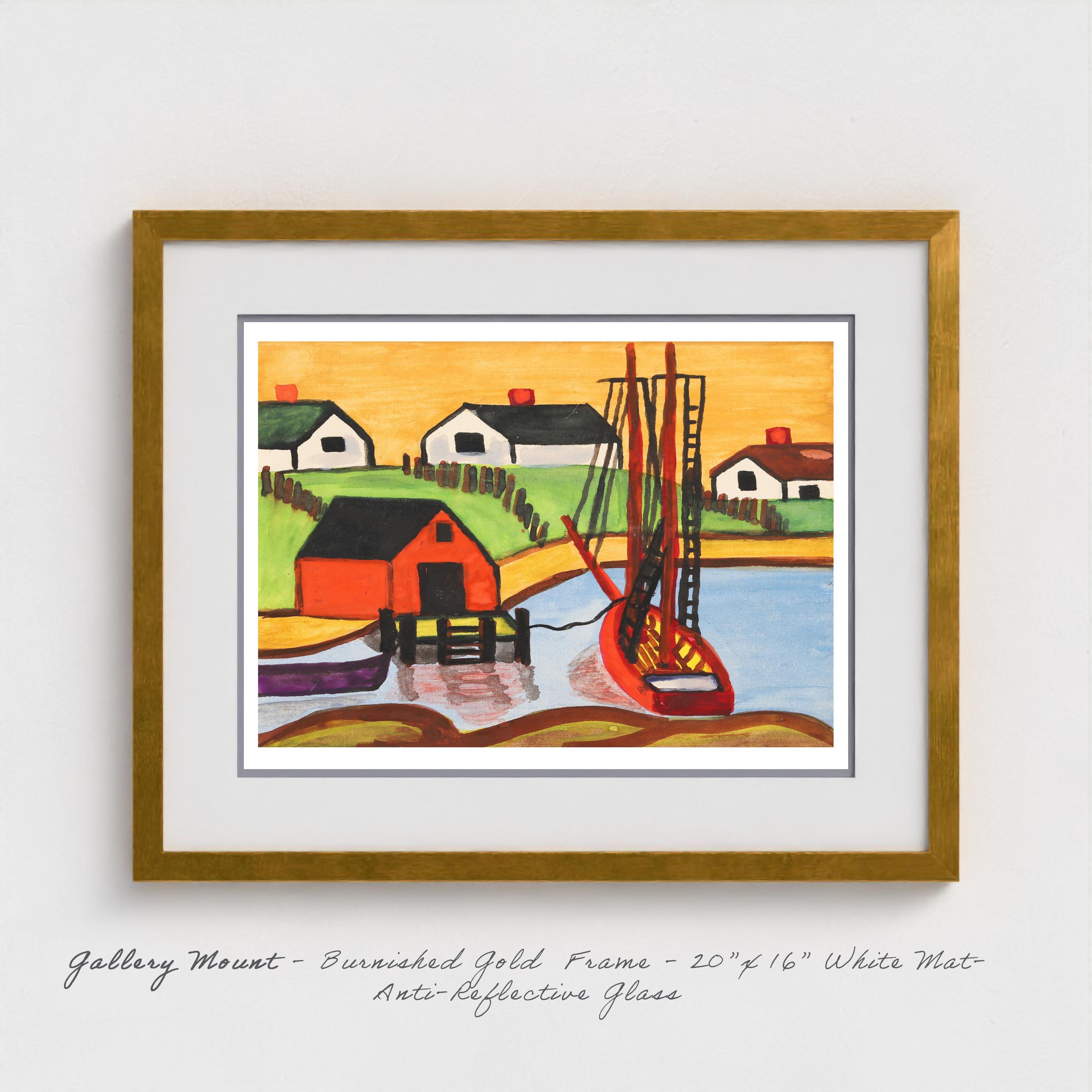 Gallery Mount - Your 11.5" x 15.5" artwork print is enclosed by a grey/white margin then a 2" white matte, protected by a 16"x20" glaze and enclosed with a 1.5" hardwood frame, ready for hanging (19x23" exterior dimensions)