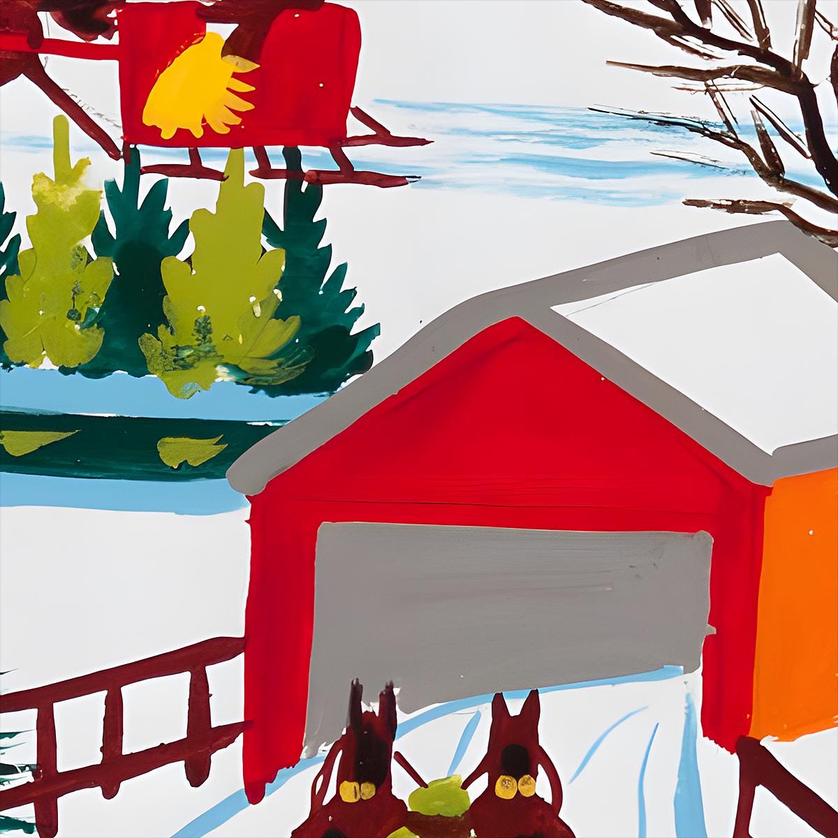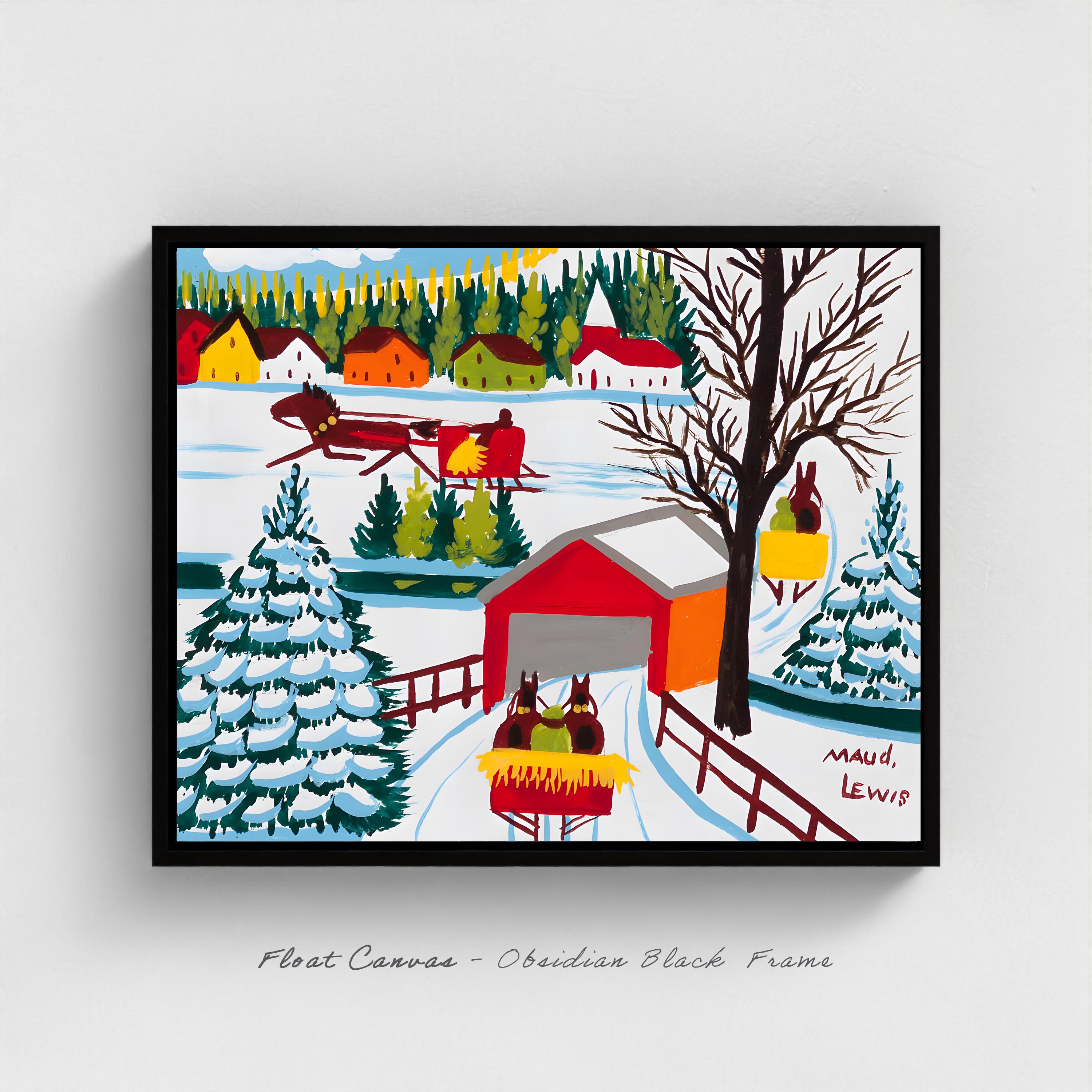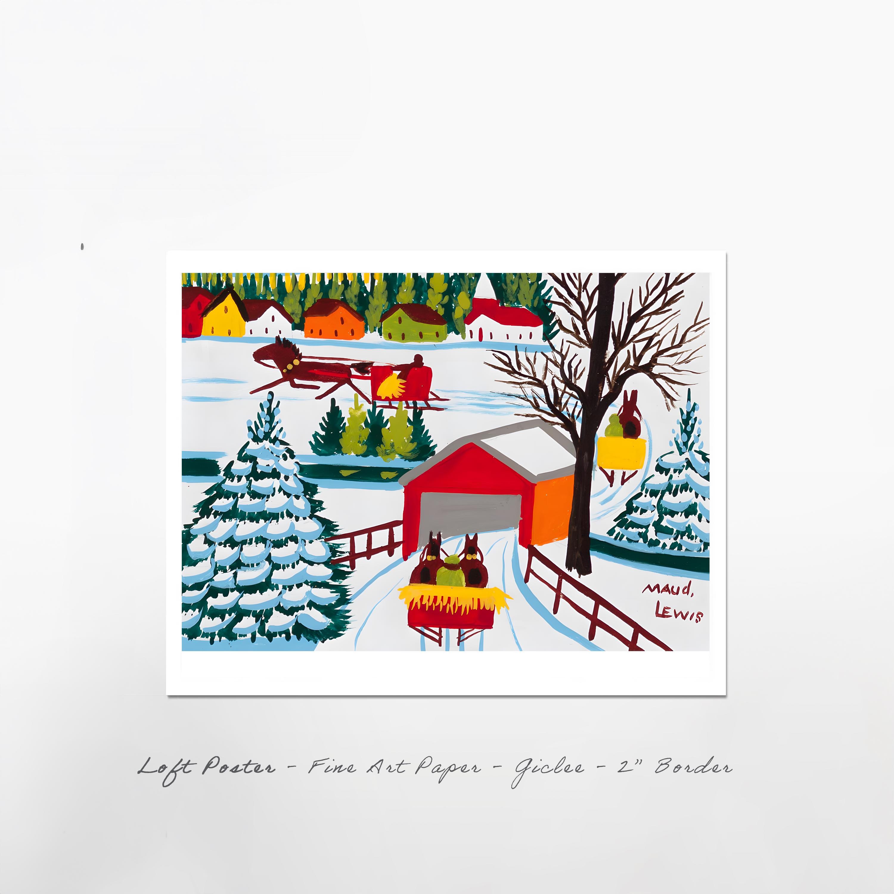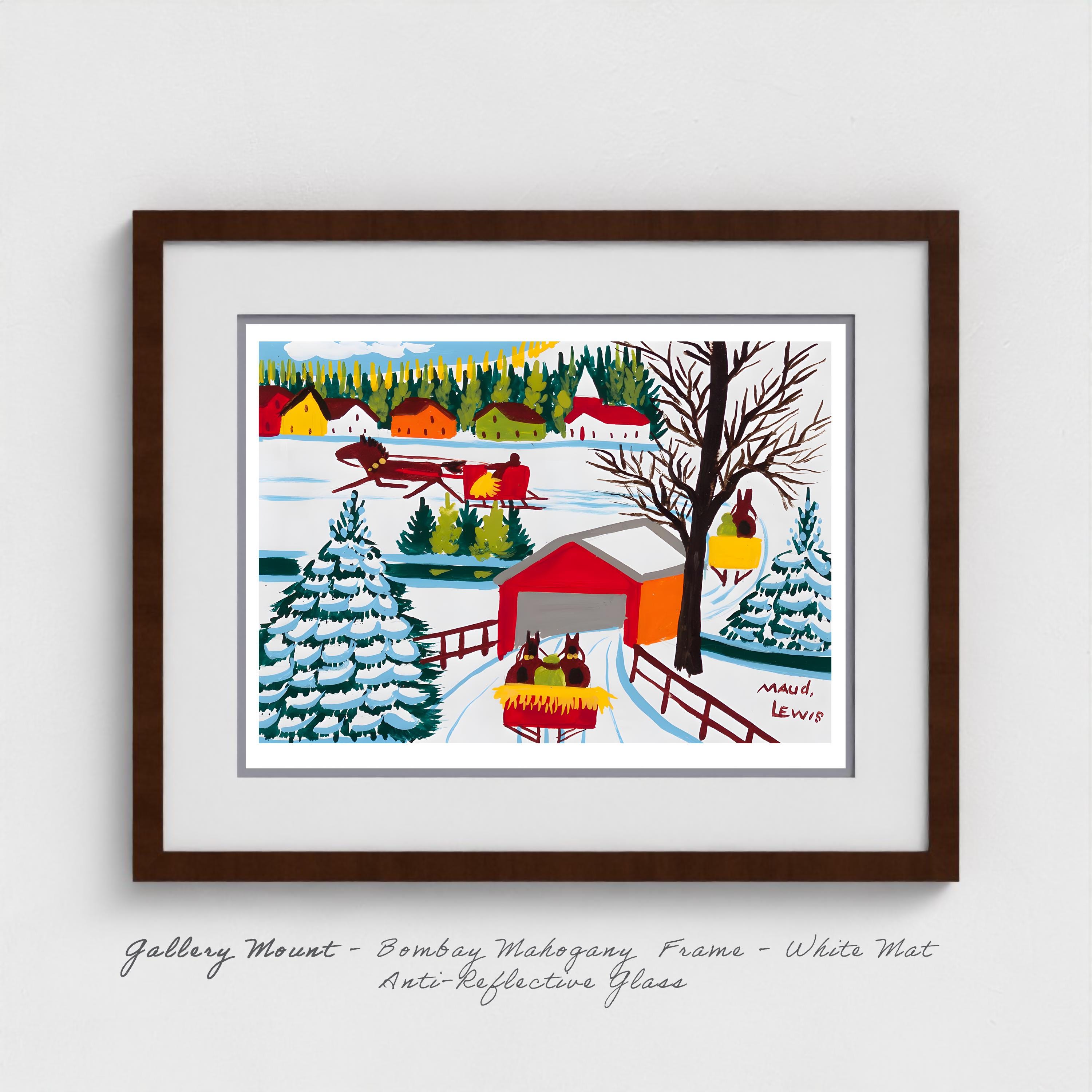 Covered Bridge 1964 Maud Lewis Giclee Print | Nova Scotia Folk Art | Canadian Winter