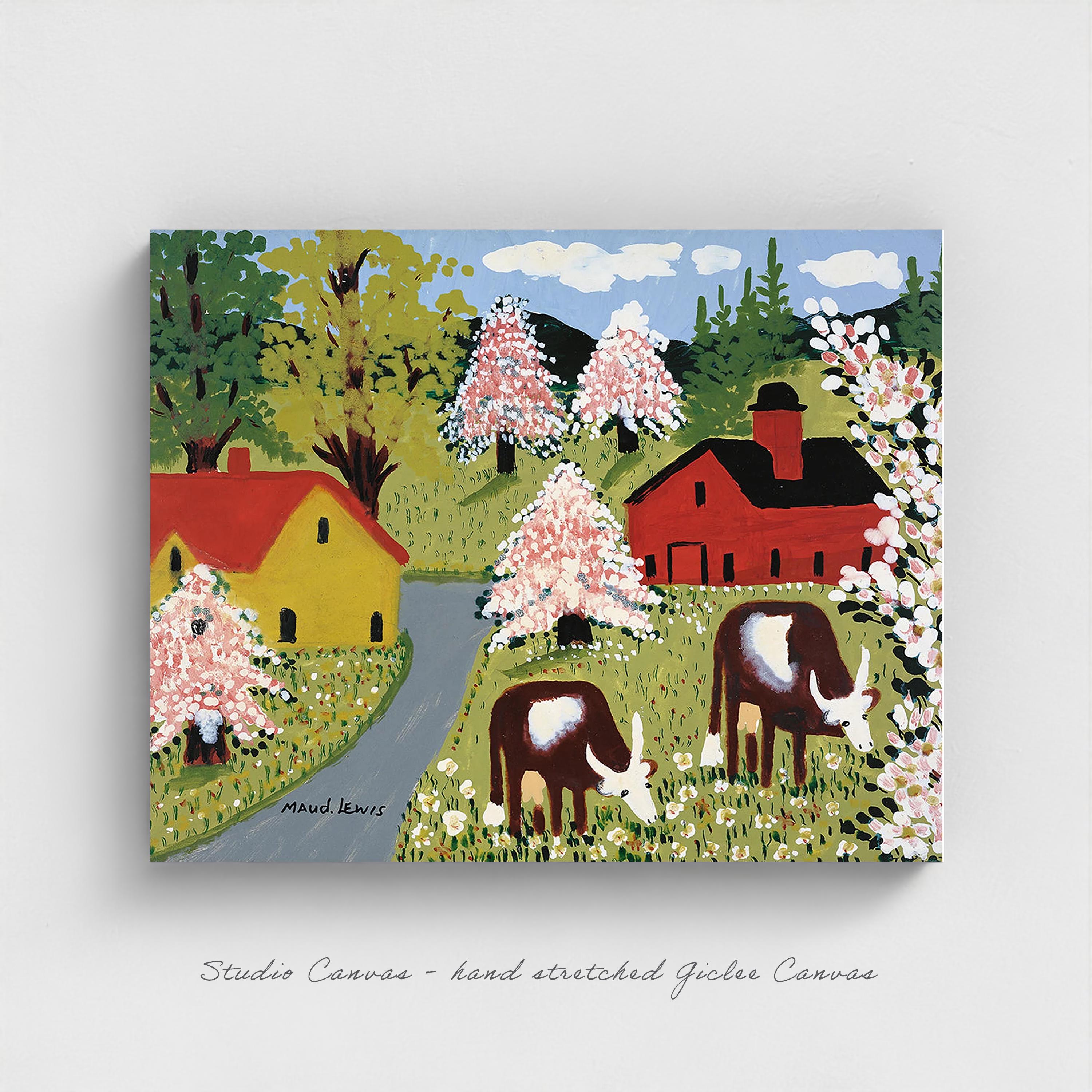 ๐ฑ WHY YOU'LL LOVE THIS PIECE: Lewis's dairy cattle works honour the agricultural partnerships that sustained Maritime family farms. This Cows Grazing painting demonstrates her remarkable understanding of how dairy herds enabled rural prosperity and food security, transforming pastoral cattle into dignified folk art icons that speak to the careful husbandry, seasonal planning, and agricultural knowledge that made dairy farming the economic backbone of Nova Scotia's rural communities through generations of farmers who understood that healthy, contented cows meant family stability and community prosperity.
