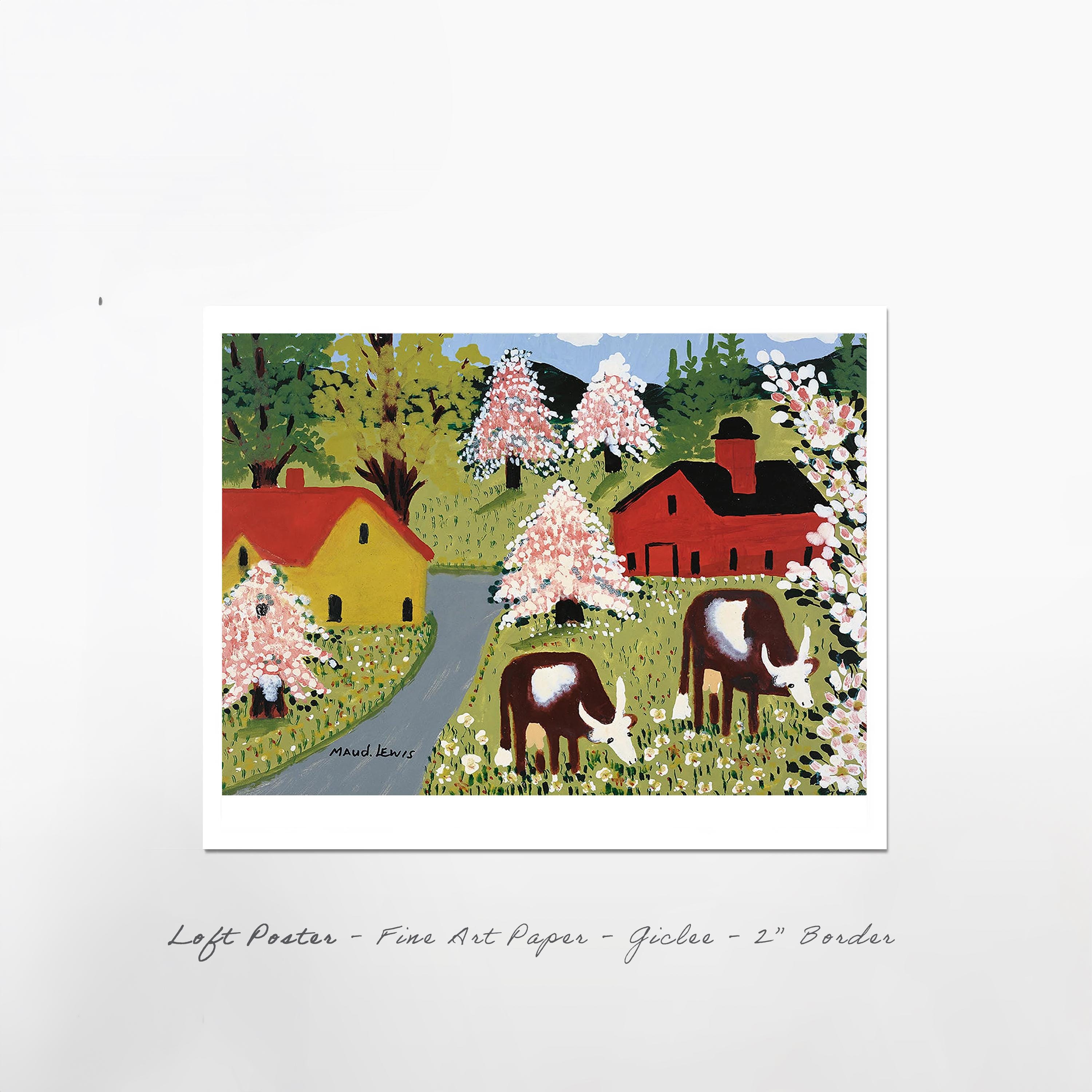 Maud Lewis - Cows Grazing Folk Art Print - Nova Scotia Pastoral Life Maritime Agriculture Gift