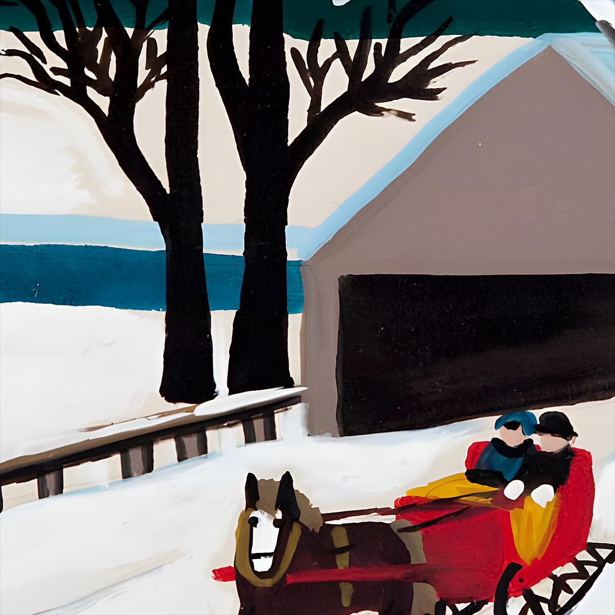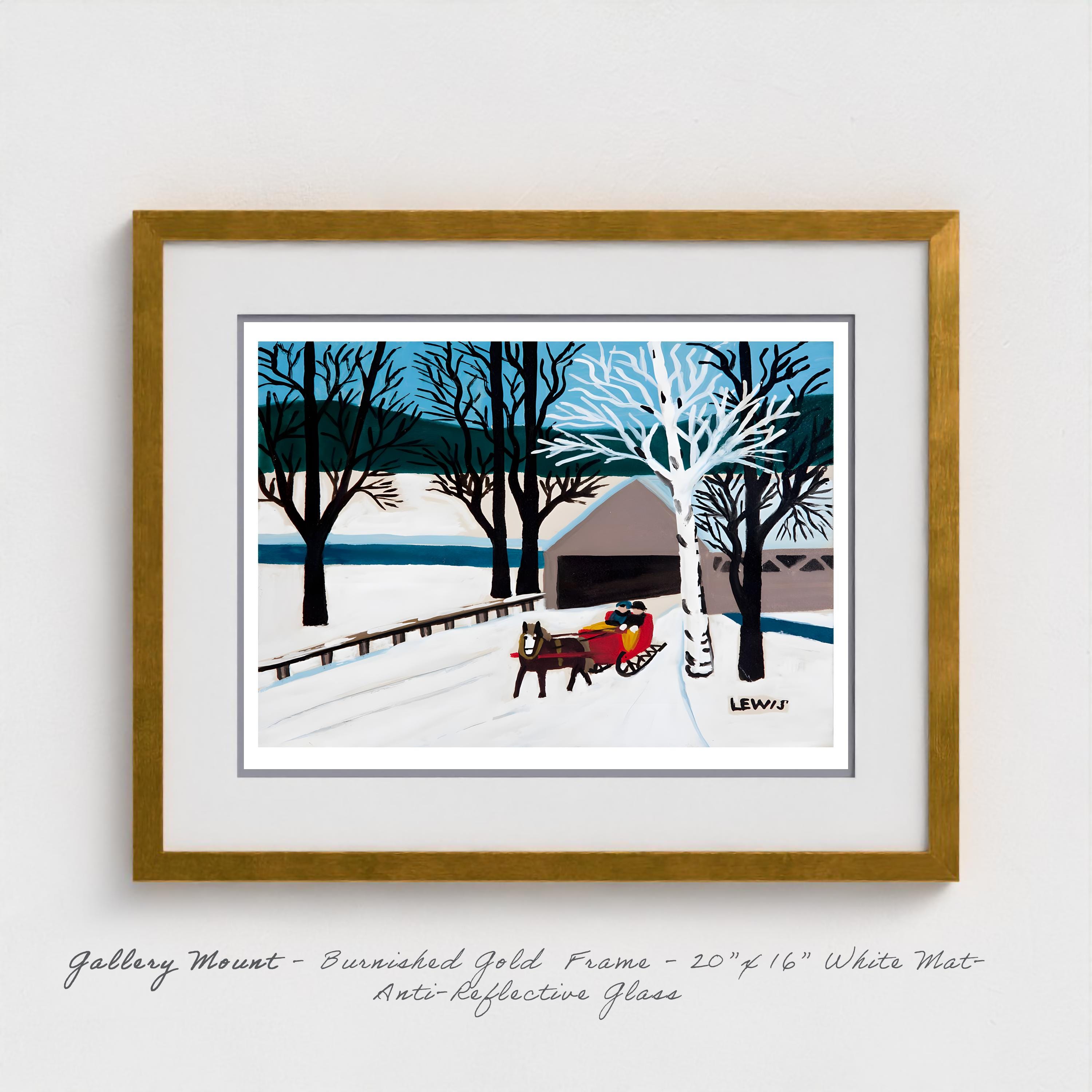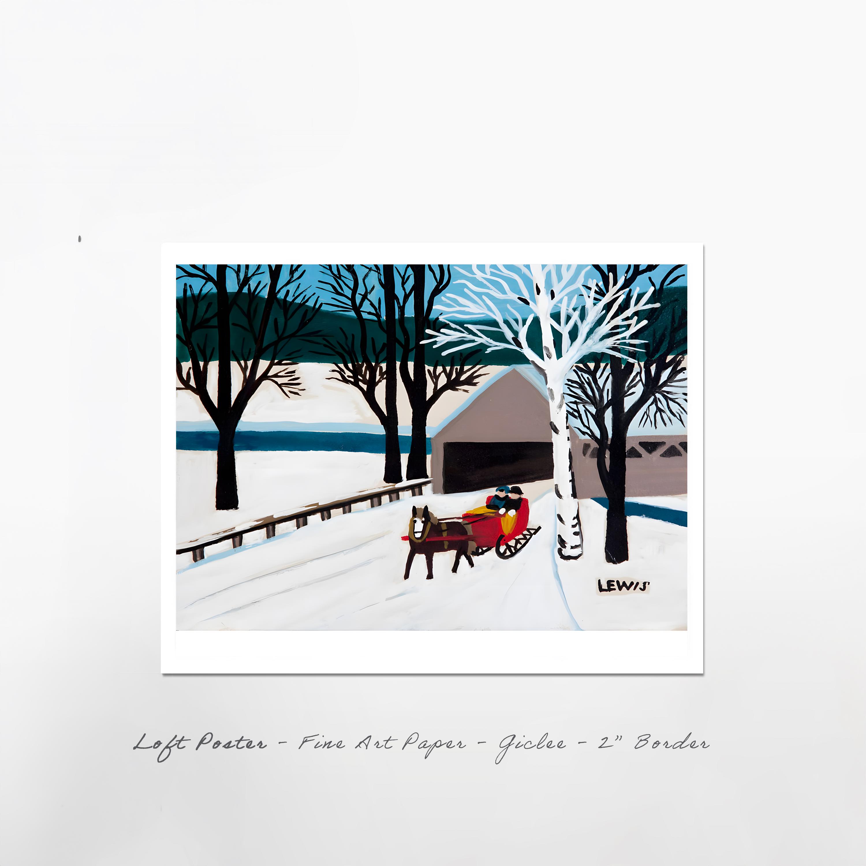 Maud Lewis Folk Art Print: Red Sleigh, Brown Bridge, Nova Scotia Winter