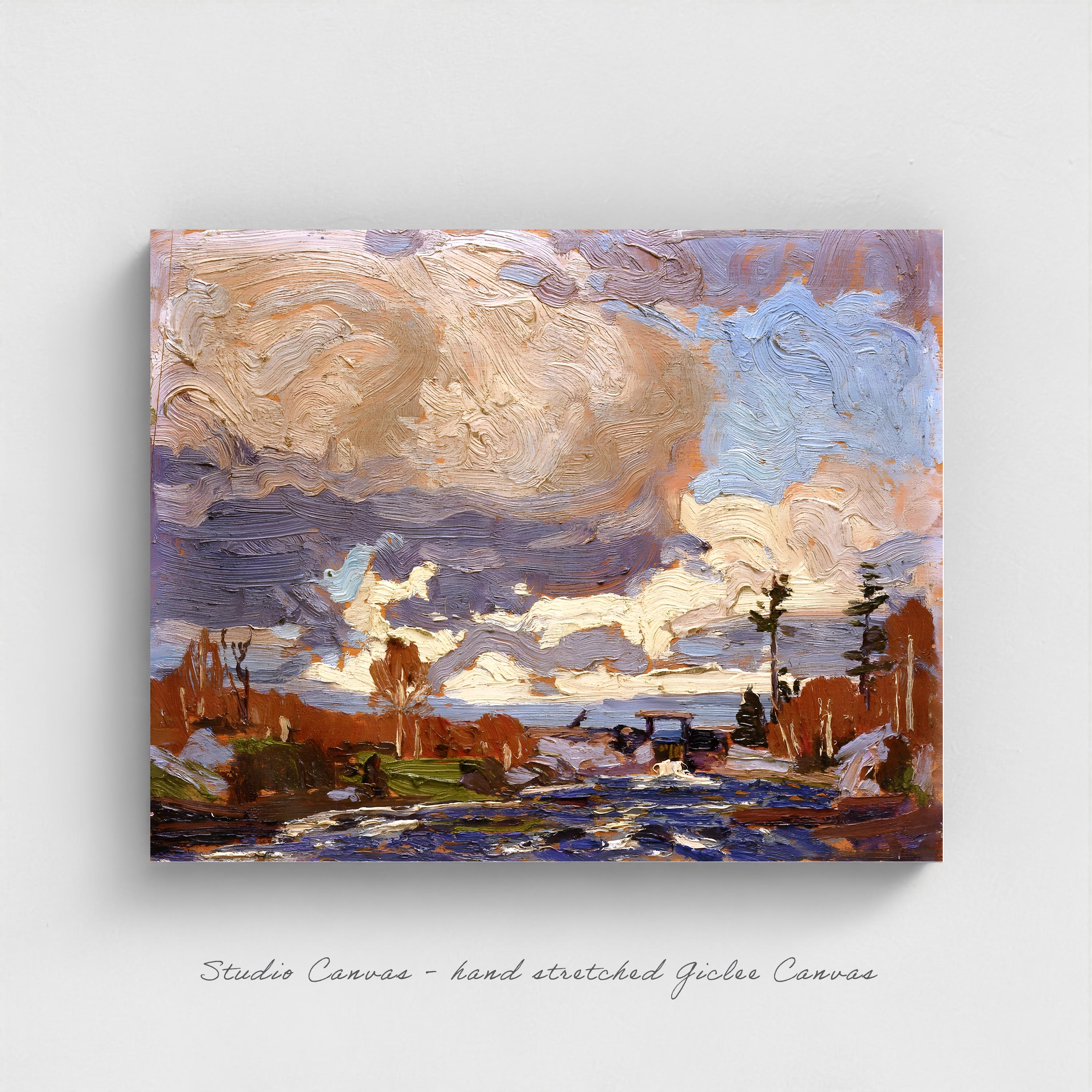 Honour the intersection of wilderness and human enterprise through Tom Thomson's thoughtful "Tea Lake Dam," capturing the modest logging infrastructure that enabled timber operations while respecting the pristine beauty of Algonquin Park's waterways. This significant work showcases Thomson's nuanced understanding of how carefully planned development could coexist with wilderness preservation, transforming the Tea Lake Dam into artistic documentation of the early conservation philosophy that sought balance between resource extraction and natural protection in Canada's northern forests, where logging dams represented both economic necessity and the engineering wisdom that enabled sustainable forestry operations without destroying the wilderness character that made Algonquin Park a model for wilderness stewardship.