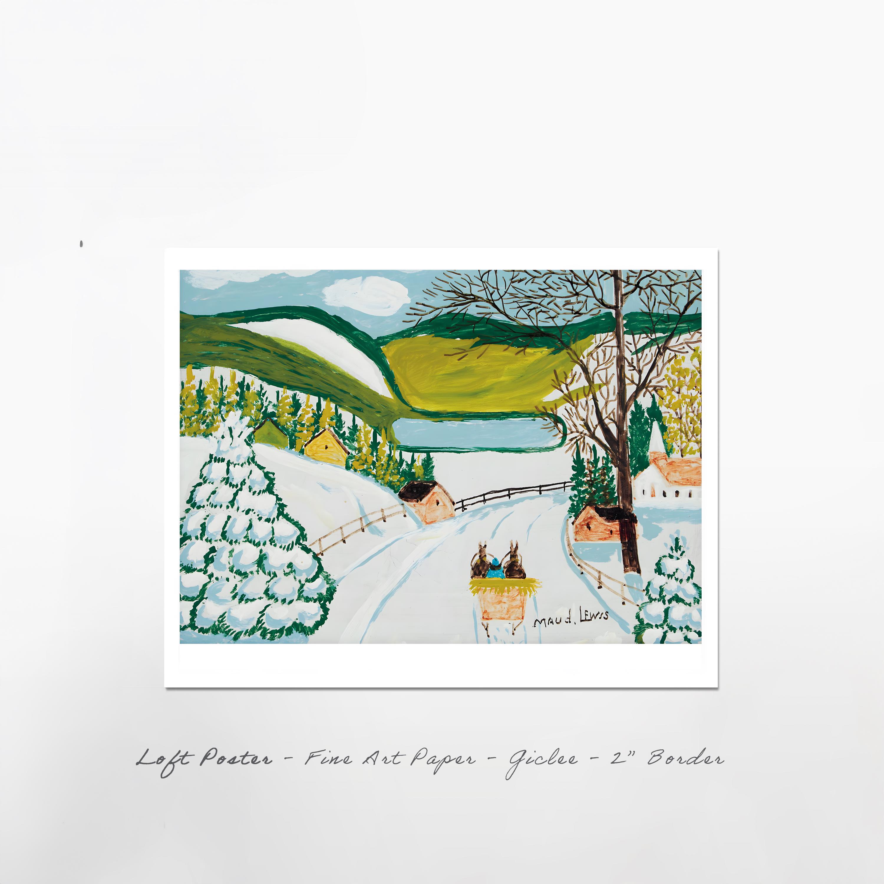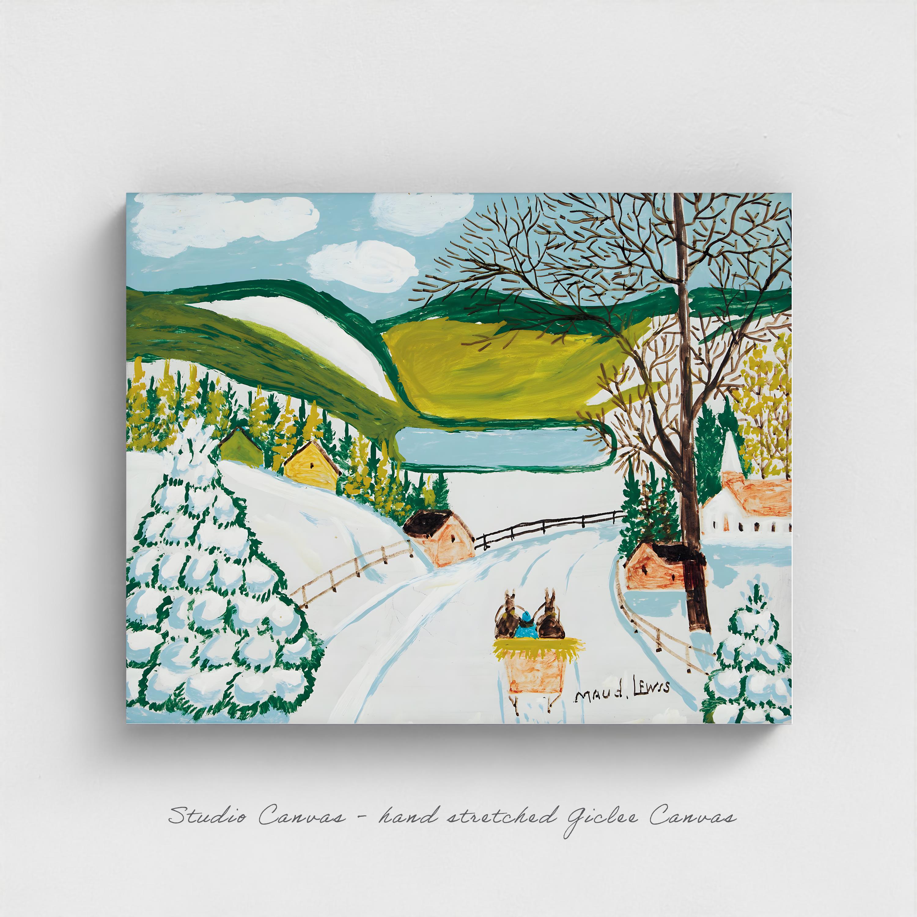 Maud Lewis - Sleigh Ride Folk Art Print - Nova Scotia Winter Joy Maritime Adventure Gift