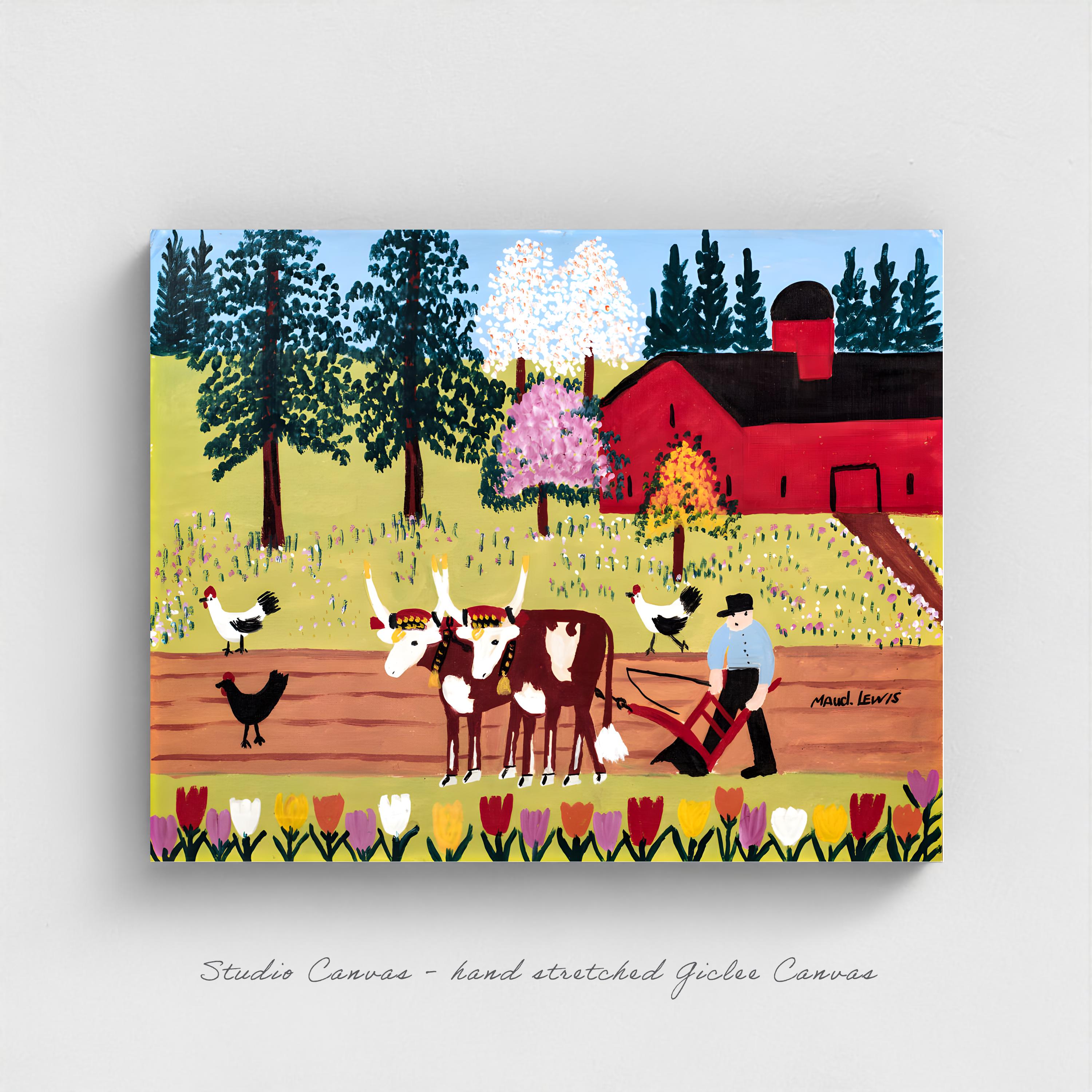Maud Lewis - Everett Plowing Folk Art Print - Nova Scotia Farm Work Maritime Agriculture Gift