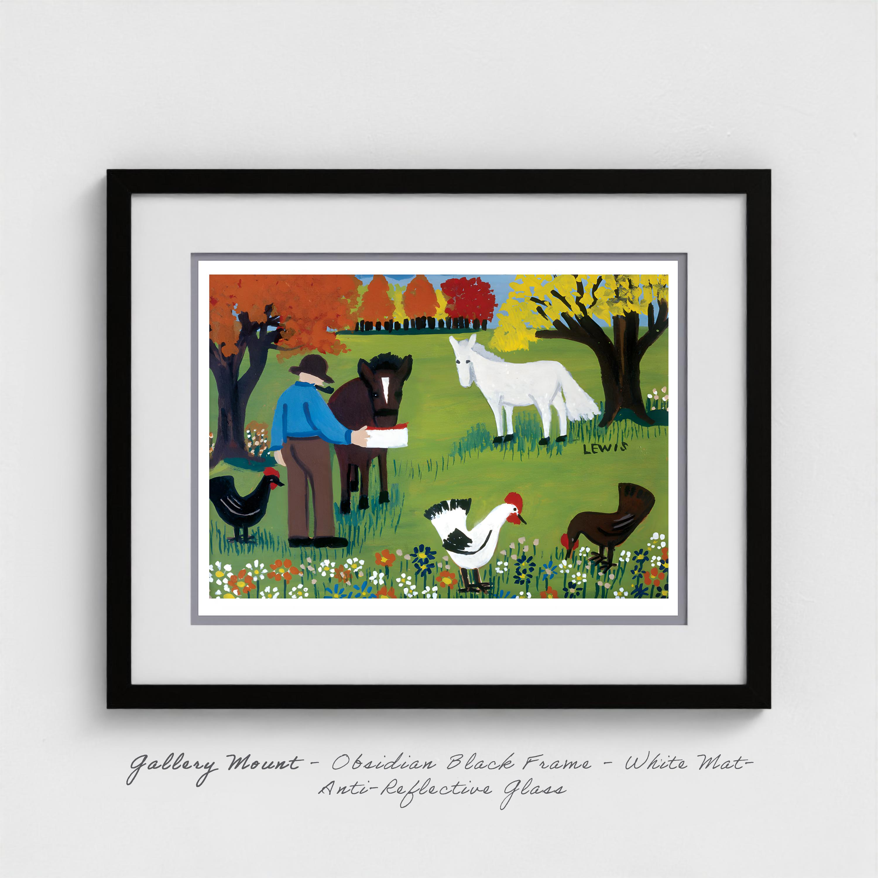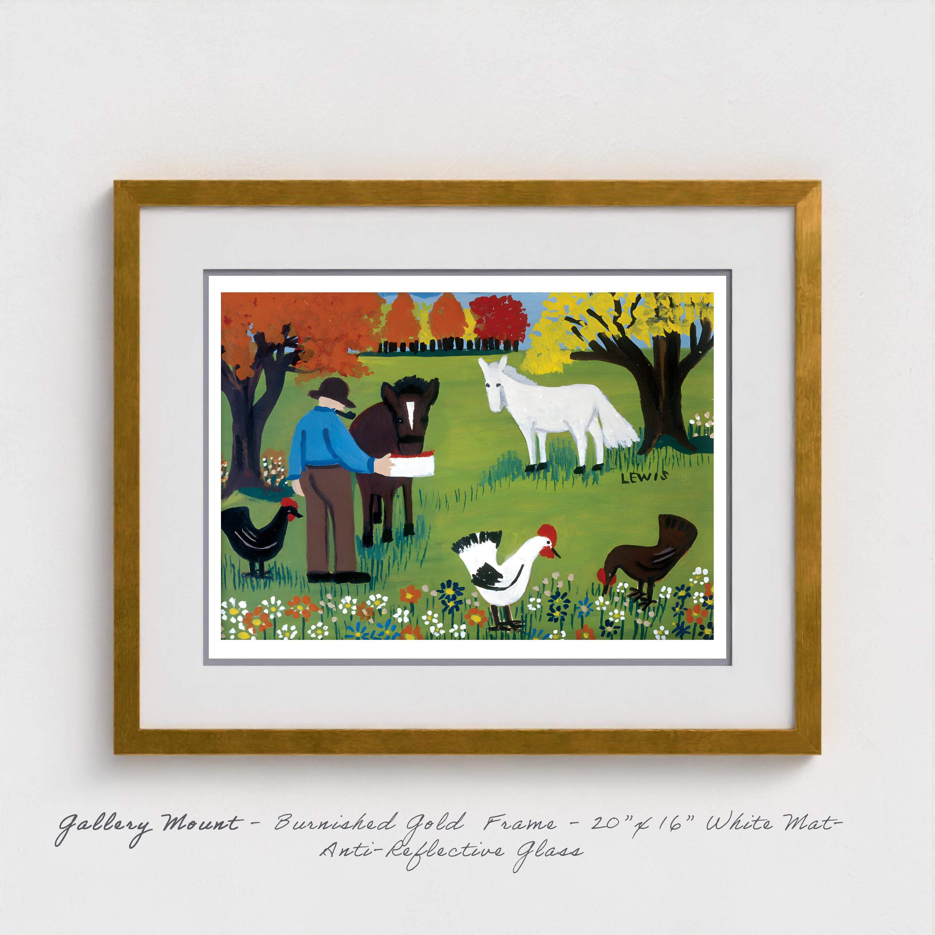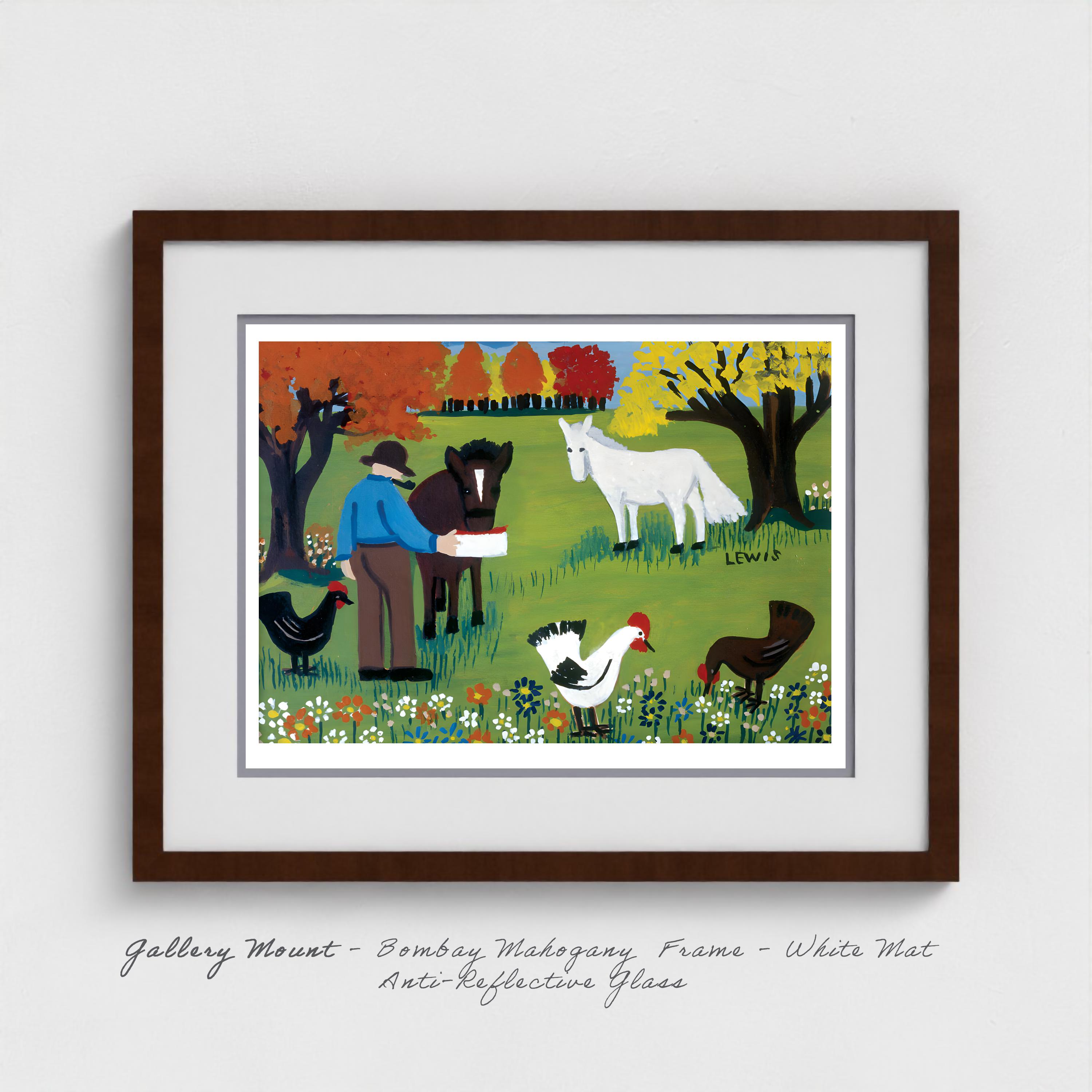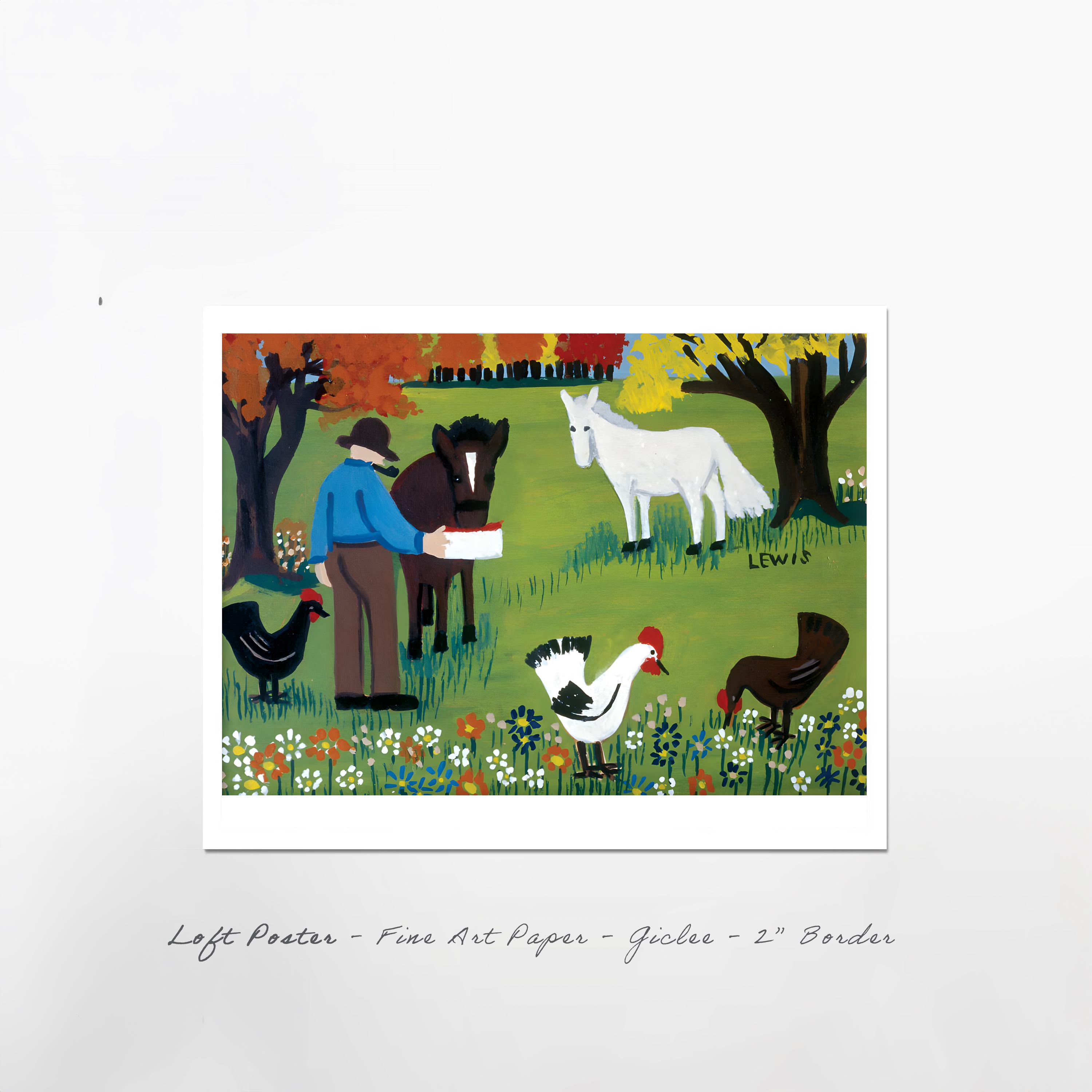 Maud Lewis - Feeding the Horses Folk Art Print - Nova Scotia Animal Care Maritime Partnership Gift