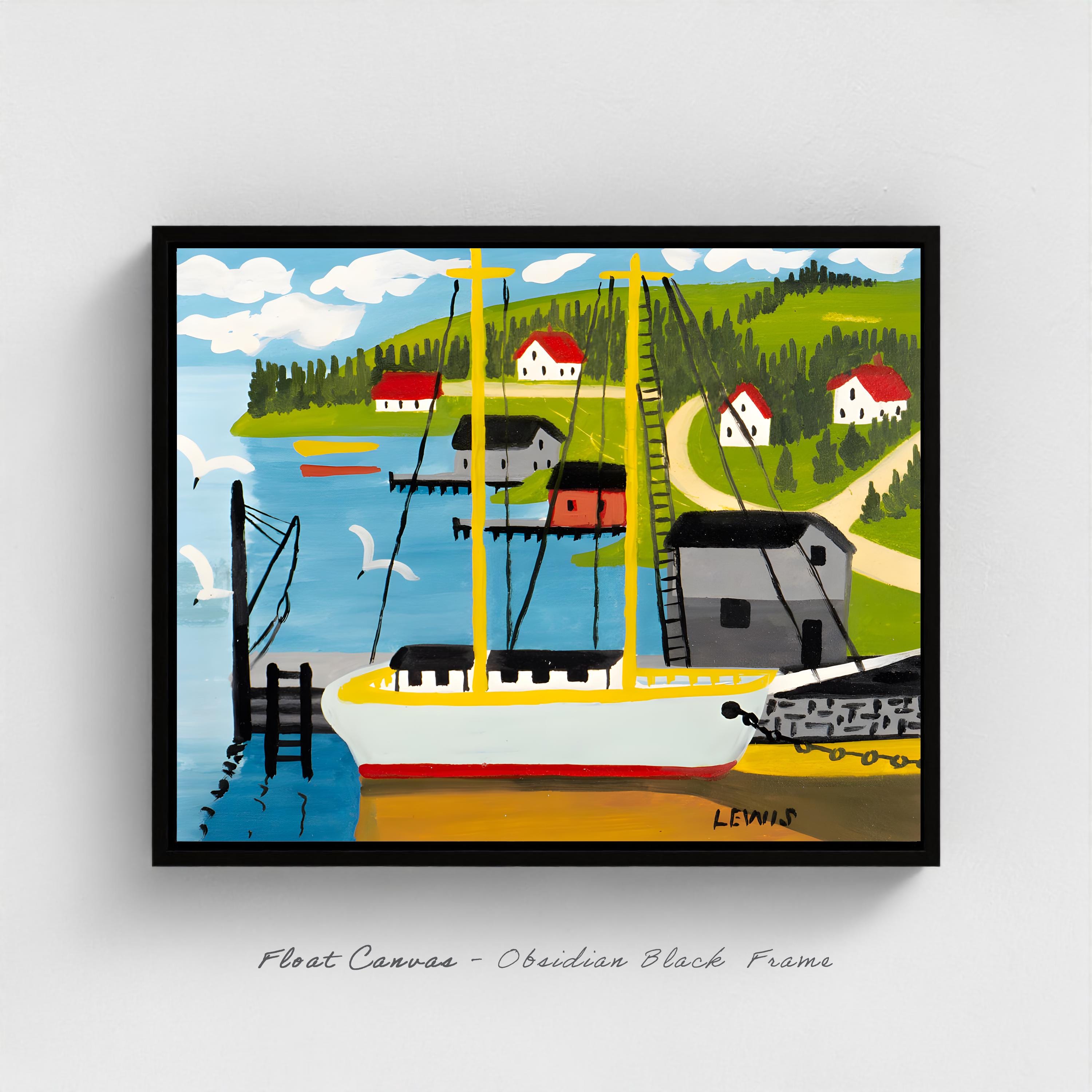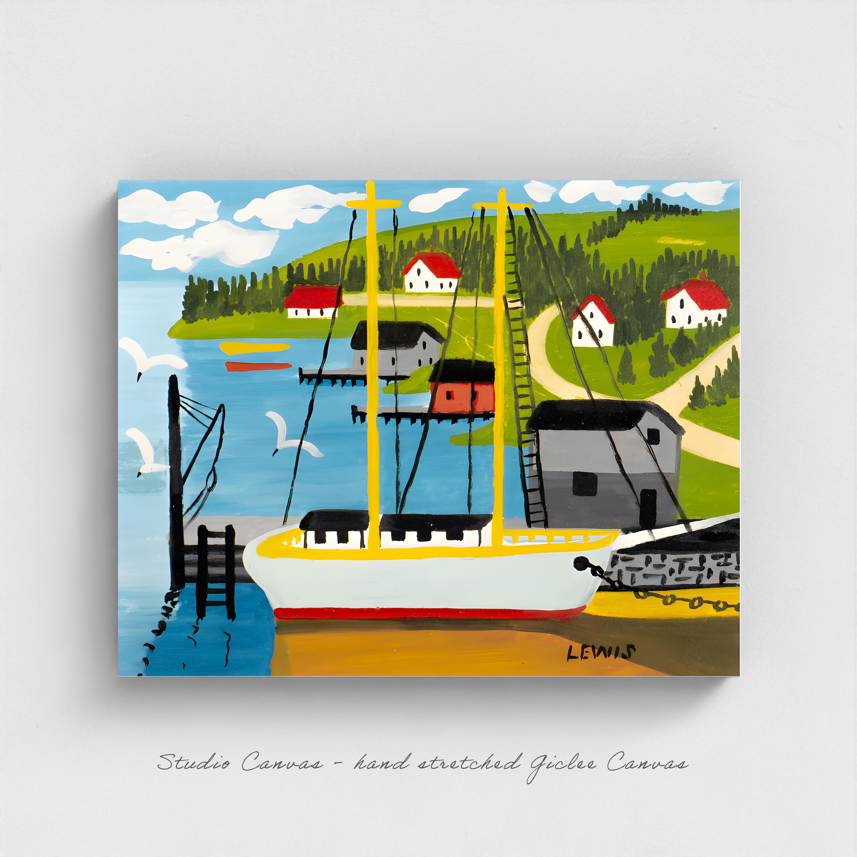 ๐ข WHY YOU'LL LOVE THIS PIECE: Lewis's schooner works honour the naval architecture brilliance that made Maritime vessels legendary throughout Atlantic shipping networks. This Two Mast Schooner painting demonstrates her remarkable appreciation for how schooner design represented generations of shipbuilding refinement and sailing expertise, transforming working vessels into dignified folk art icons that speak to the maritime engineering, sailing efficiency, and commercial success that enabled Nova Scotia's schooner fleet to dominate coastal trade through generations of Maritime shipbuilders and sailors who understood that two-masted schooners meant optimal balance between sailing performance and practical operation, creating vessels that could handle diverse cargo requirements while maintaining the speed and manoeuvrability that made Maritime ships the preferred choice for Atlantic coastal commerce.