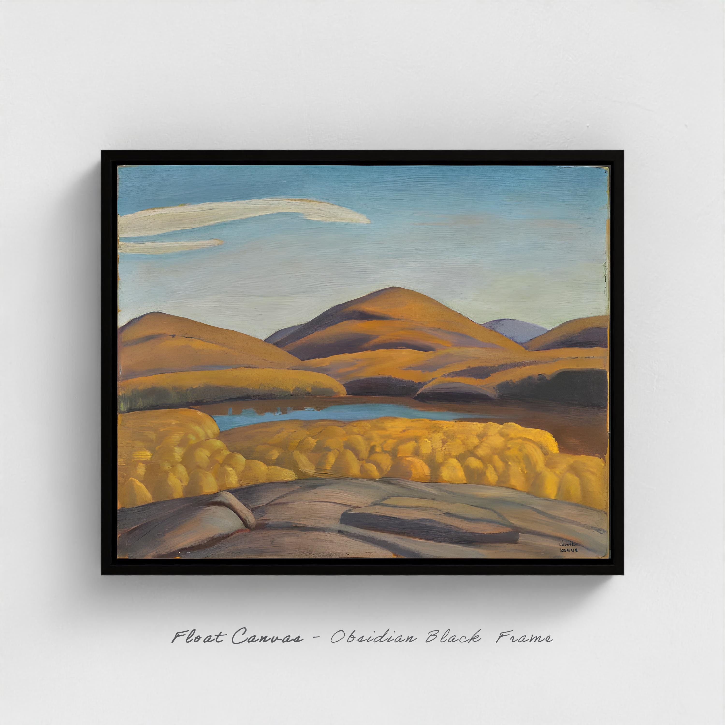 Float Frame: Giclee Canvas stretched over hardwood stretcher bars and held in a frame, ready to hang