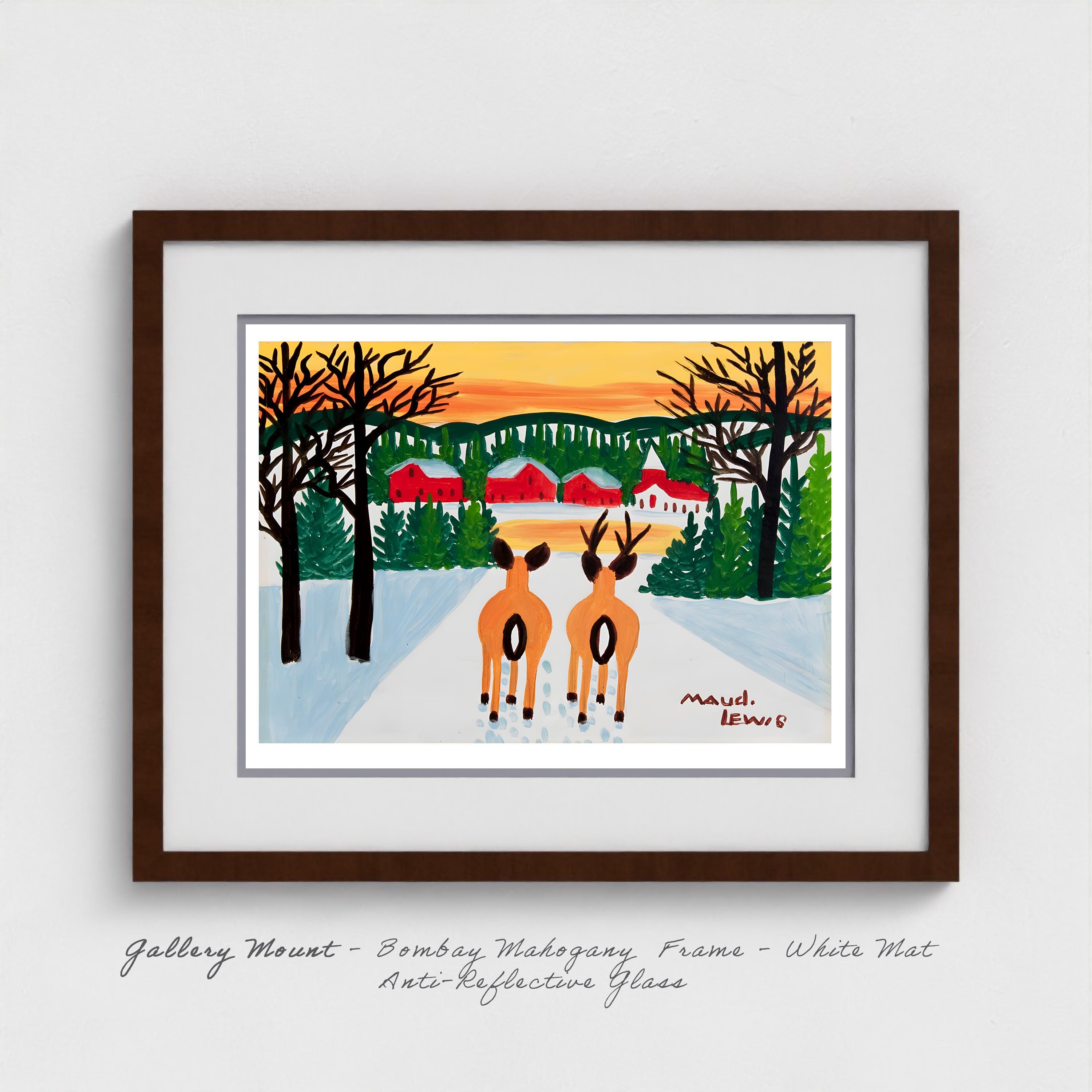 Maud Lewis Deer Overlooking Village 1966 | Giclee Fine Art Reproduction Print | Nova Scotia Folk Tradition | Canvas Print | Christmas Gift