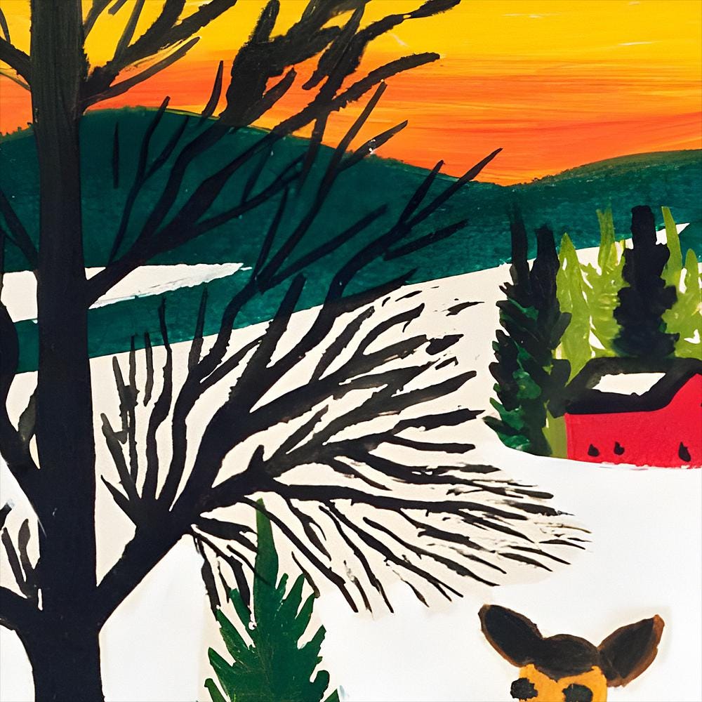 Maud Lewis Giclee Print | Deer at Sunset, Nova Scotia Folk Art