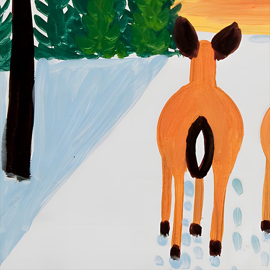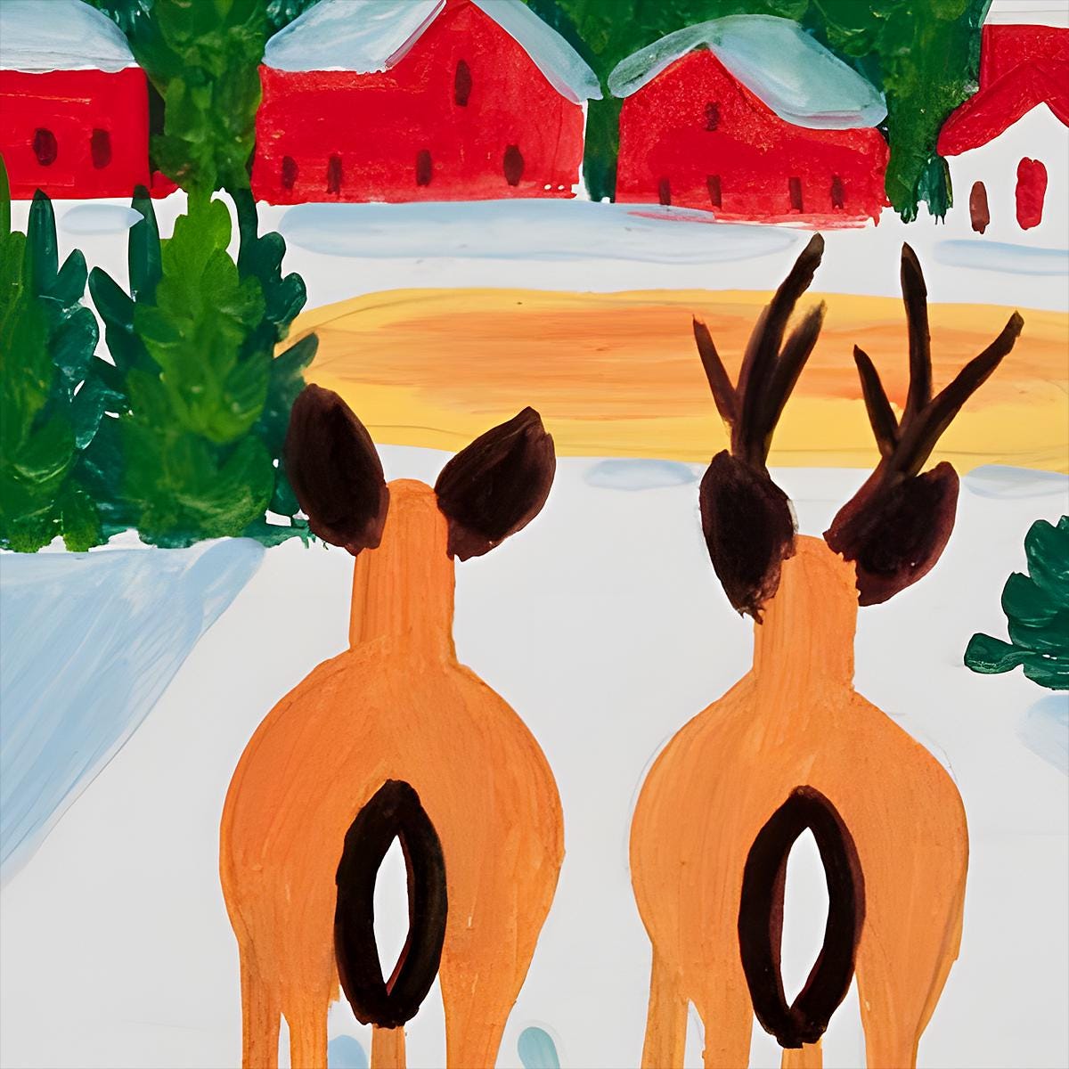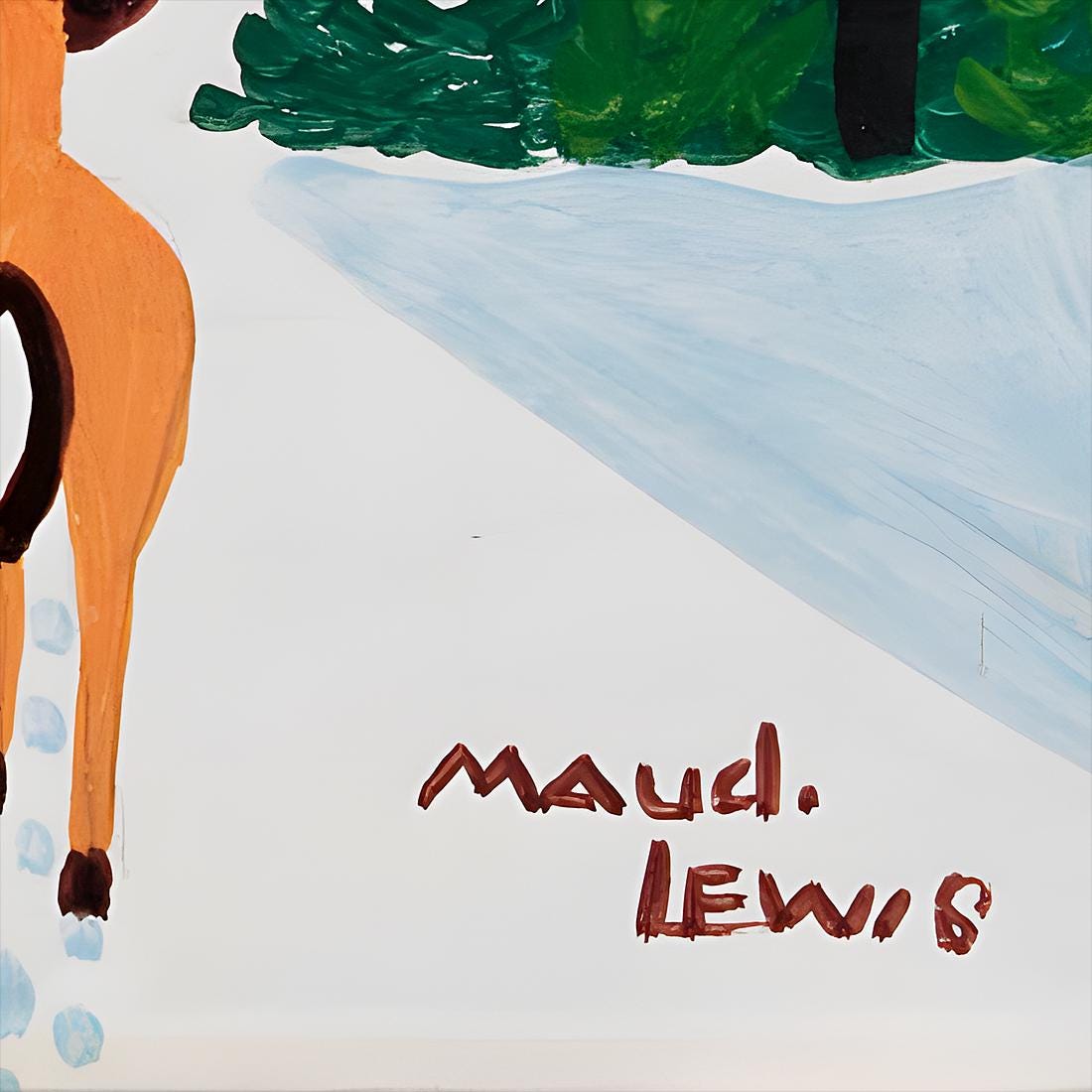Deer paintings were among Lewis's most popular subjects with collectors. While she's perhaps best known for cats and oxen, her deer compositions captured something different—a sense of quiet contemplation, of peaceful coexistence between wildlife and human settlement, of nature's gentle presence on the margins of village life. These weren't hunting scenes or narratives of conflict, but moments of shared space, mutual respect.