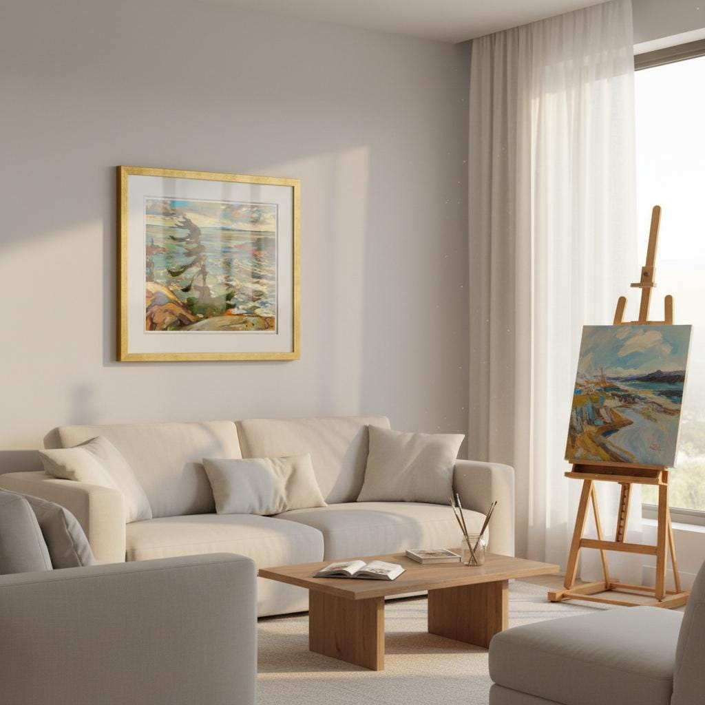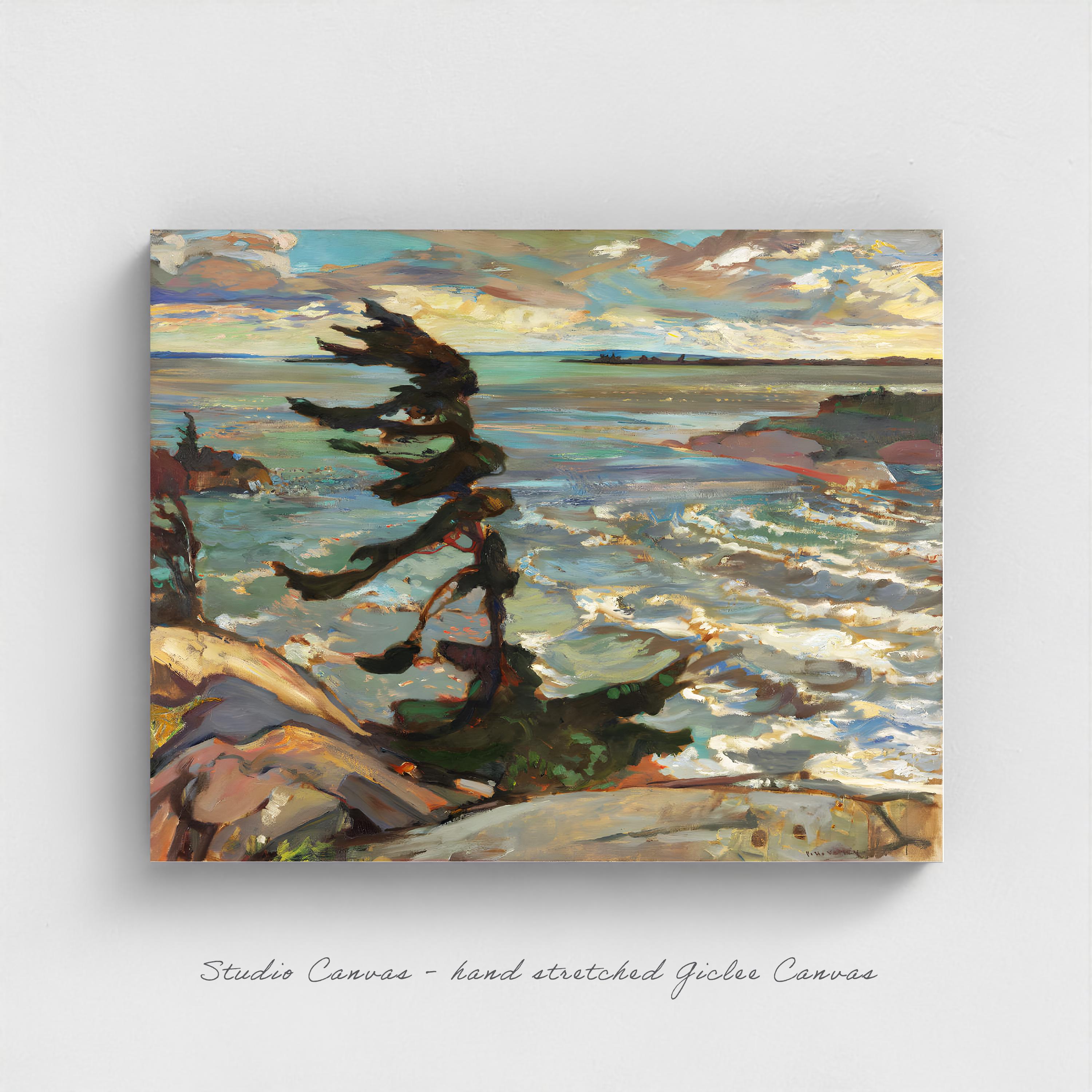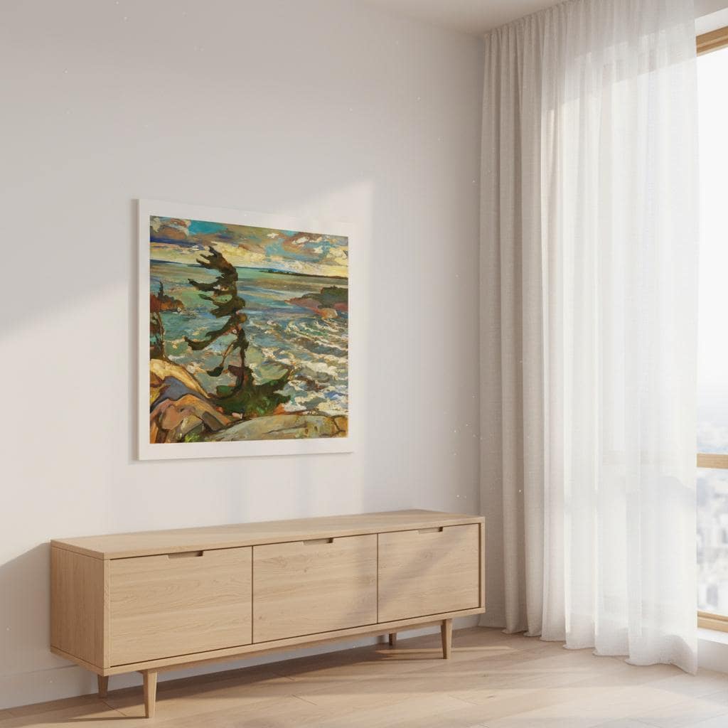 Bring home the painting born from a summer refuge on Georgian Bay — where a war-haunted artist found renewal among windswept pines and discovered that nature's storms could heal what human conflict had broken.