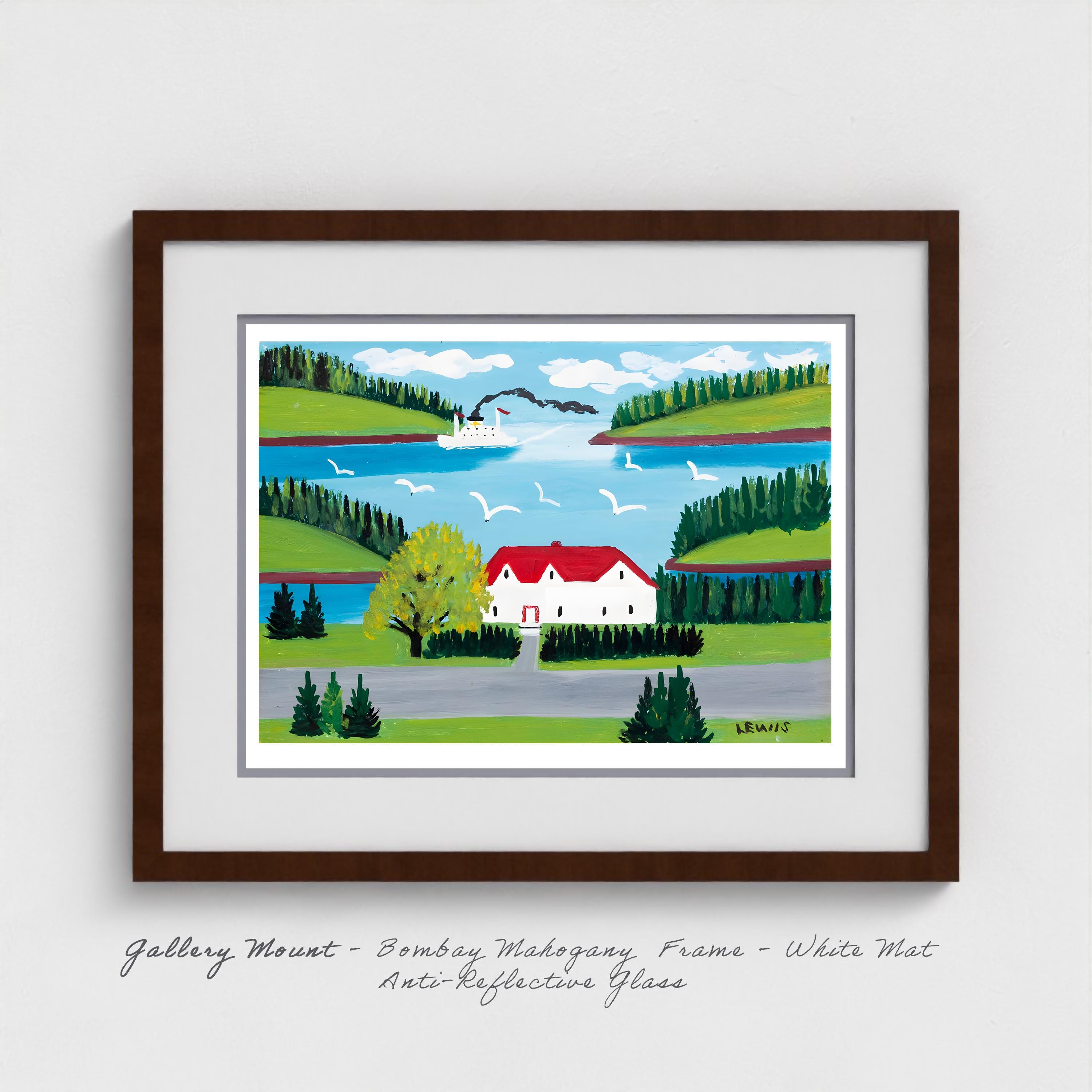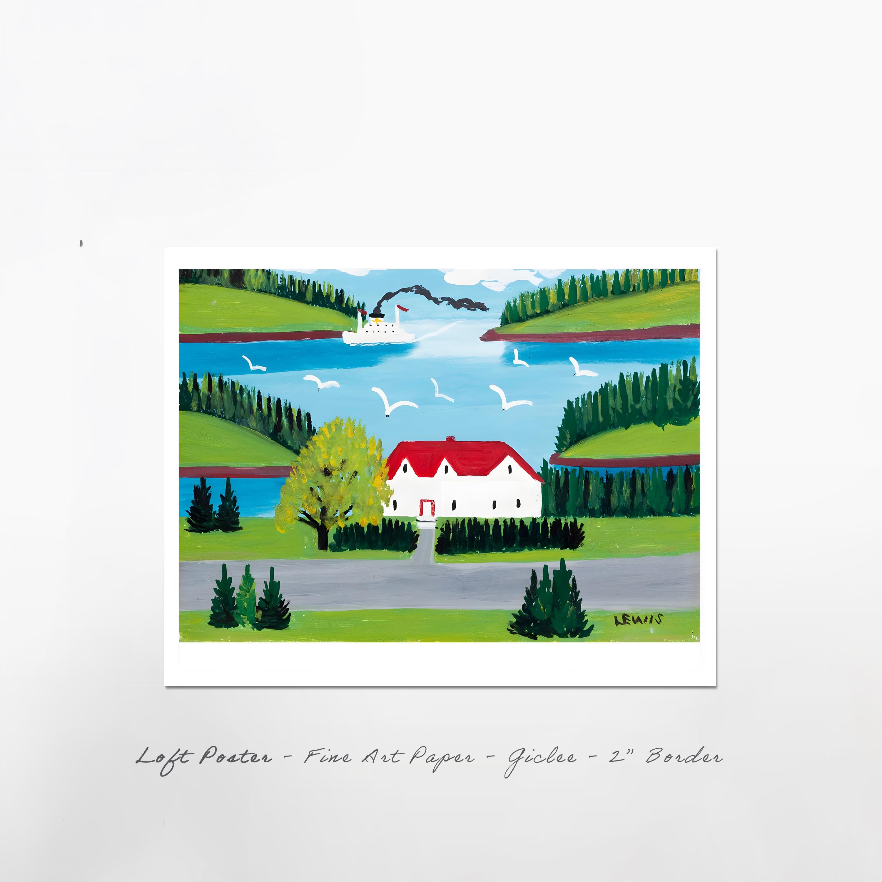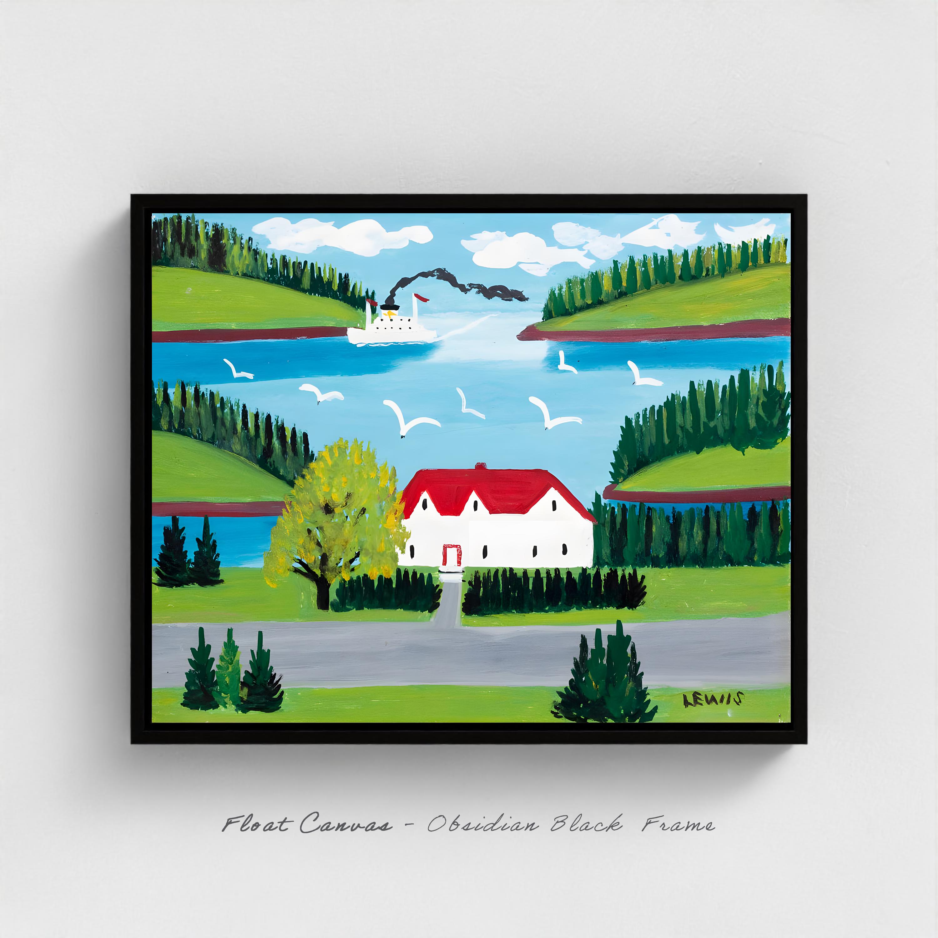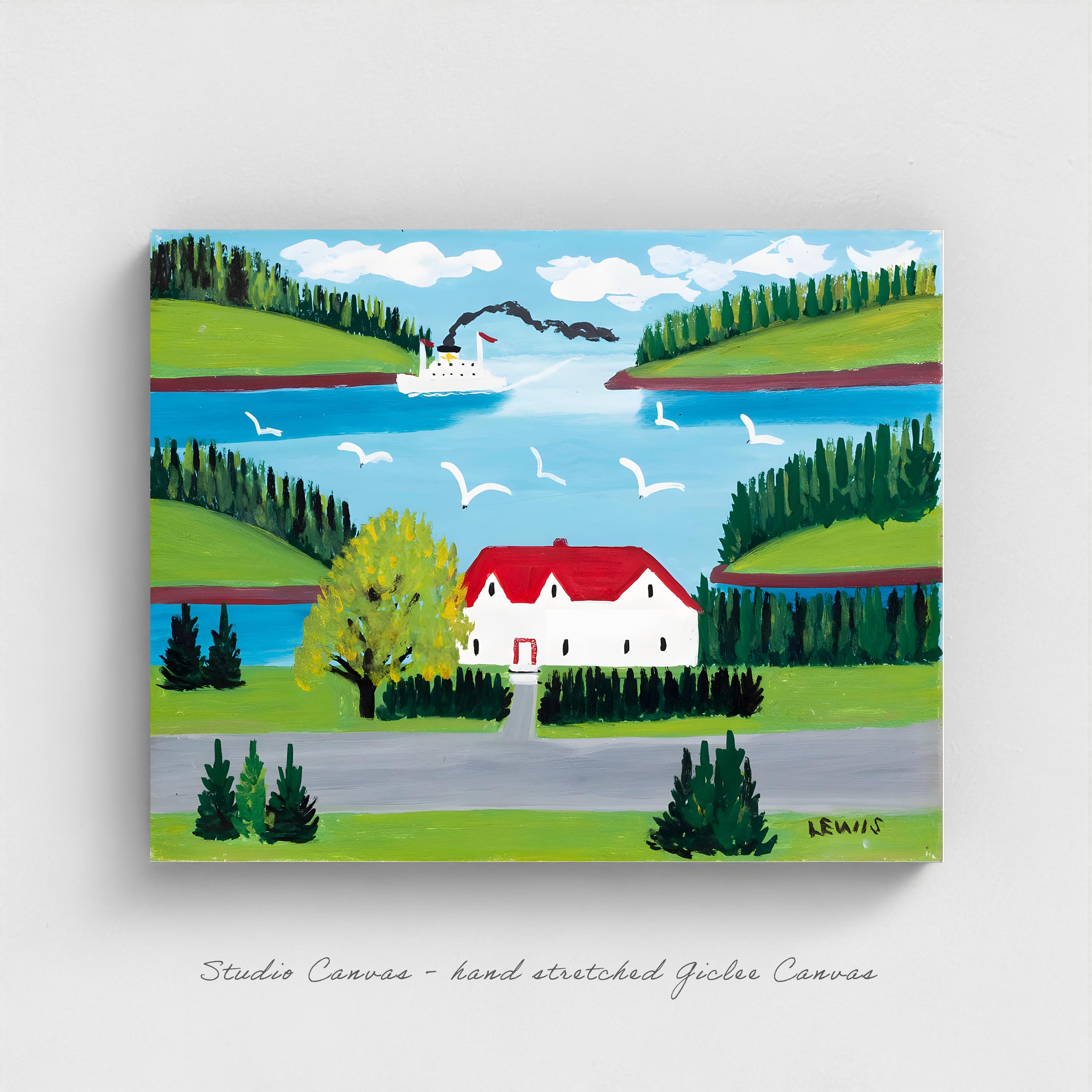 Bring home the ferry painted from a roadside cottage where Canada's beloved folk artist captured the Bay of Fundy's essential rhythm — steamships connecting isolated Maritime communities through waters she knew by heart but rarely crossed herself.