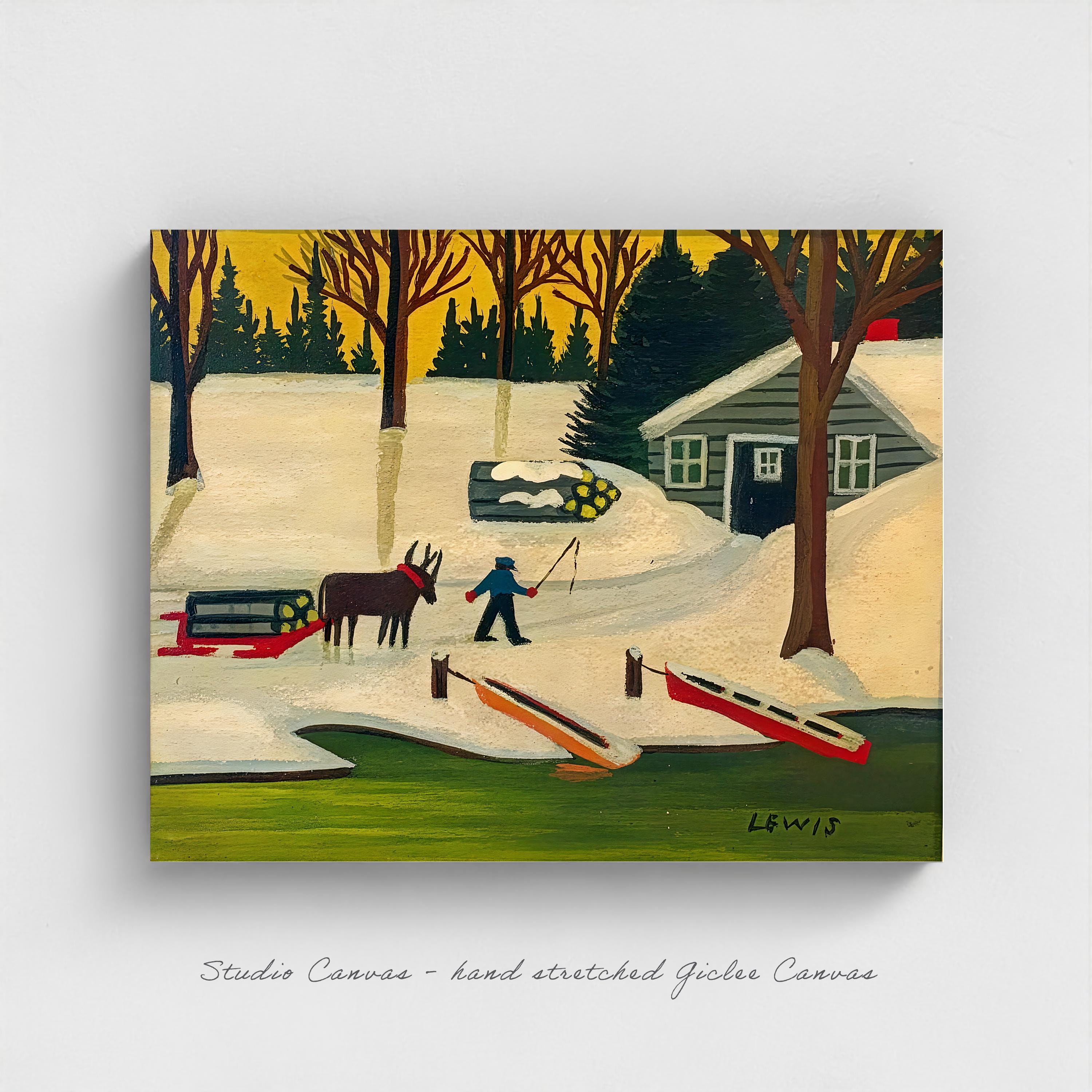 Maud Lewis Winter Cabin Giclee Canvas Print | 1945 Early Work | Nova Scotia Folk Art | Canadian Winter Landscape | Rare 1940s Painting