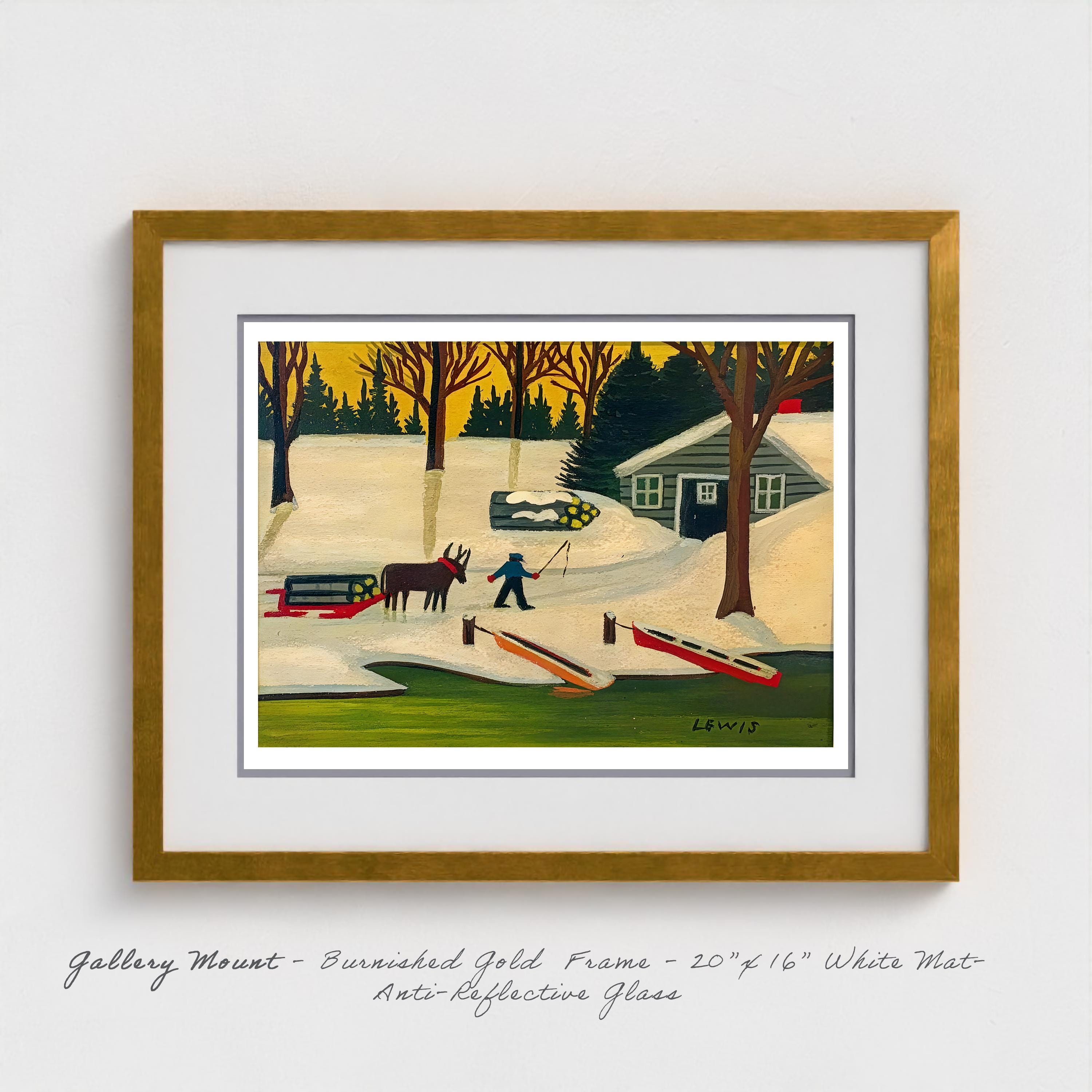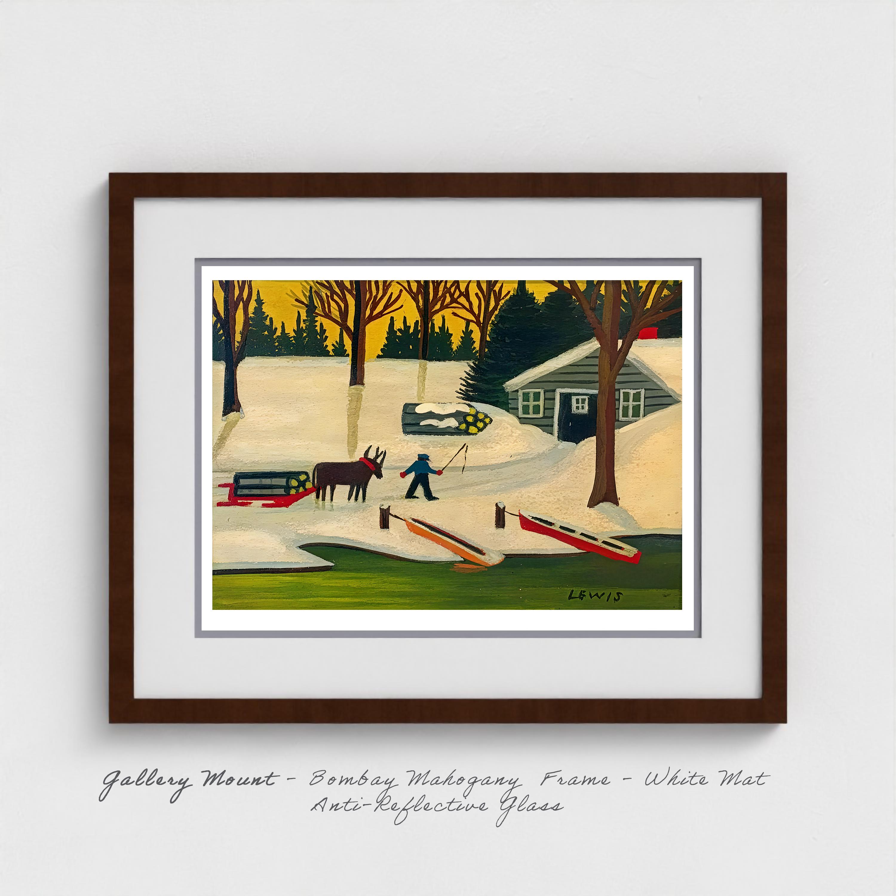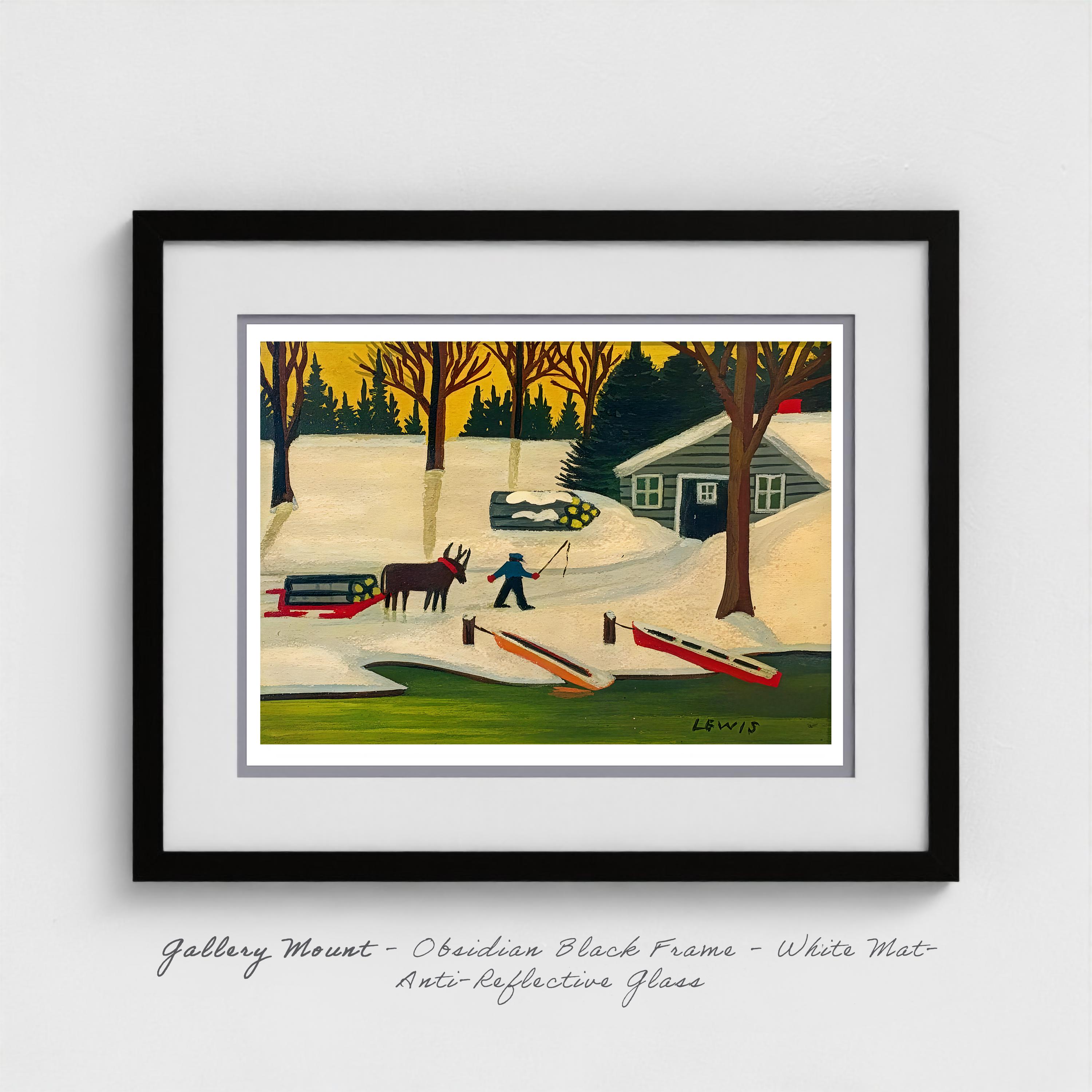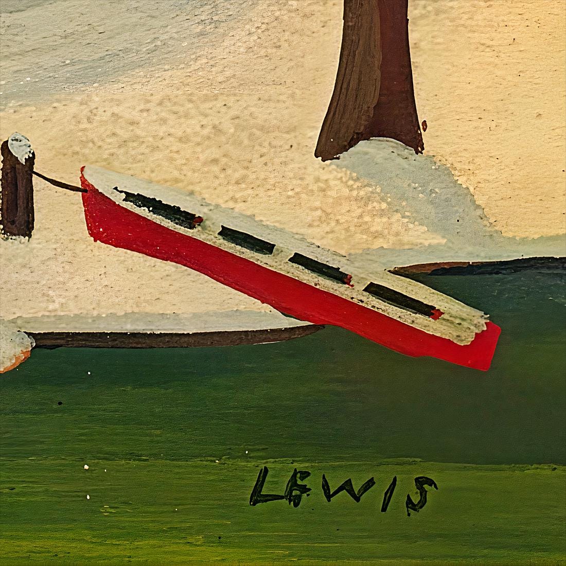 The winter landscape genre held particular significance in Lewis's oeuvre. Snow-draped scenes invoke festive memories and nostalgic visions of rural Canadian life — sleigh rides, families gathered around fires, the simple beauty of evergreens laden with snow. Lewis painted winter repeatedly throughout her career, each iteration fresh despite familiar elements. She understood that customers wanted these optimistic seasonal visions, especially Americans and urban Canadians holidaying in Nova Scotia who purchased paintings as souvenirs of imagined rural authenticity.
