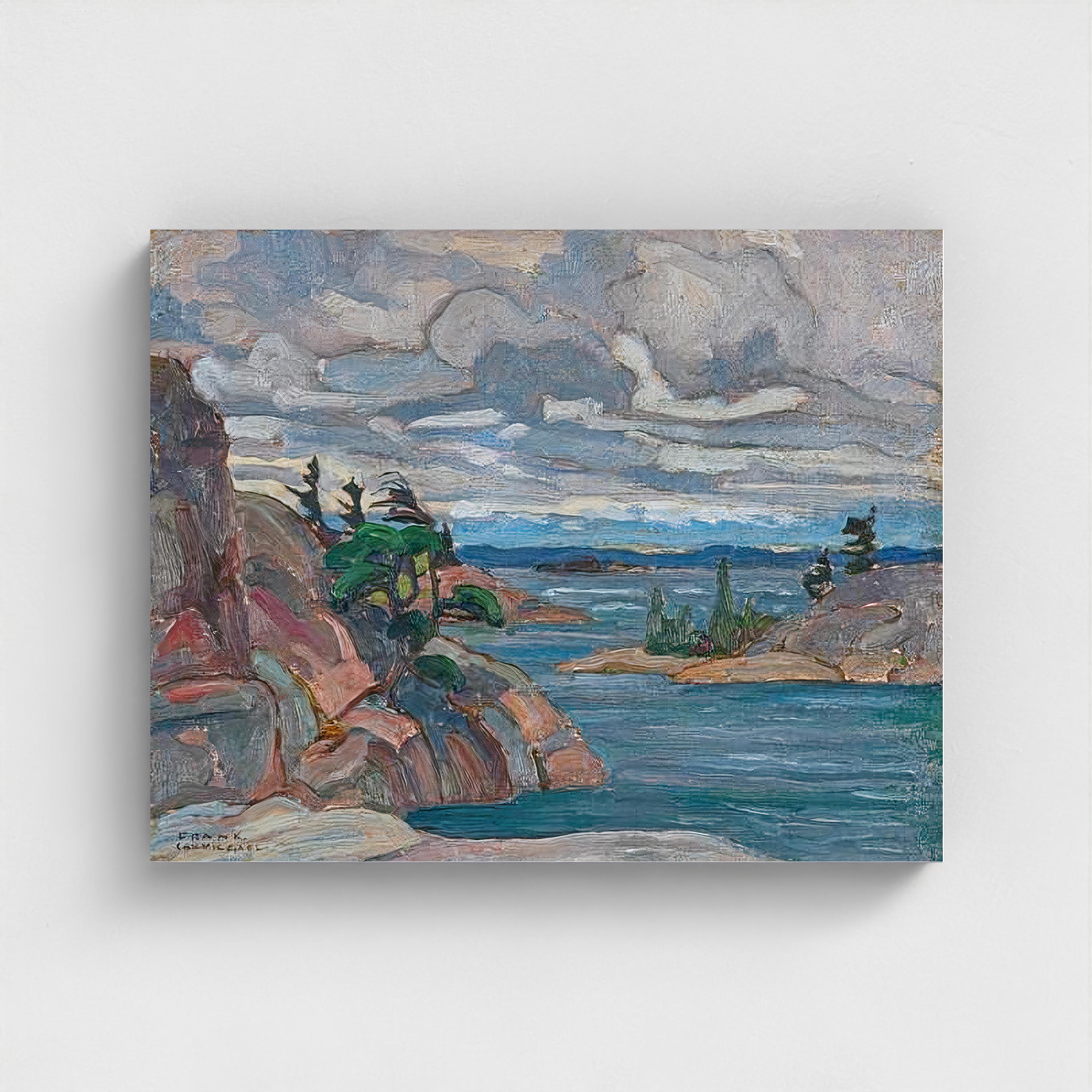 Franklin Carmichael (1890–1945) was the youngest founding member of the Group of Seven and among its most spiritually driven painters. Born in Orillia, Ontario, he honed his eye for colour and line as a teenager decorating carriages in his father's shop before moving to Toronto to study at the Ontario College of Art and apprentice at the legendary Grip Ltd. design firm — where he met Tom Thomson, Lawren Harris, and the circle of artists who would reshape Canadian painting. A pivotal 1925 expedition to Lake Superior with Harris and A.Y. Jackson transformed his practice; Carmichael embraced watercolour as his primary medium and never looked back, going on to co-found the Canadian Society of Painters in Water Colour. Deeply influenced by Theosophy and Transcendentalism, he sought to give visual form to the spiritual energy he felt radiating from the Canadian Shield — his luminous paintings of the La Cloche Mountains, Georgian Bay, and Lake Superior distilling vast wilderness into shimmering compositions of light, colour, and geometric form. Today his work is held in the collections of the National Gallery of Canada, the Art Gallery of Ontario, and the McMichael Canadian Art Collection, celebrated as some of the most lyrical and spiritually resonant landscape painting in Canadian art history.