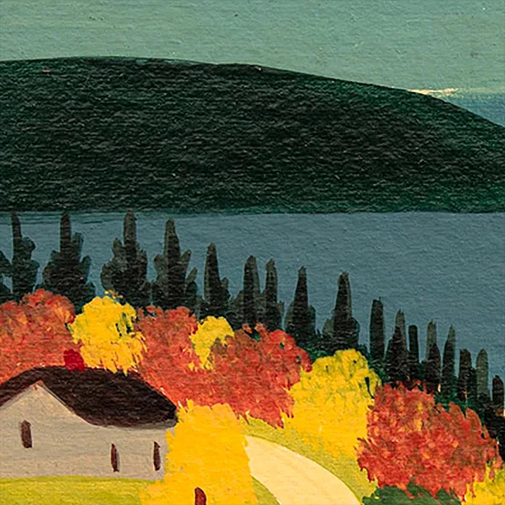 Maud Lewis (1903–1970) is Canada's most beloved folk artist, a painter who saw the world in bright primary colours and never stopped celebrating it. From her tiny roadside home in Marshalltown, Nova Scotia, she filled canvas after canvas with the scenes she loved — fluffy black cats in fields of tulips, oxen hauling logs through fresh snow, jaunty sleighs on country roads, harbours dotted with sailboats under endless blue skies. She learned to paint from her mother as a girl in Yarmouth, and that early gift became a lifelong calling. Working entirely from memory and imagination, Lewis developed a style that is instantly recognizable — bold, warm, and brimming with an optimism that has charmed collectors around the world for decades. Her painted house, covered inside and out with flowers, birds, and butterflies, is now preserved as a permanent exhibit at the Art Gallery of Nova Scotia, and her work is held in major collections including the Canadian Museum of History. The 2016 film Maudie introduced her story to a global audience, but it is the paintings themselves — radiant with colour, alive with Maritime spirit — that continue to draw people in, generation after generation.