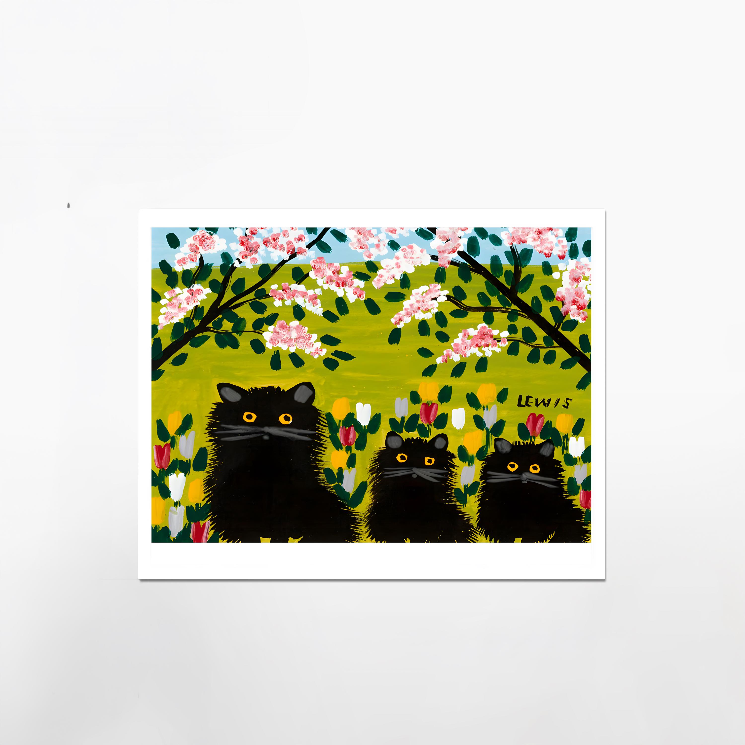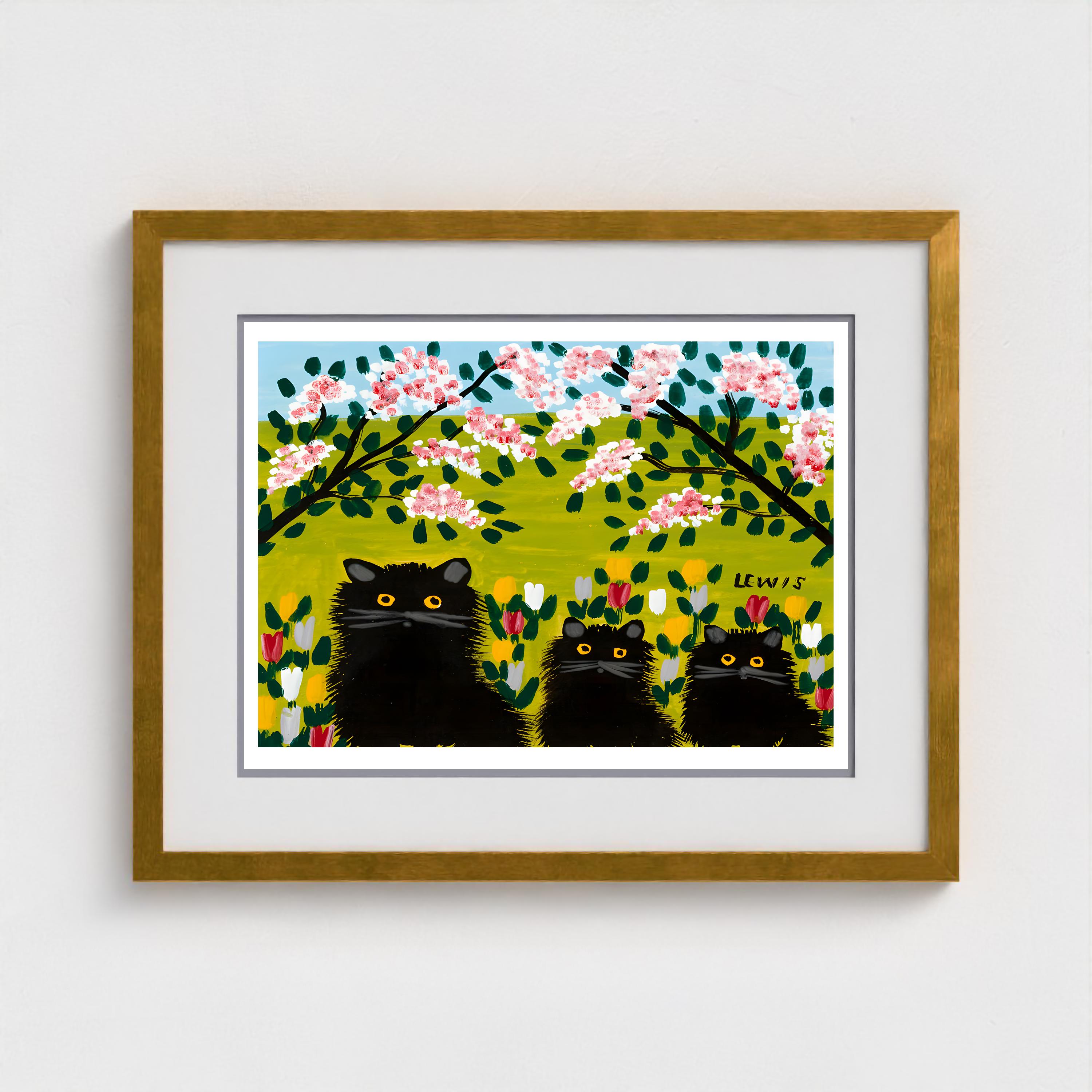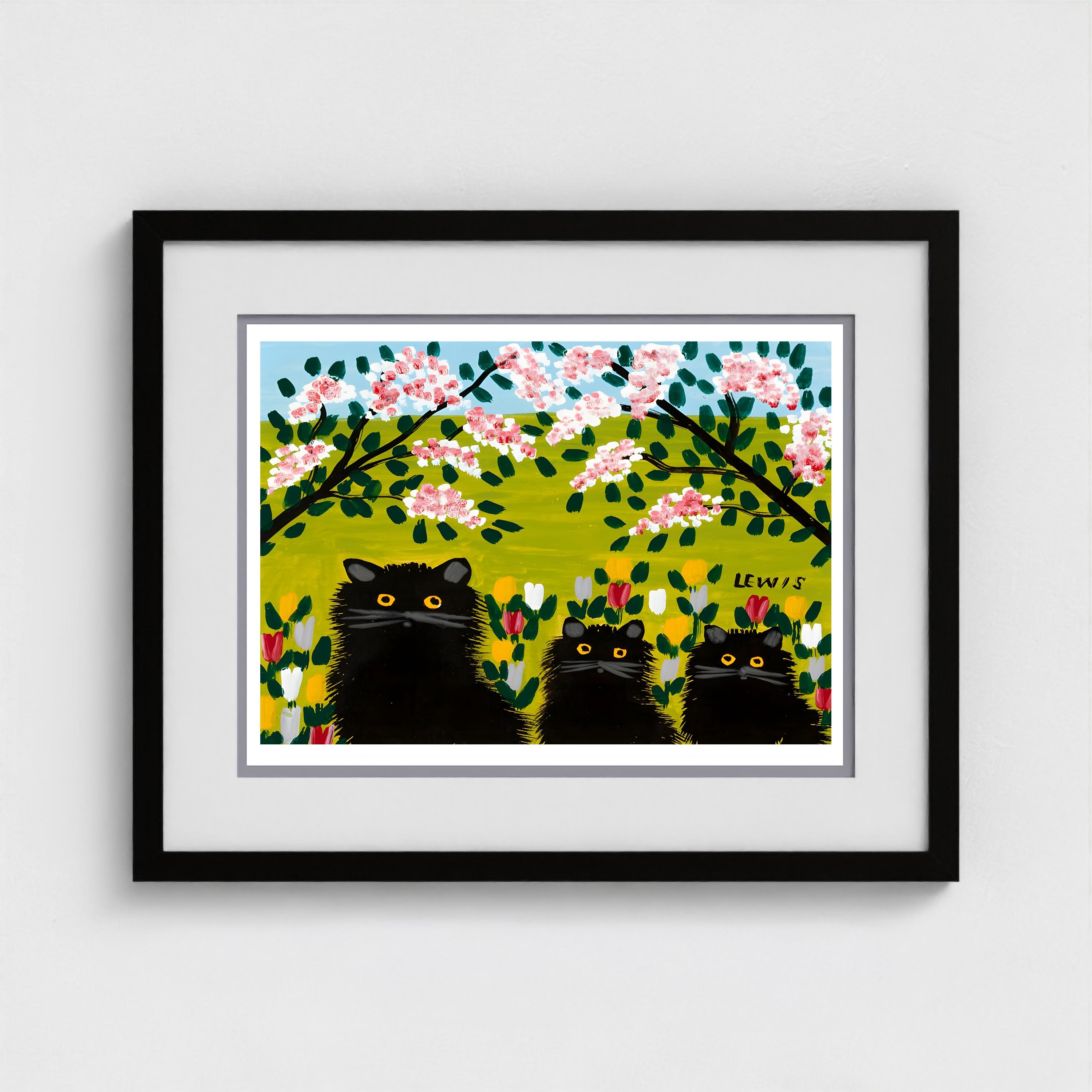 Maud Lewis, Three Black Cats-1965 | Giclée Fine Art Print | Canadian Heritage Folk Art