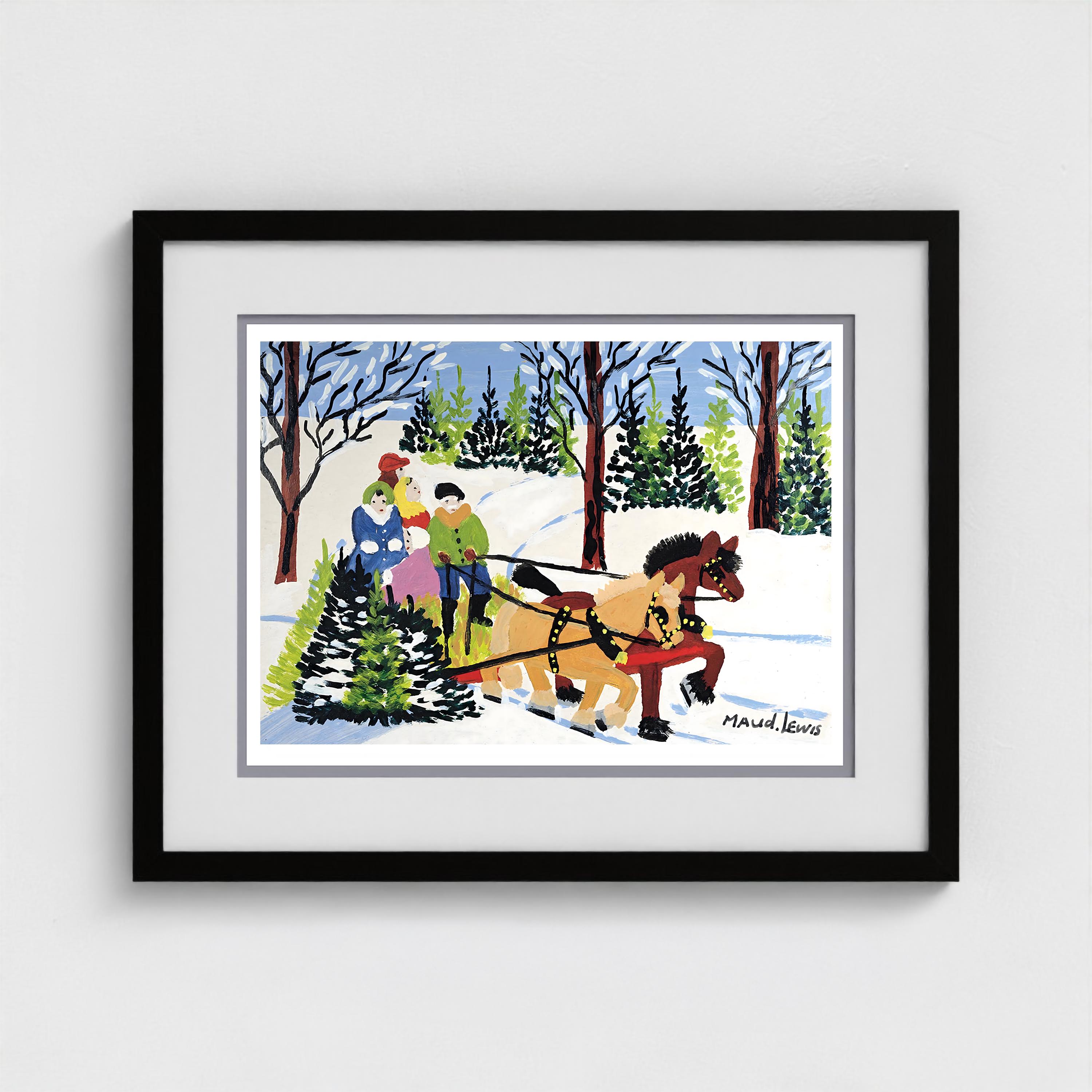Maud Lewis, Family and Sleigh | Giclée Fine Art Print | Canadian Heritage Folk Art