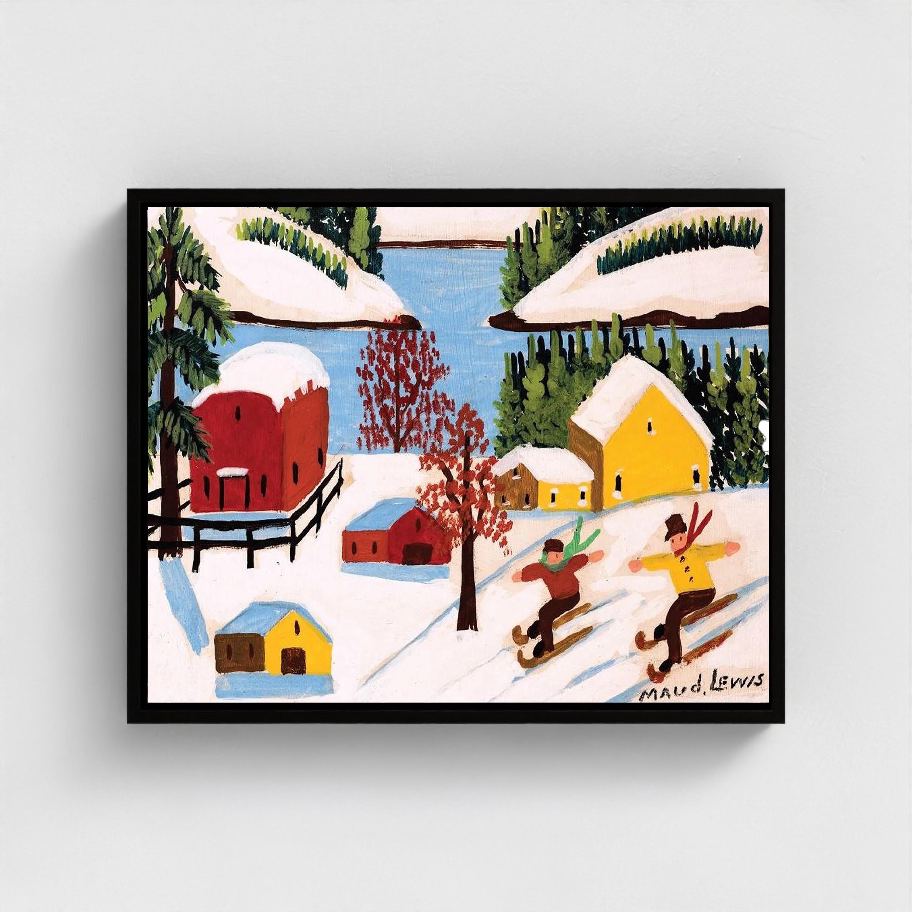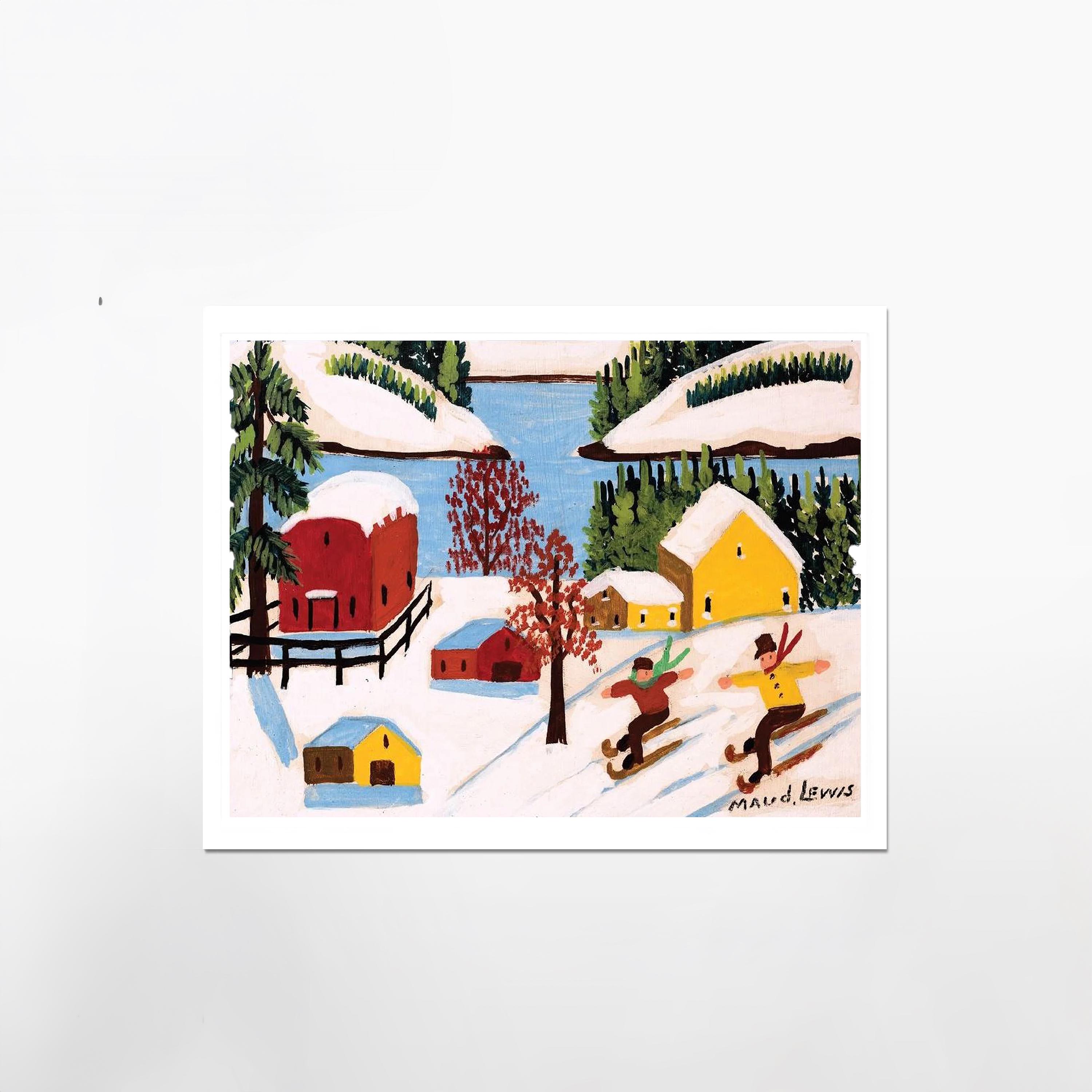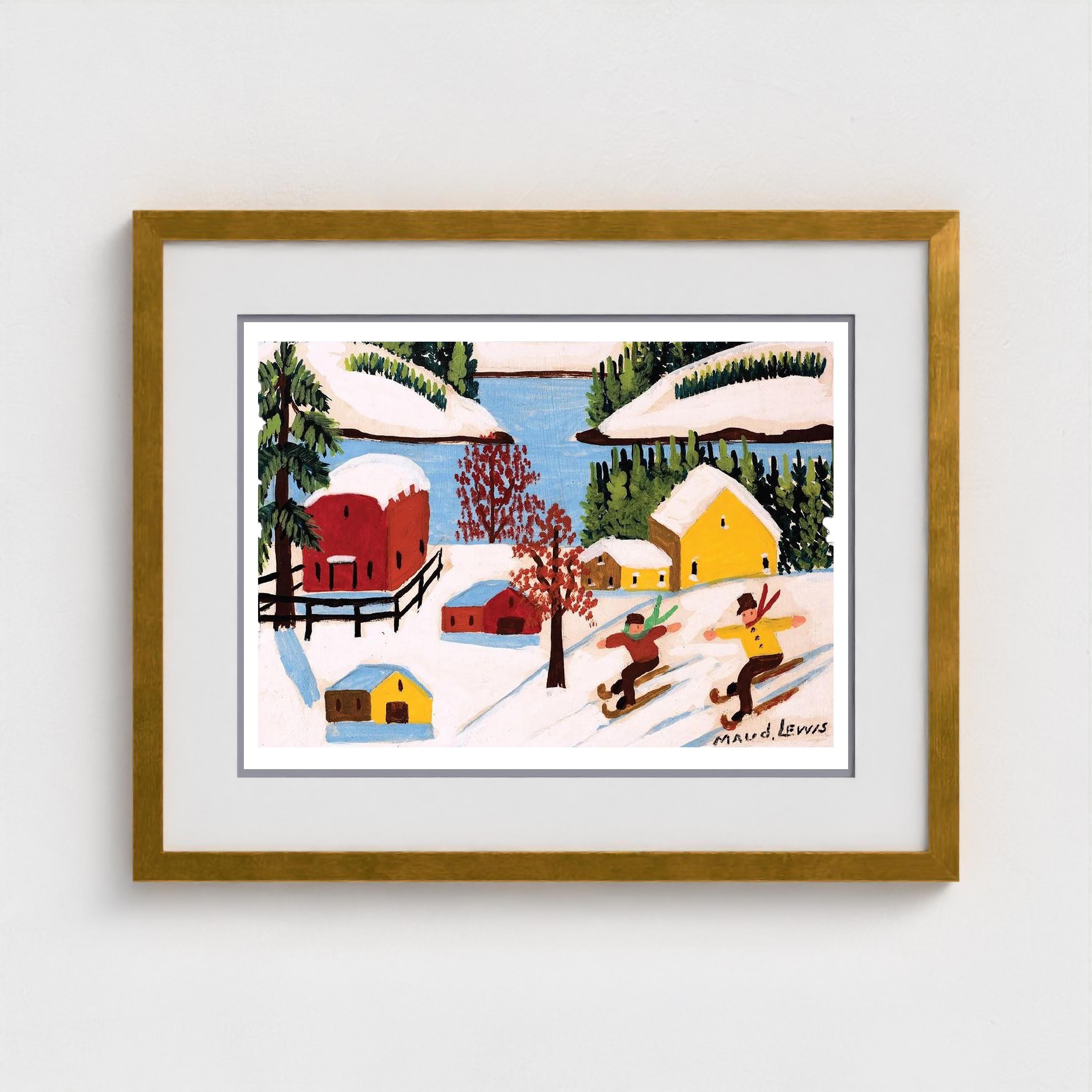 Maud Lewis, Children Skiing | Giclée Fine Art Print | Canadian Heritage Folk Art