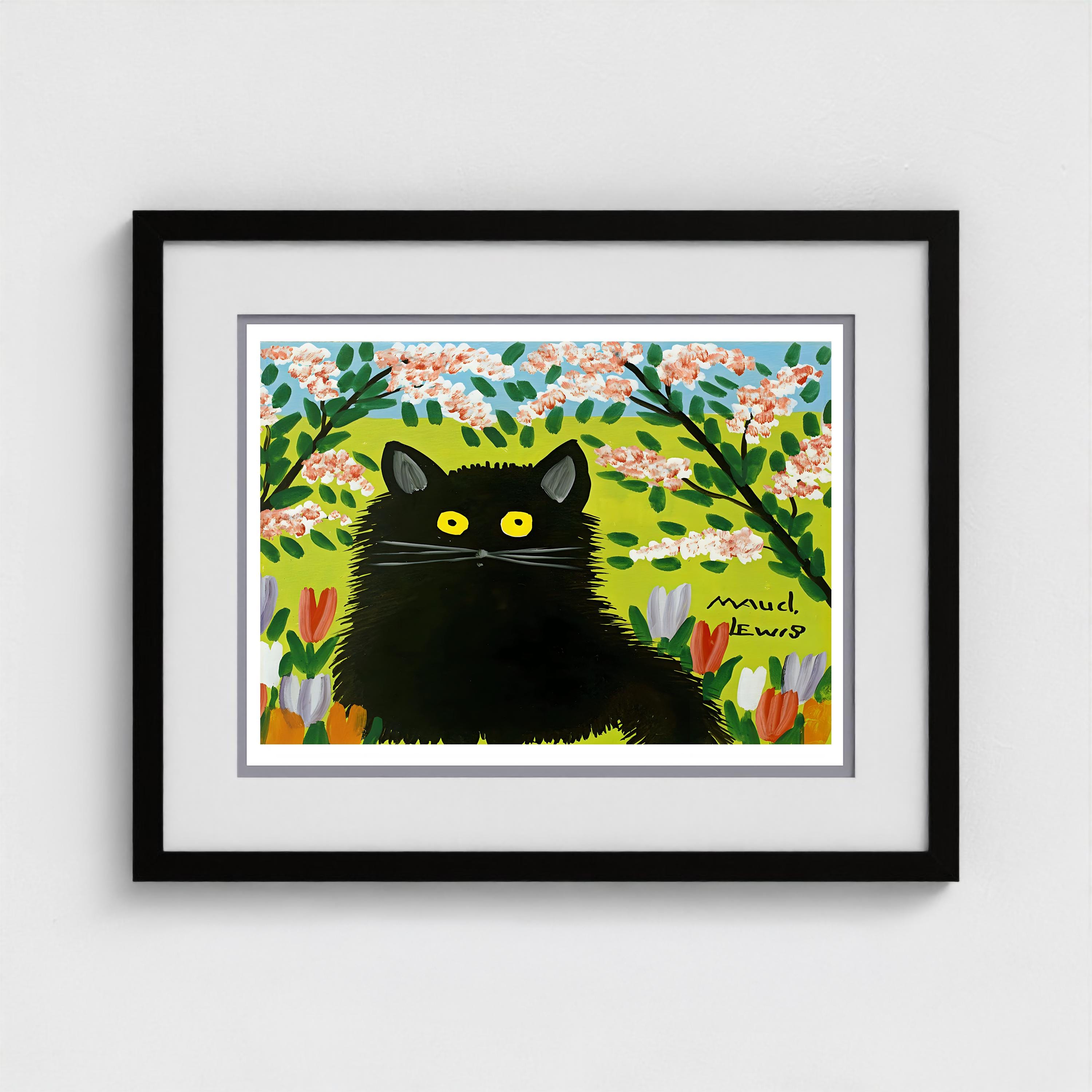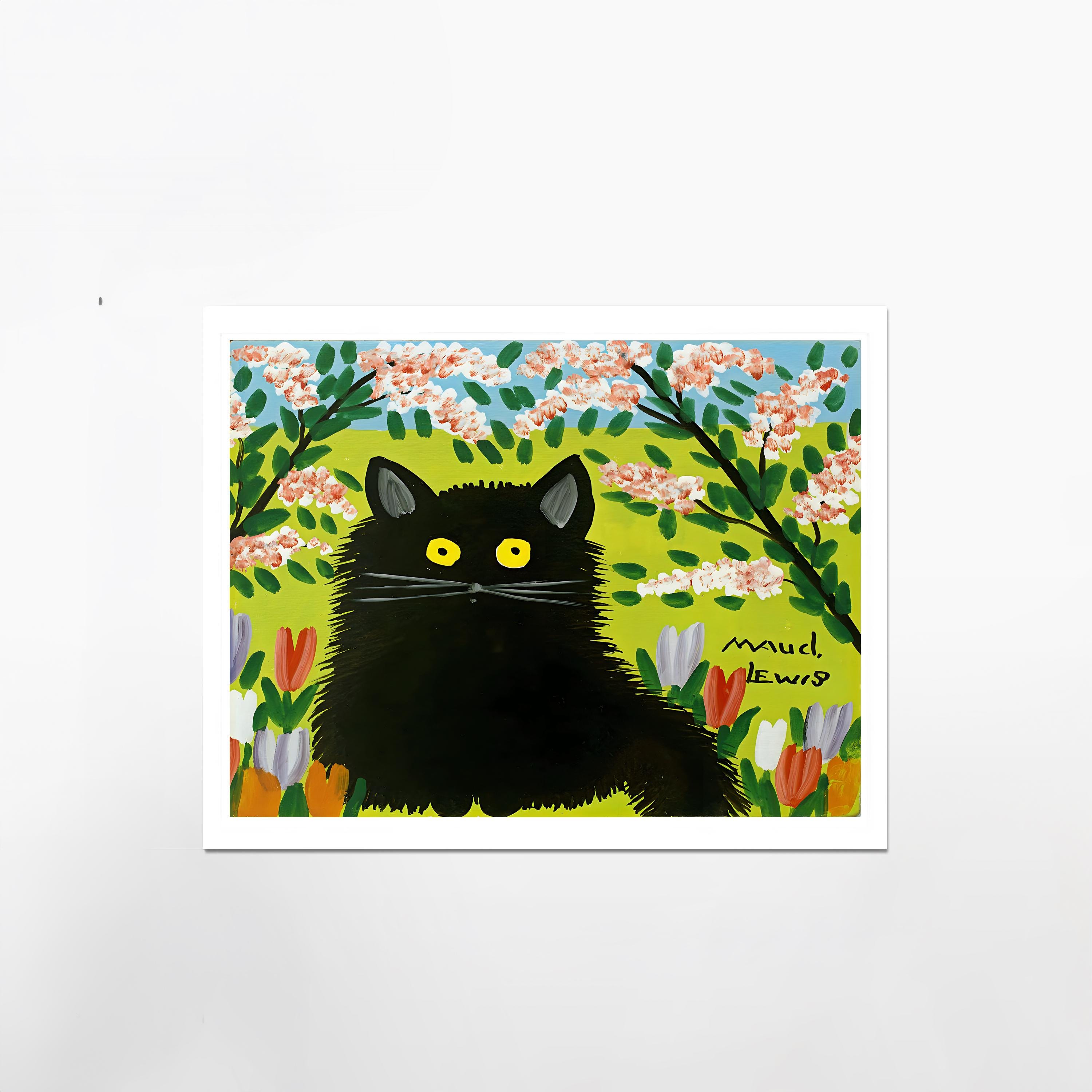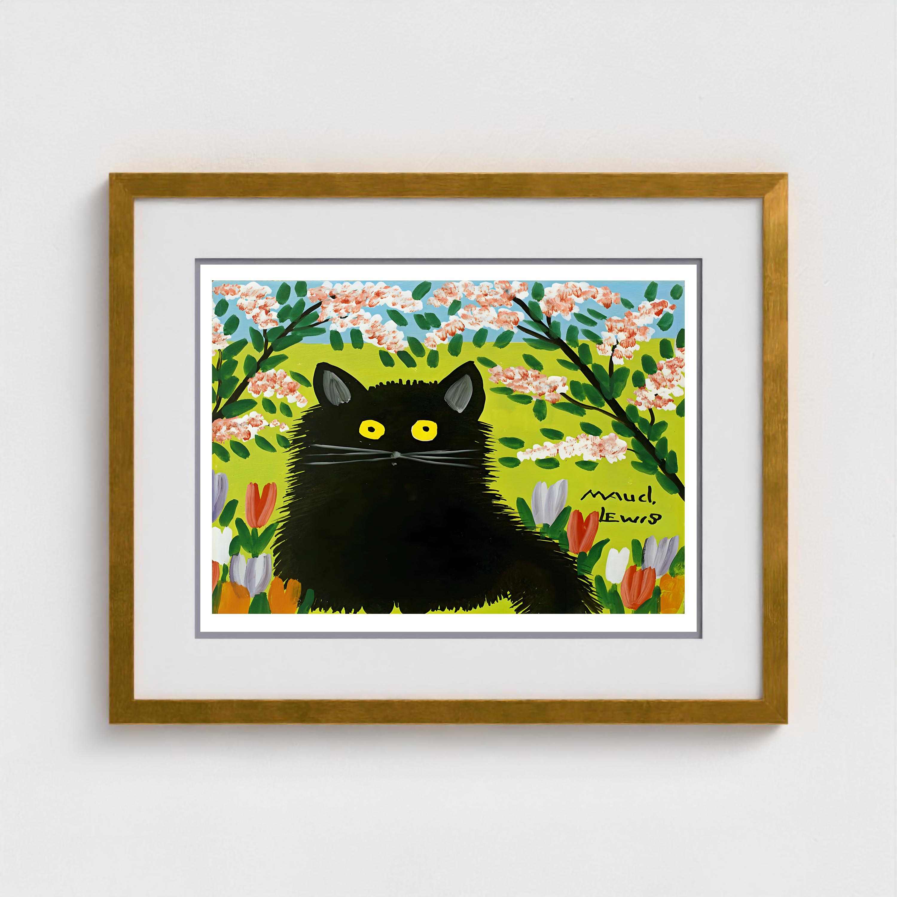 Maud Lewis, Black Cat Tulips | Giclée Fine Art Print | Canadian Heritage Folk Art