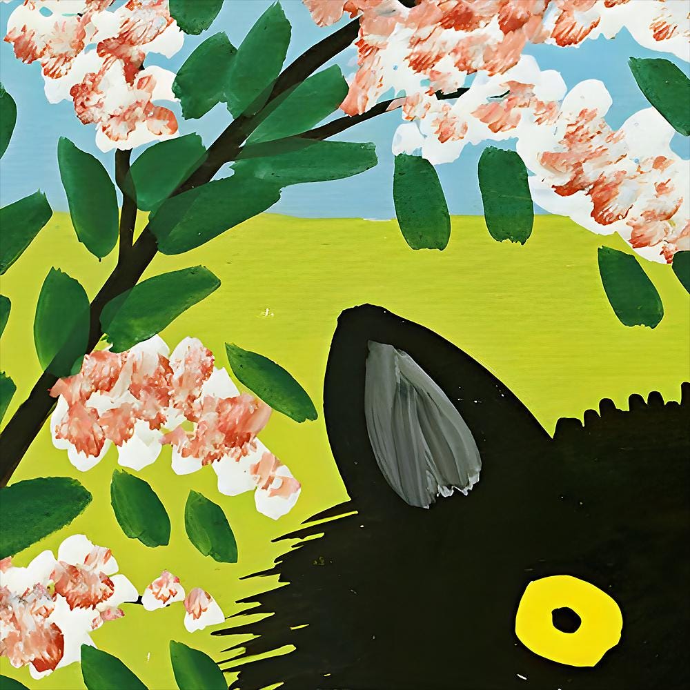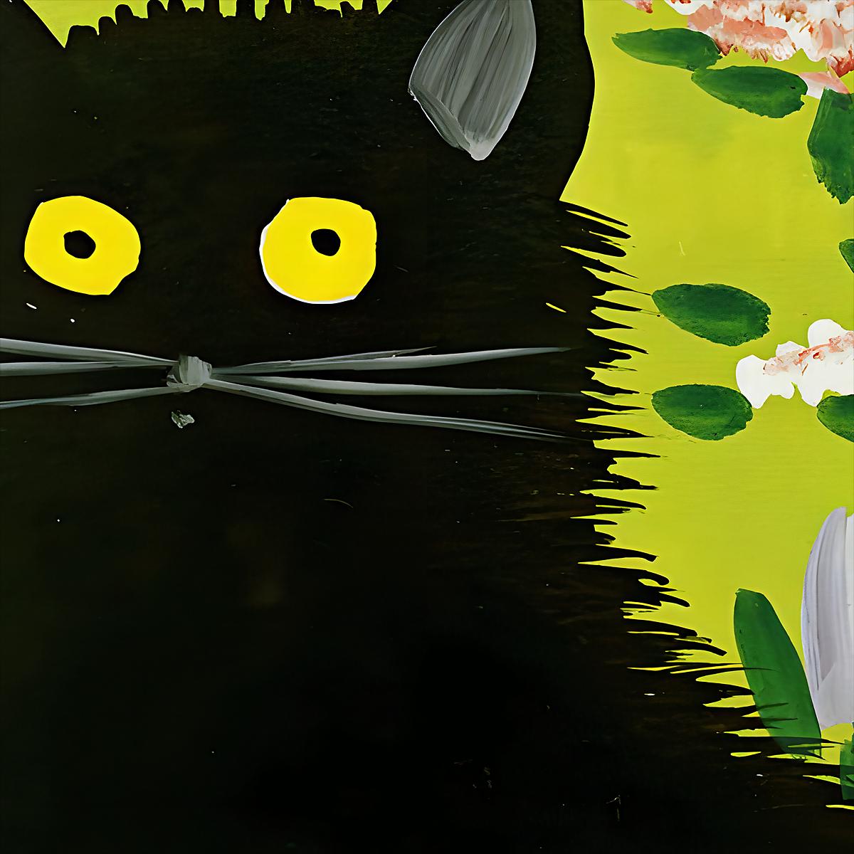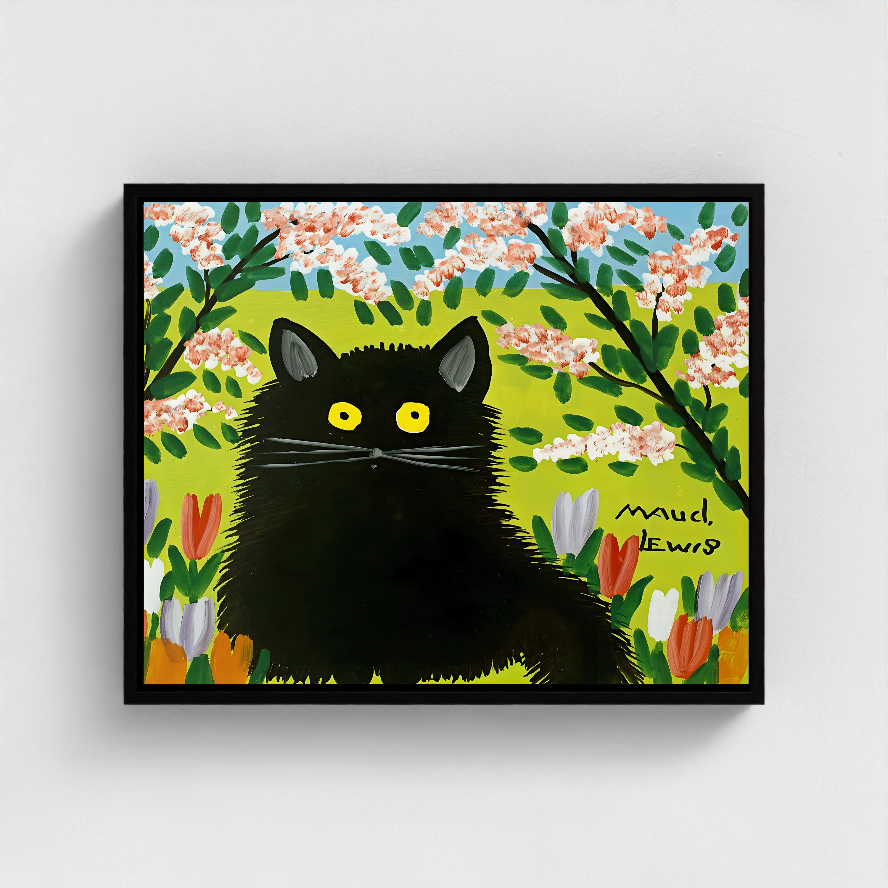 Maud Lewis, Black Cat Tulips | Giclée Fine Art Print | Canadian Heritage Folk Art