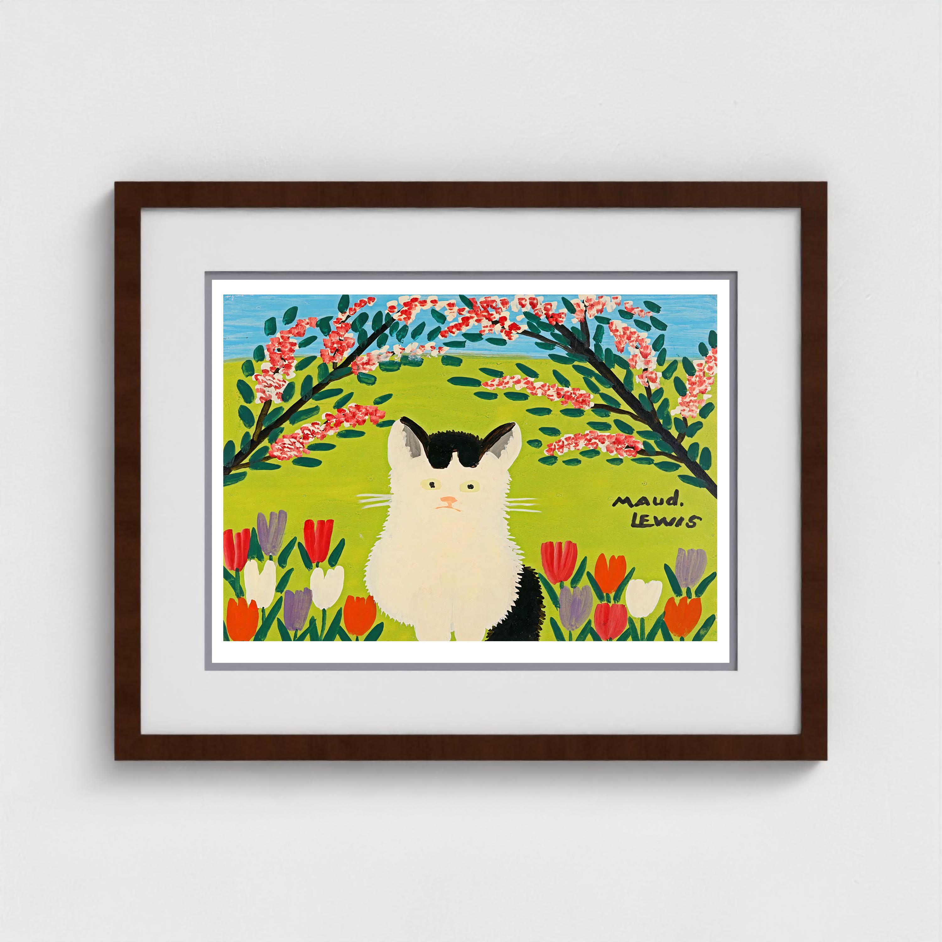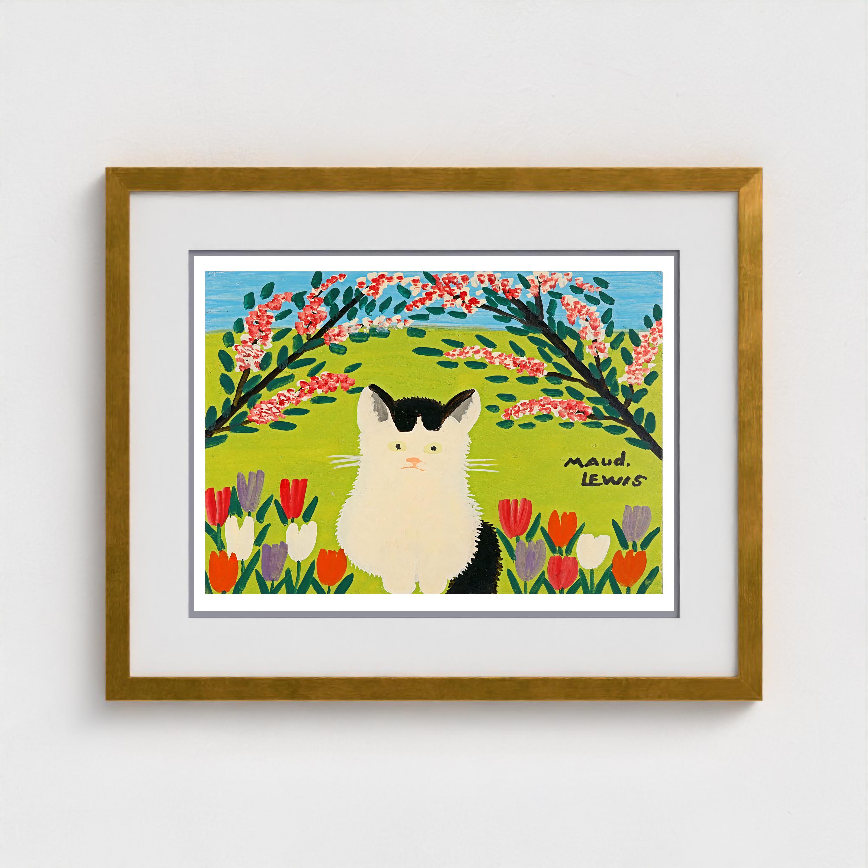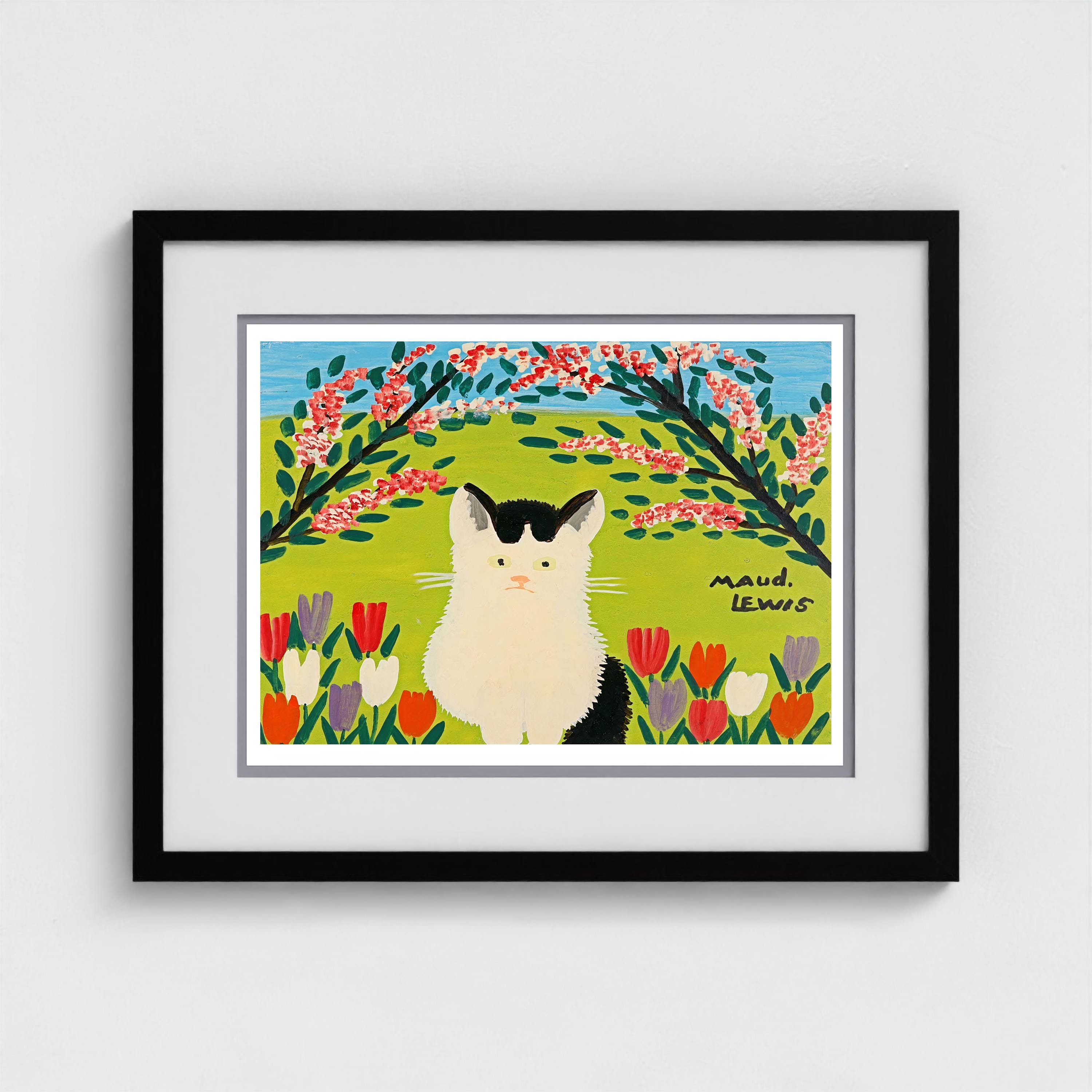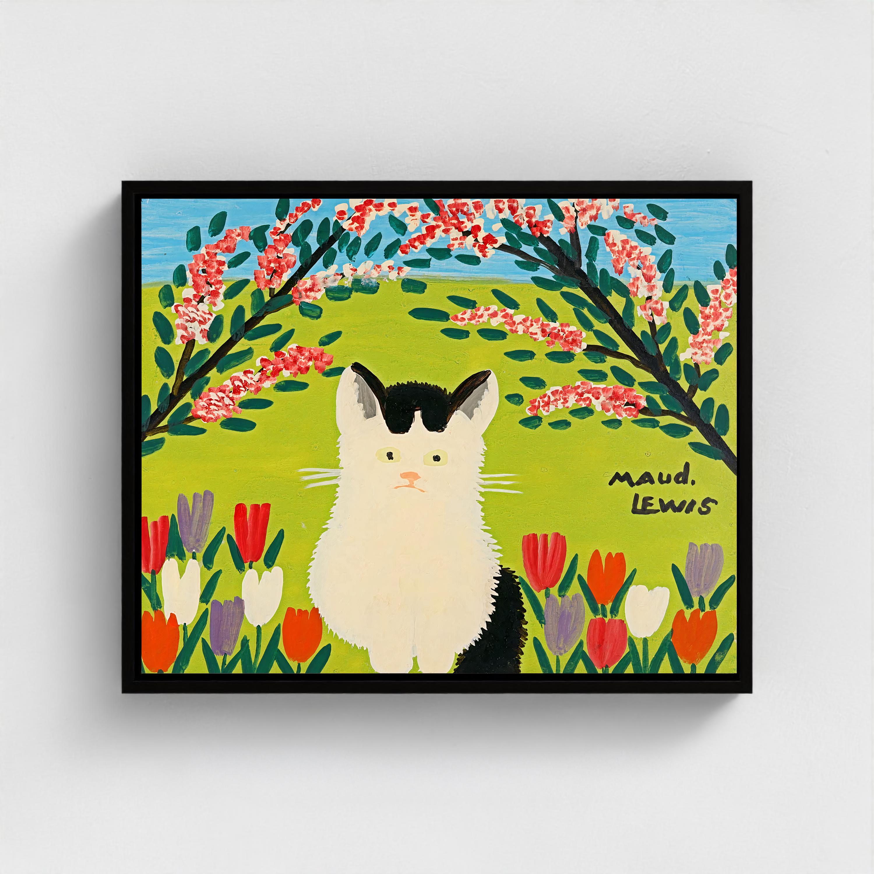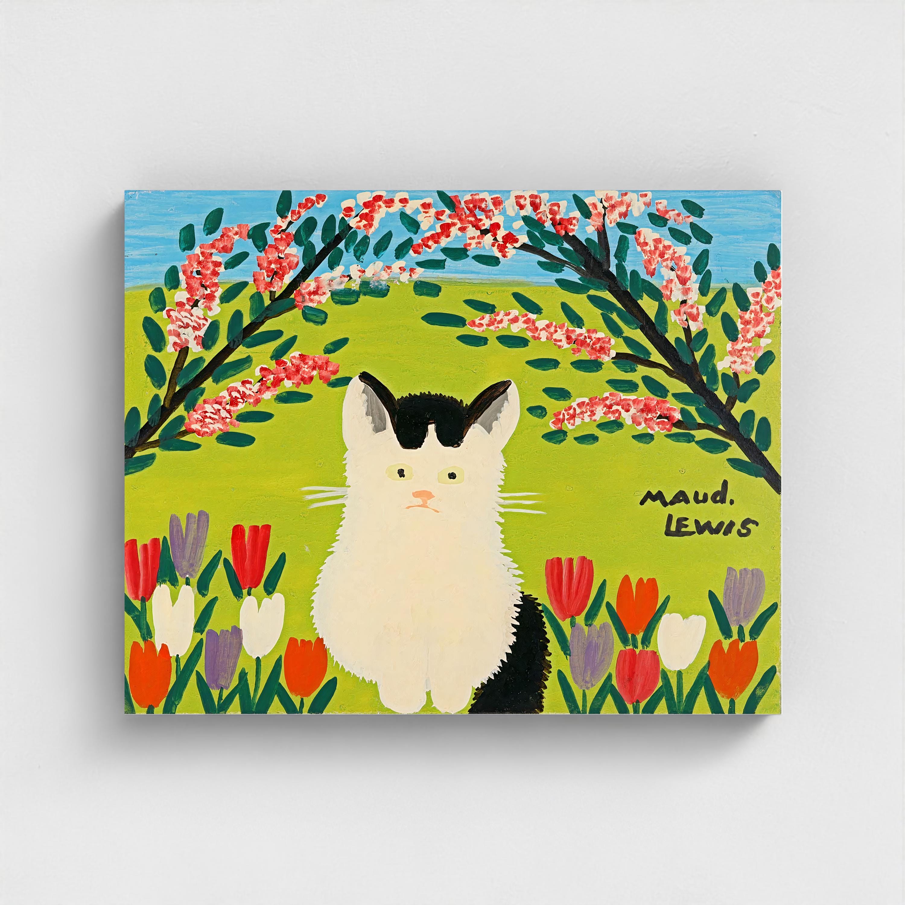 Maud Lewis (1903–1970) is Canada's most beloved folk artist, a painter who saw the world in bright primary colours and never stopped celebrating it. From her tiny roadside home in Marshalltown, Nova Scotia, she filled canvas after canvas with the scenes she loved — fluffy black cats in fields of tulips, oxen hauling logs through fresh snow, jaunty sleighs on country roads, harbours dotted with sailboats under endless blue skies. She learned to paint from her mother as a girl in Yarmouth, and that early gift became a lifelong calling. Working entirely from memory and imagination, Lewis developed a style that is instantly recognizable — bold, warm, and brimming with an optimism that has charmed collectors around the world for decades. Her painted house, covered inside and out with flowers, birds, and butterflies, is now preserved as a permanent exhibit at the Art Gallery of Nova Scotia, and her work is held in major collections including the Canadian Museum of History. The 2016 film Maudie introduced her story to a global audience, but it is the paintings themselves — radiant with colour, alive with Maritime spirit — that continue to draw people in, generation after generation.