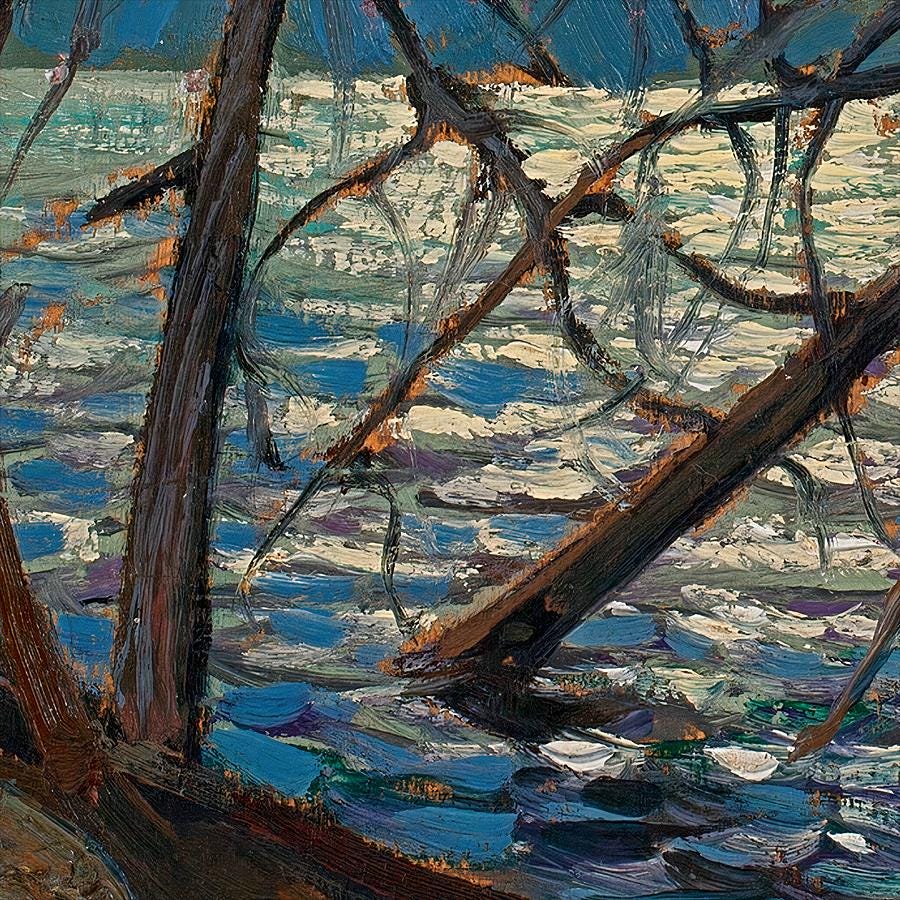 Tom Thomson's Canoe Lake (Spring 1914) - a luminous study of the lake that would become inseparable from