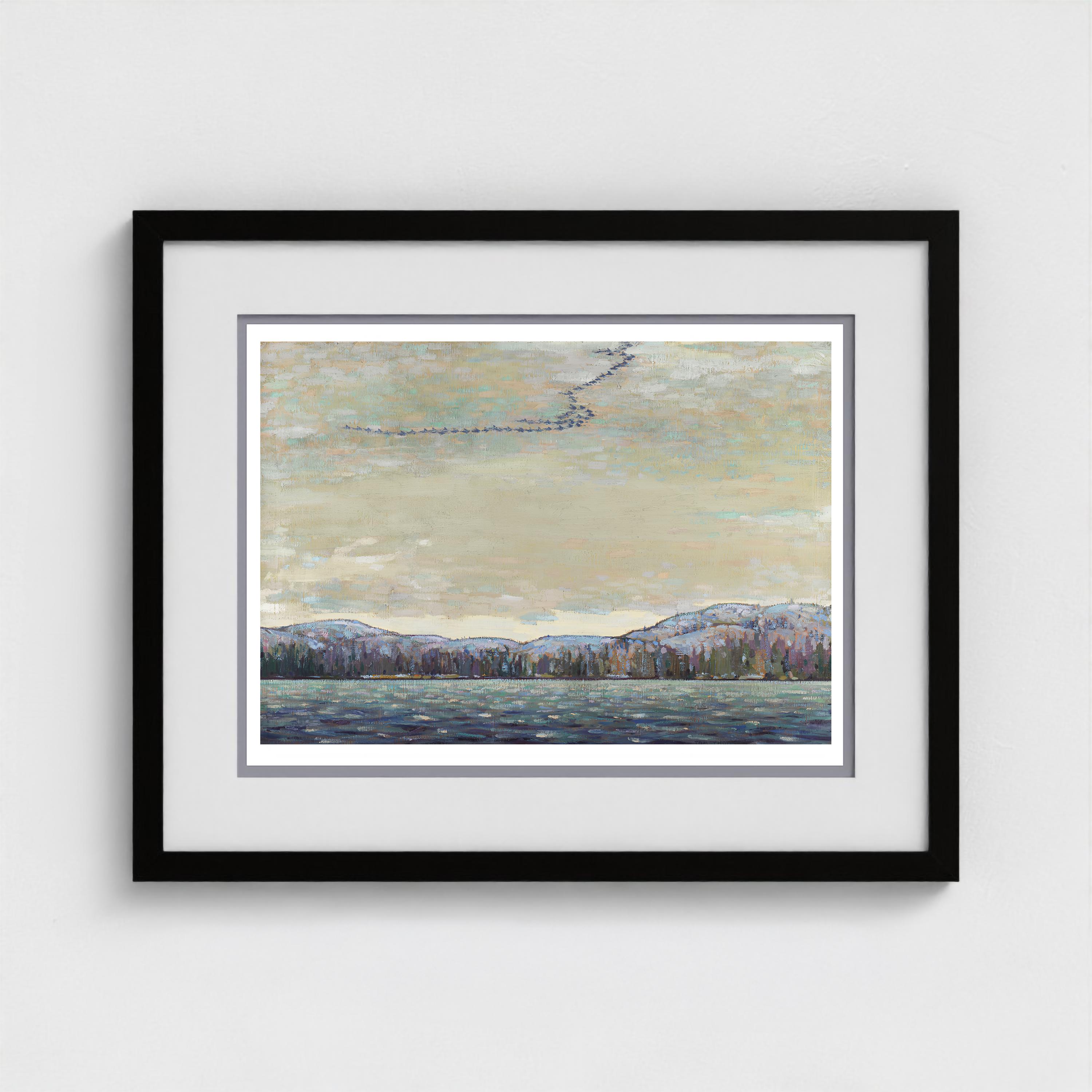 Gallery Frame — Your artwork is professionally printed on fine art paper, presented with a white mat under anti-reflective glass in a classic black hardwood frame. Ready to hang. Museum-quality presentation for collectors and discerning spaces.