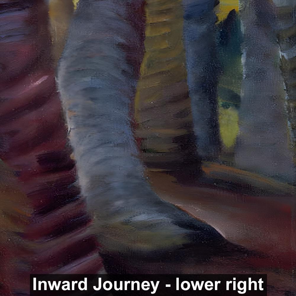 Emily Carr's "Inward Journey" distils her lifelong communion with the forest into a single passage — a path drawing the eye deeper into the green interior where outer world falls away and something essential begins. The title speaks to Carr's understanding that every journey into the wilderness was equally a journey into the self. The forest does not merely surround the viewer but absorbs them, and Carr's swirling forms guide not the feet but the attention inward, toward the stillness she believed lived at the centre of all living things.