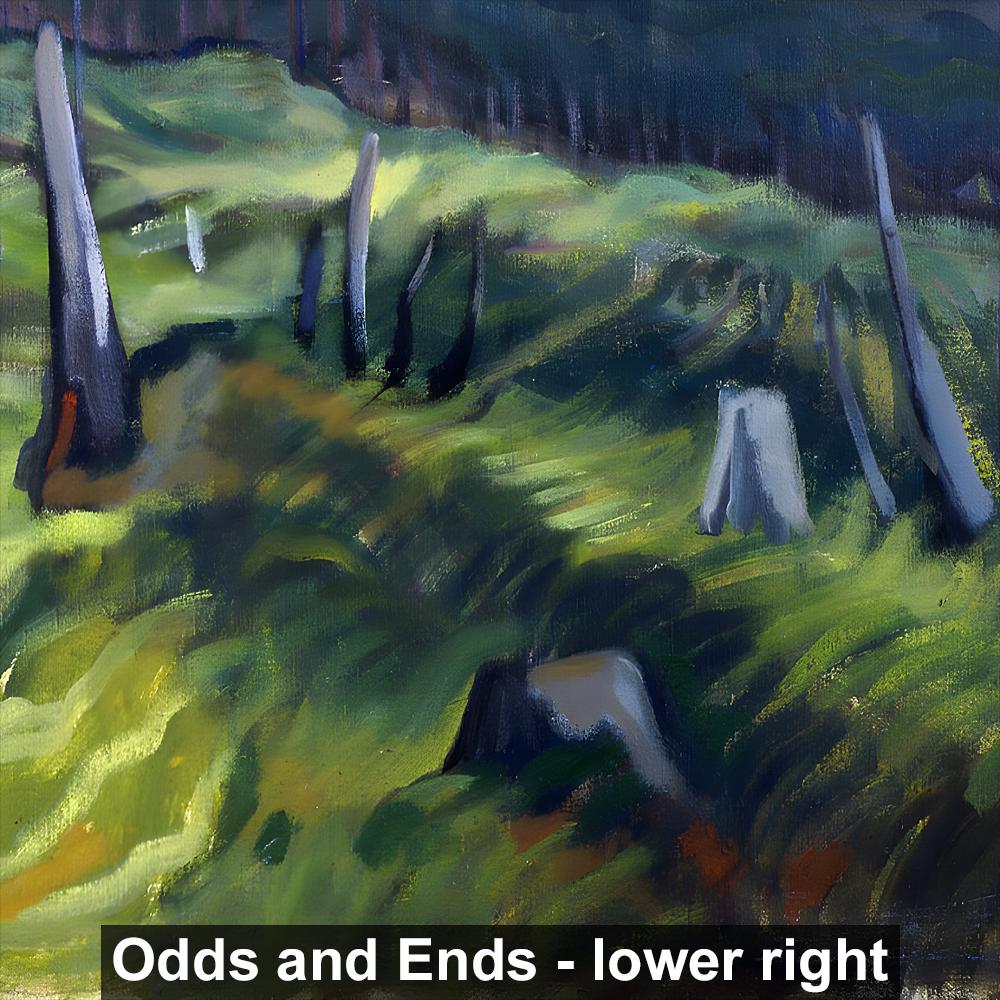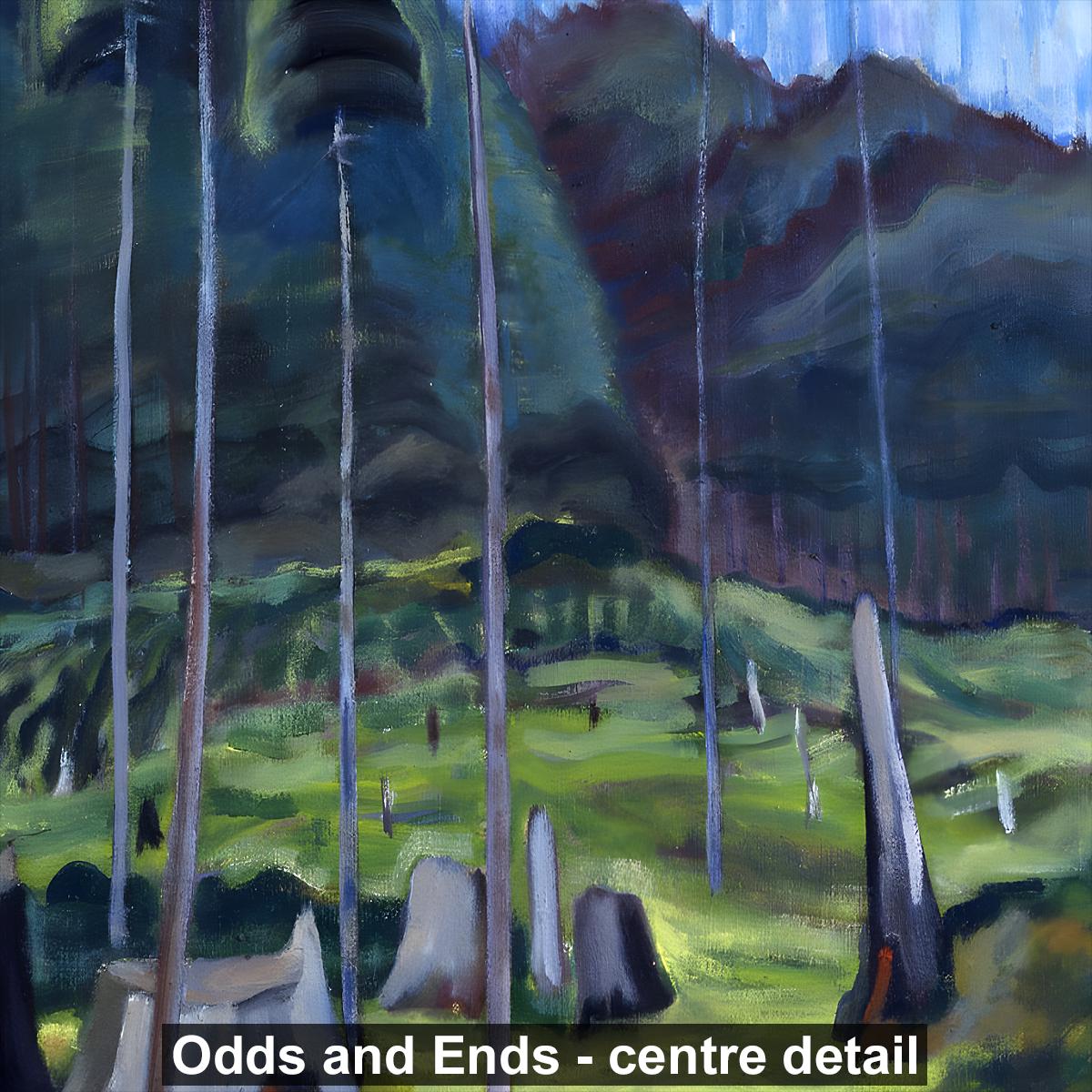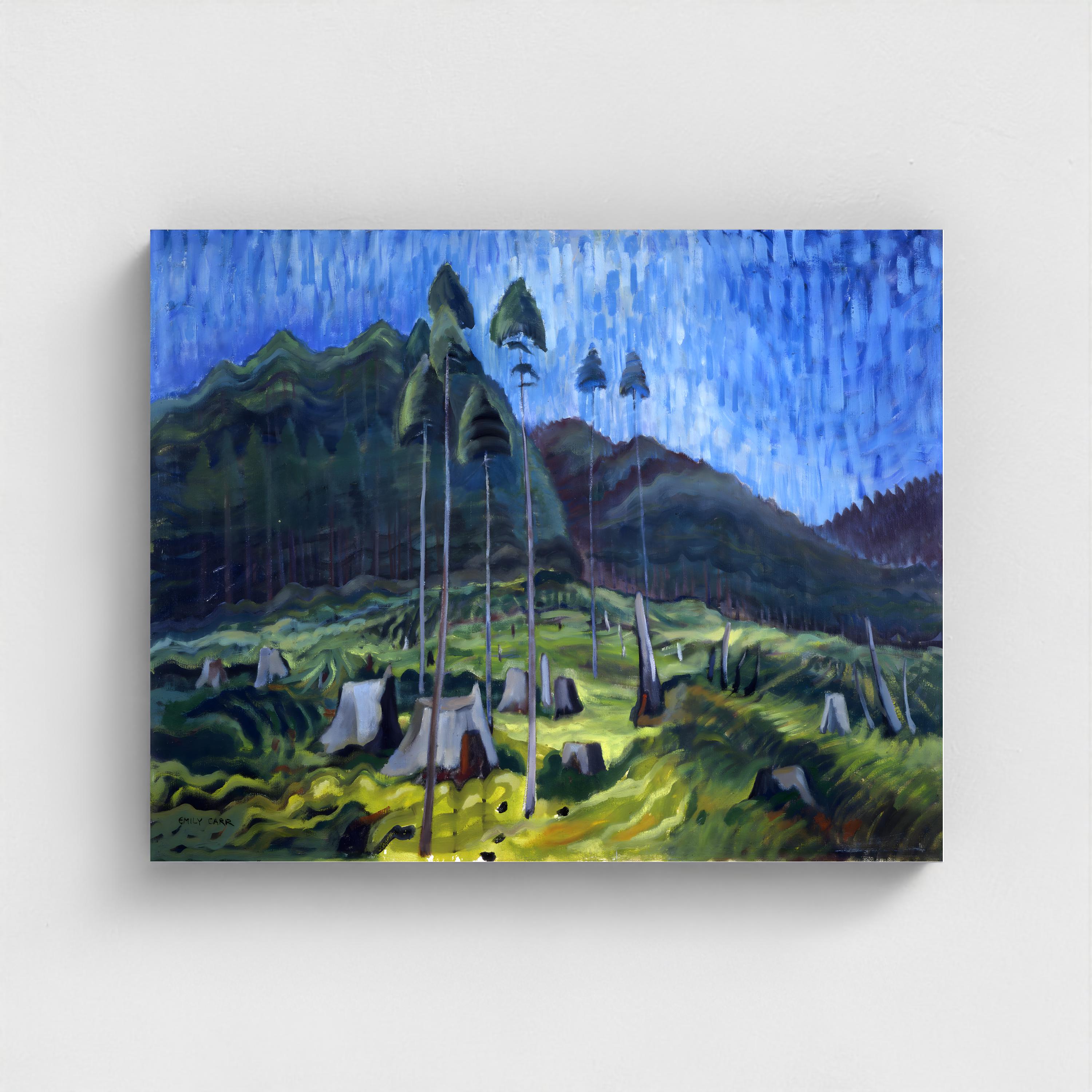 Emily Carr's "Odds and Ends" (1939) gathers the overlooked remnants of the forest floor — stumps, fragments, and discarded forms that most eyes would pass without notice. In Carr's late vision, nothing in nature is waste. These cast-off pieces pulse with the same life force as the towering cedars they once were, each odd shape and broken form carrying its own dignity and story. Painted in the final years of her career, this work reveals Carr's deepest conviction: that beauty is not reserved for the grand and the whole, but lives equally in what has been broken, weathered, and left behind.