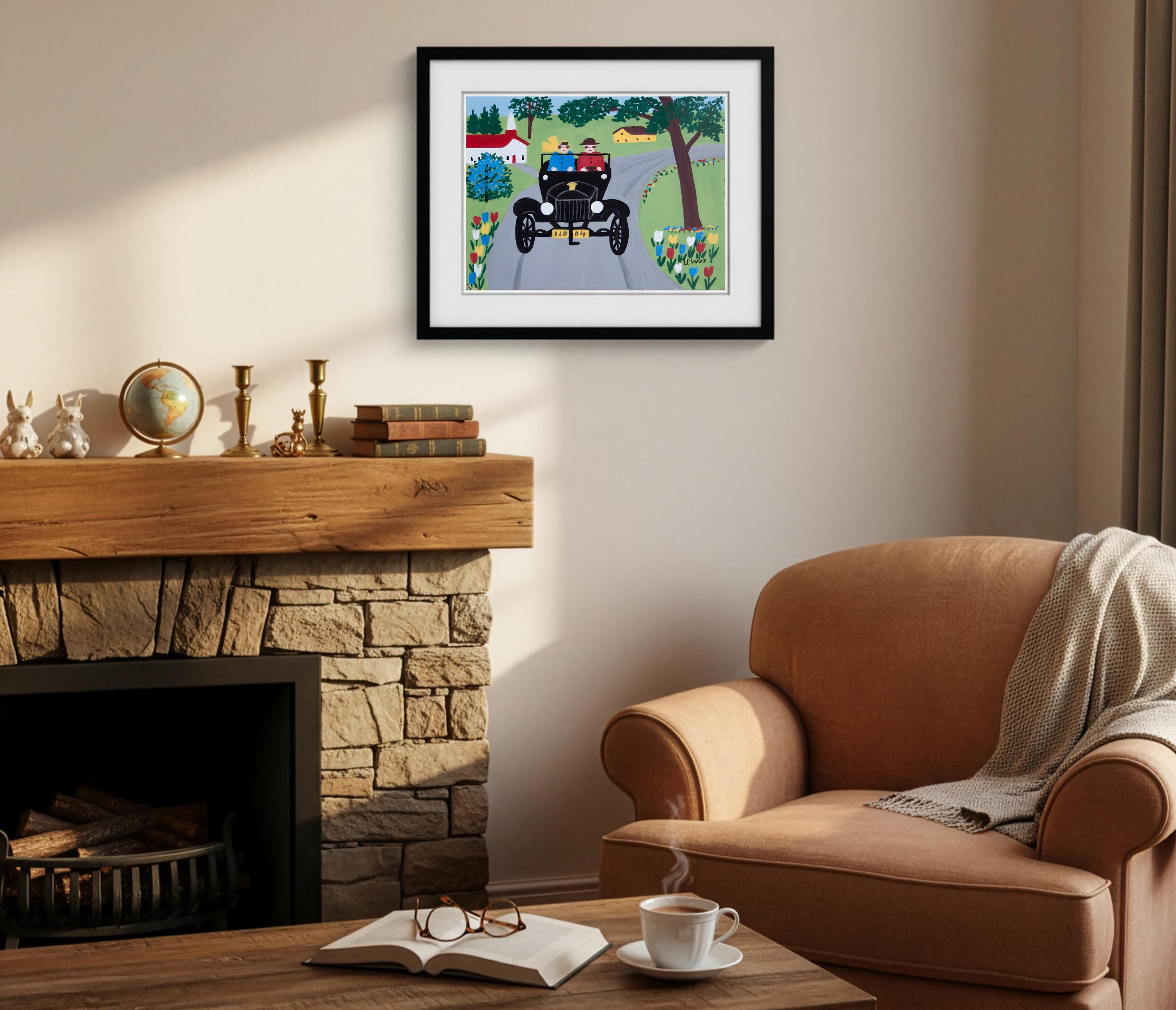 Maud Lewis, Antique Car-1958 | Canadian Heritage Art Canvas Framed and unframed