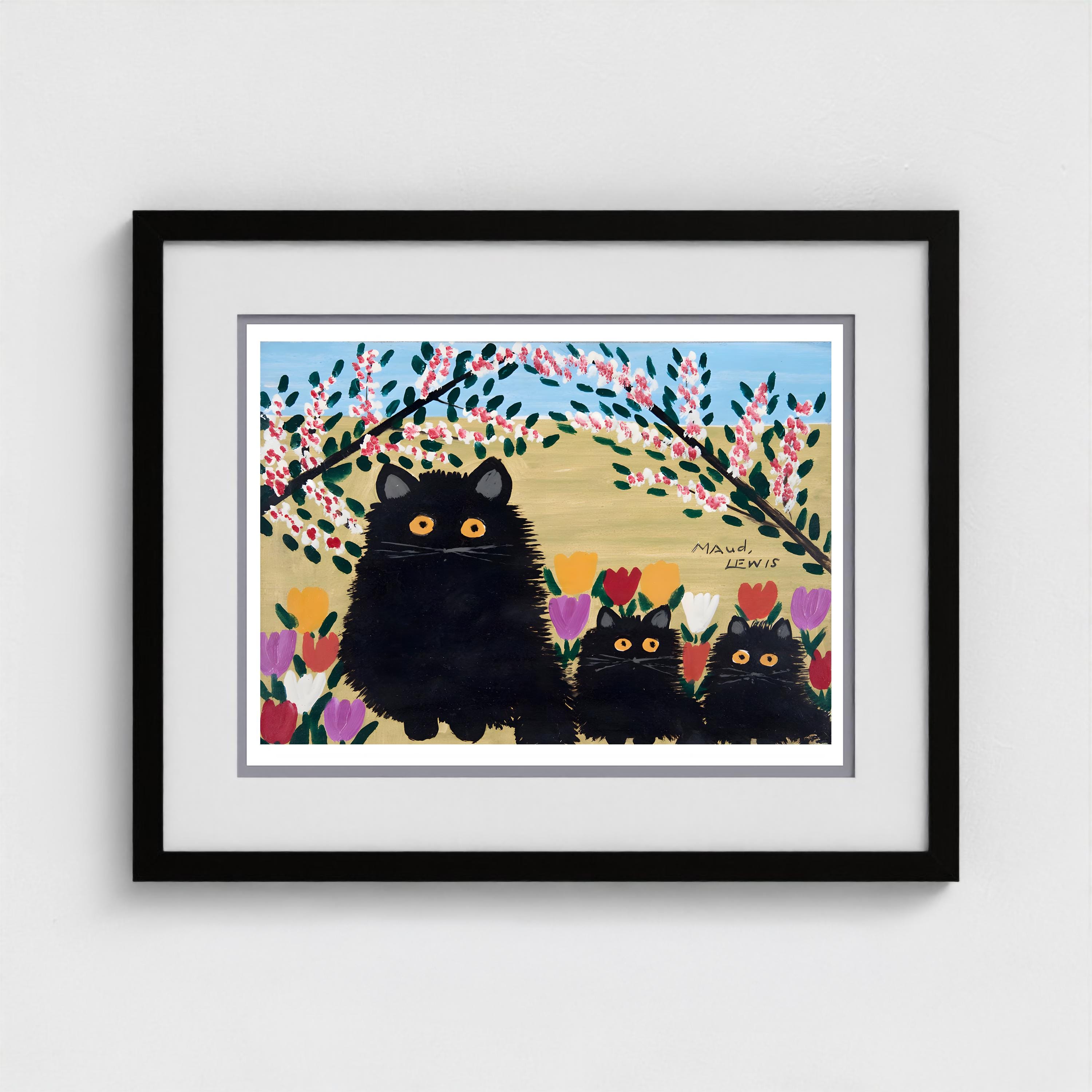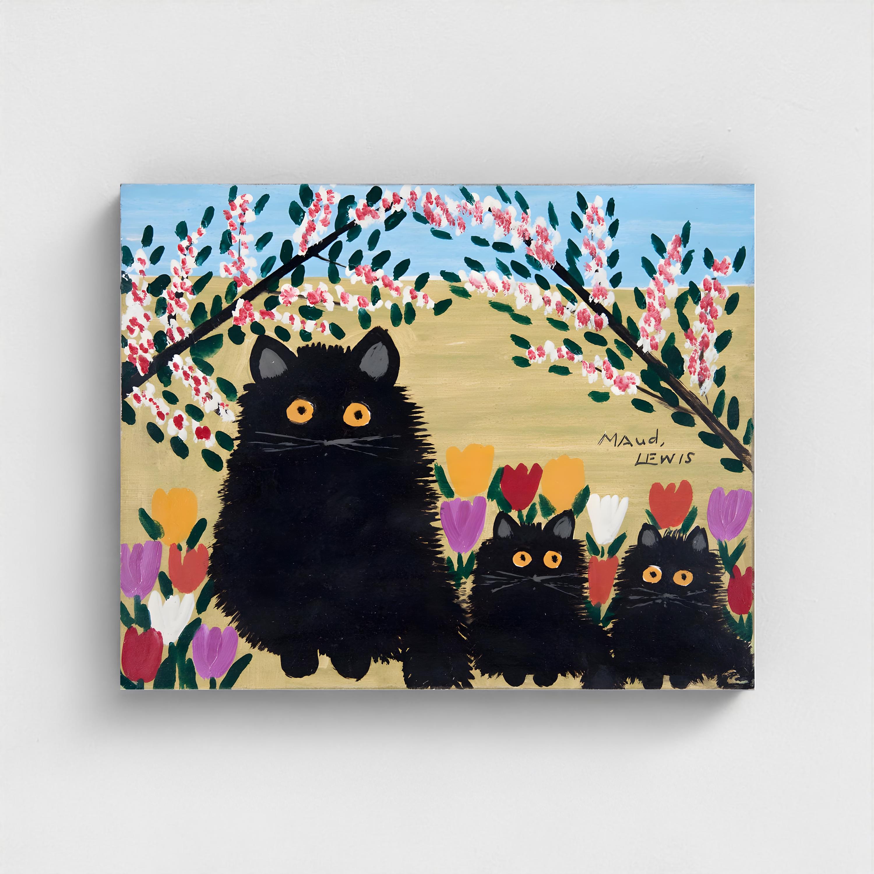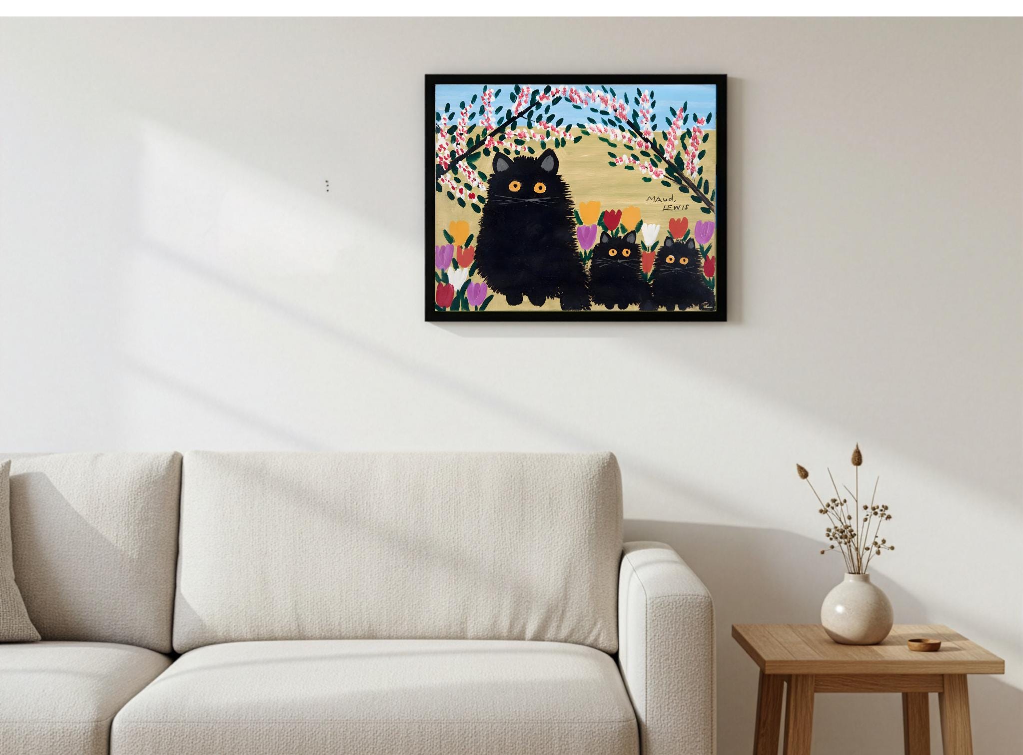 Maud Lewis, Black Cat, Two Kittens-1965 | Canadian Heritage Art Canvas Framed and unframed