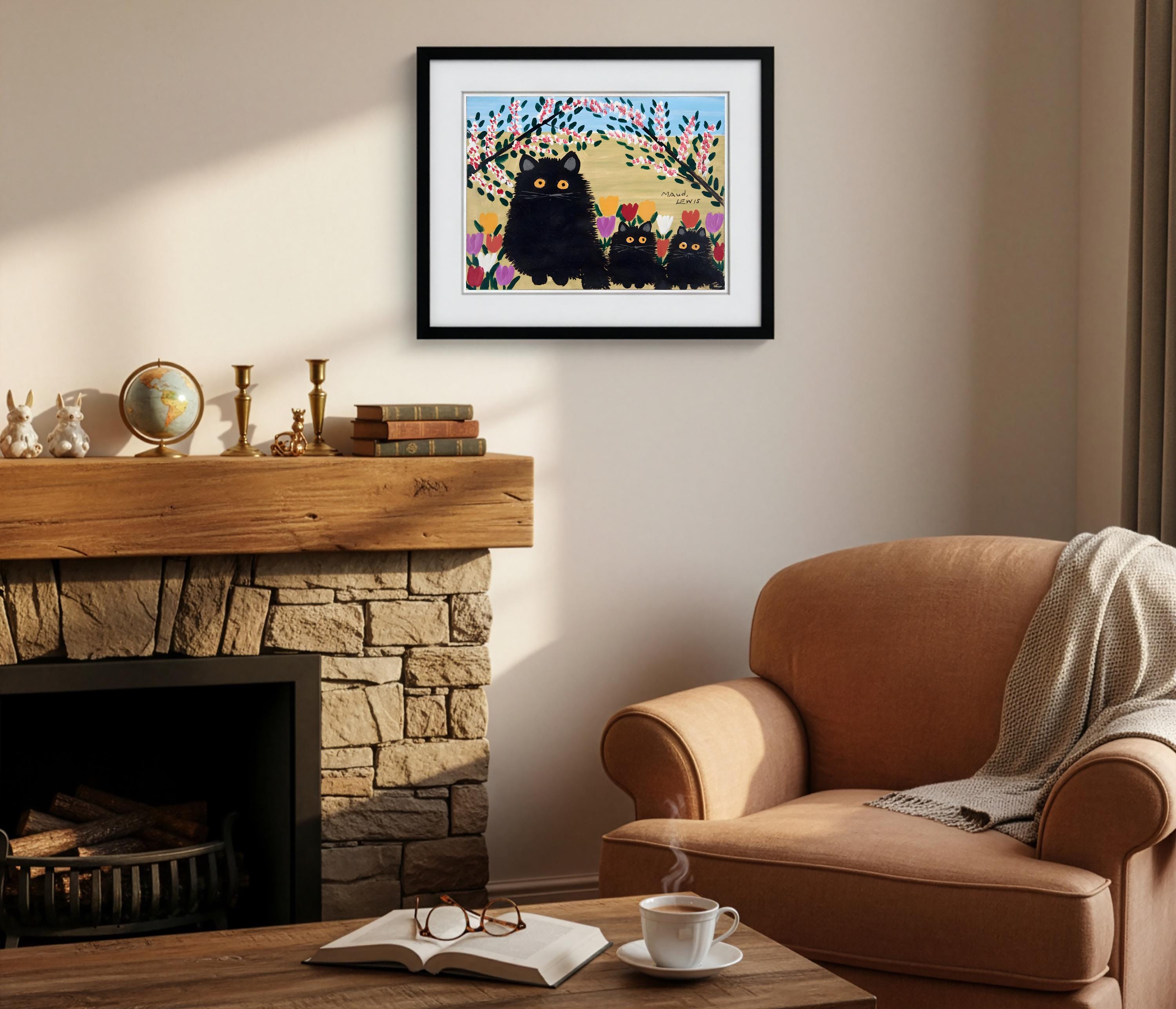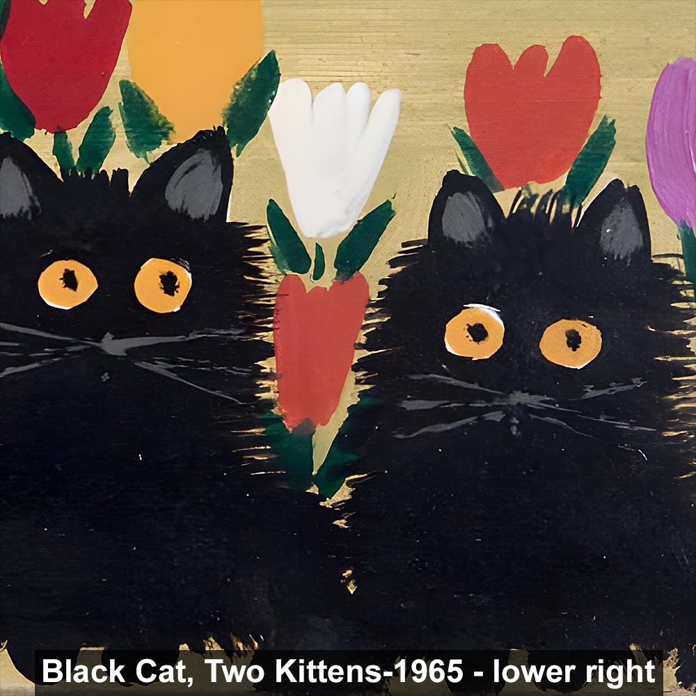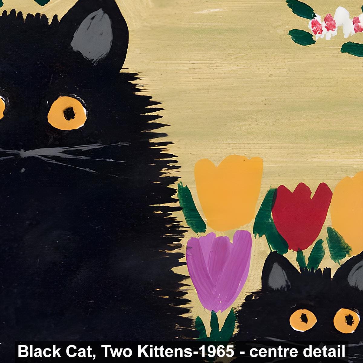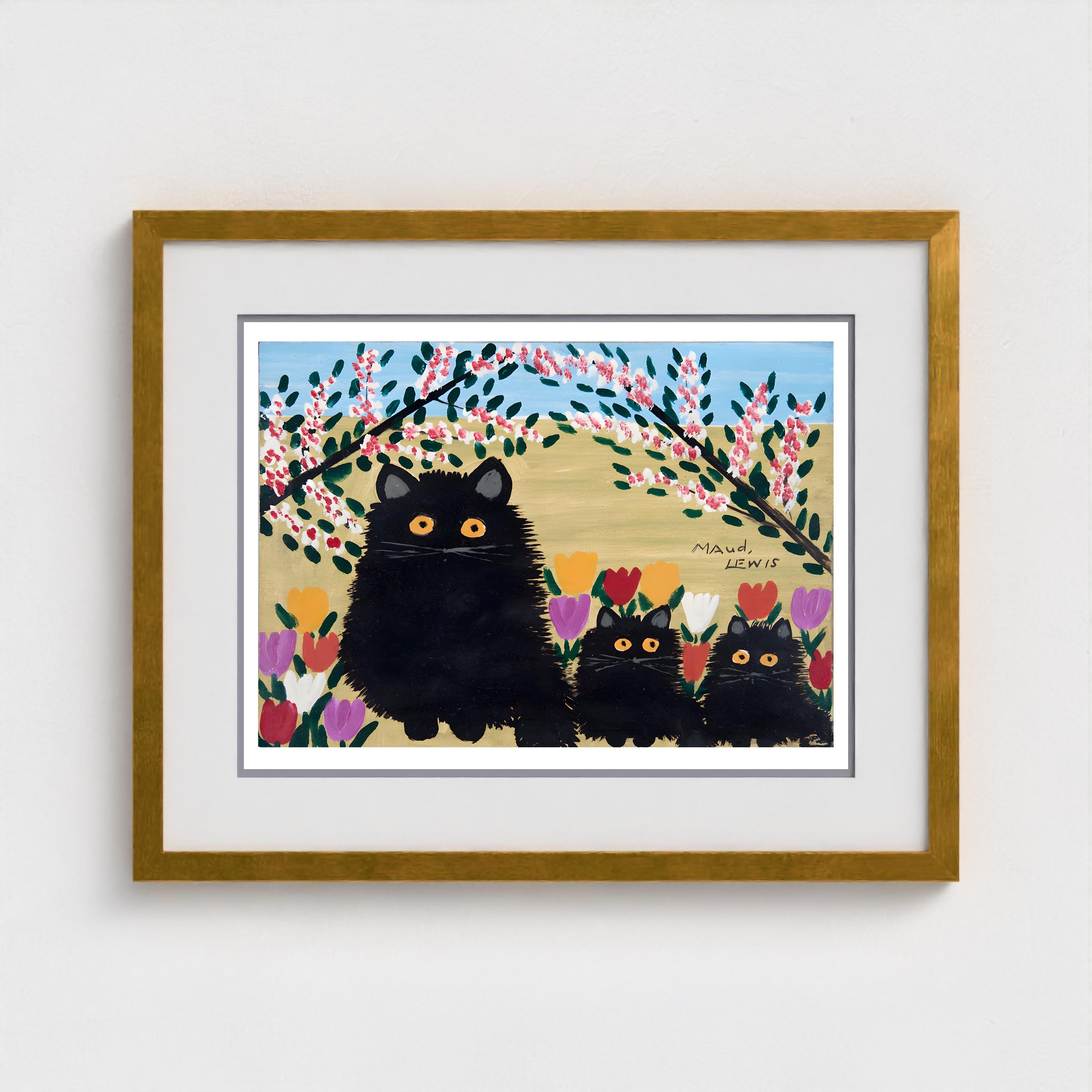Maud Lewis, Black Cat, Two Kittens-1965 | Canadian Heritage Art Canvas Framed and unframed