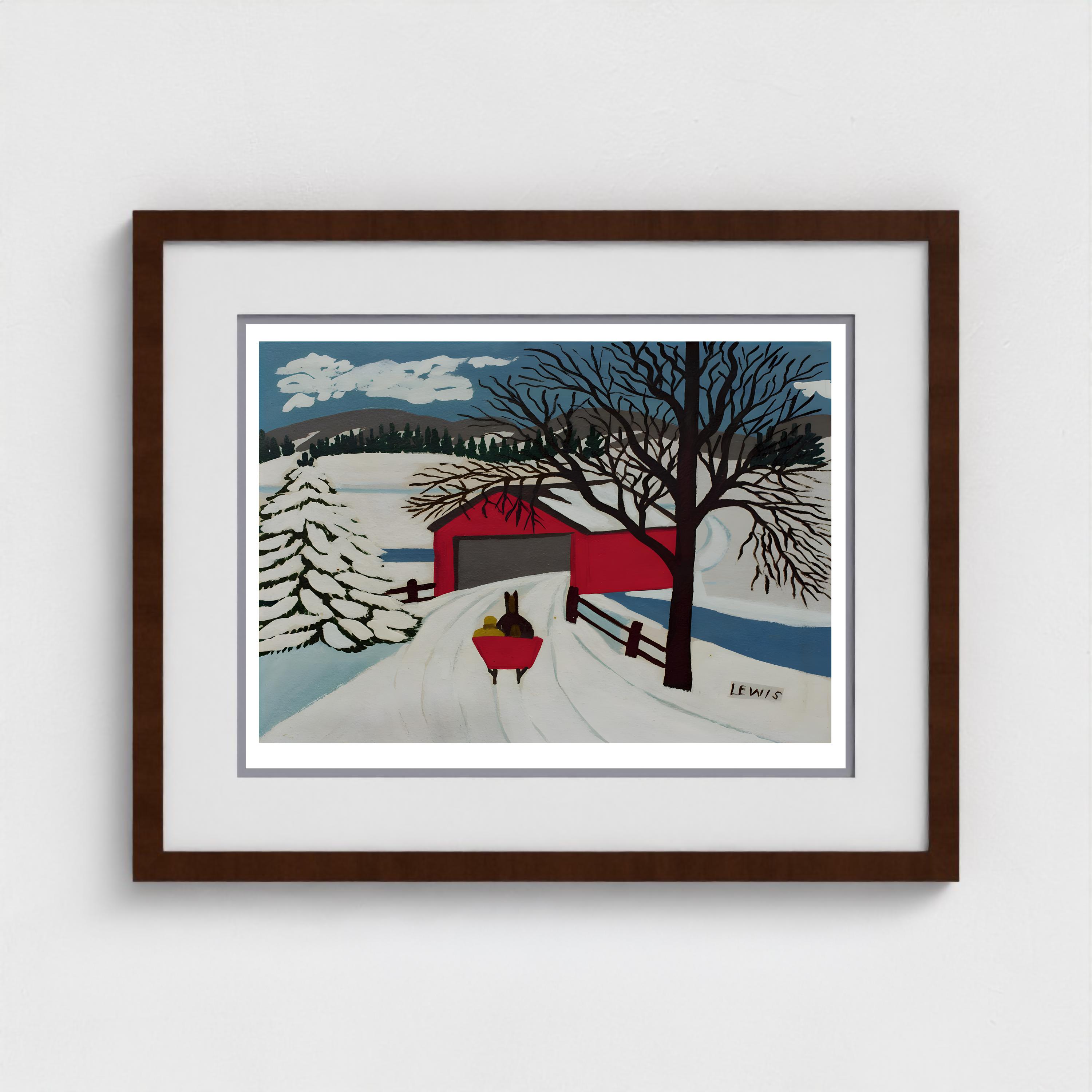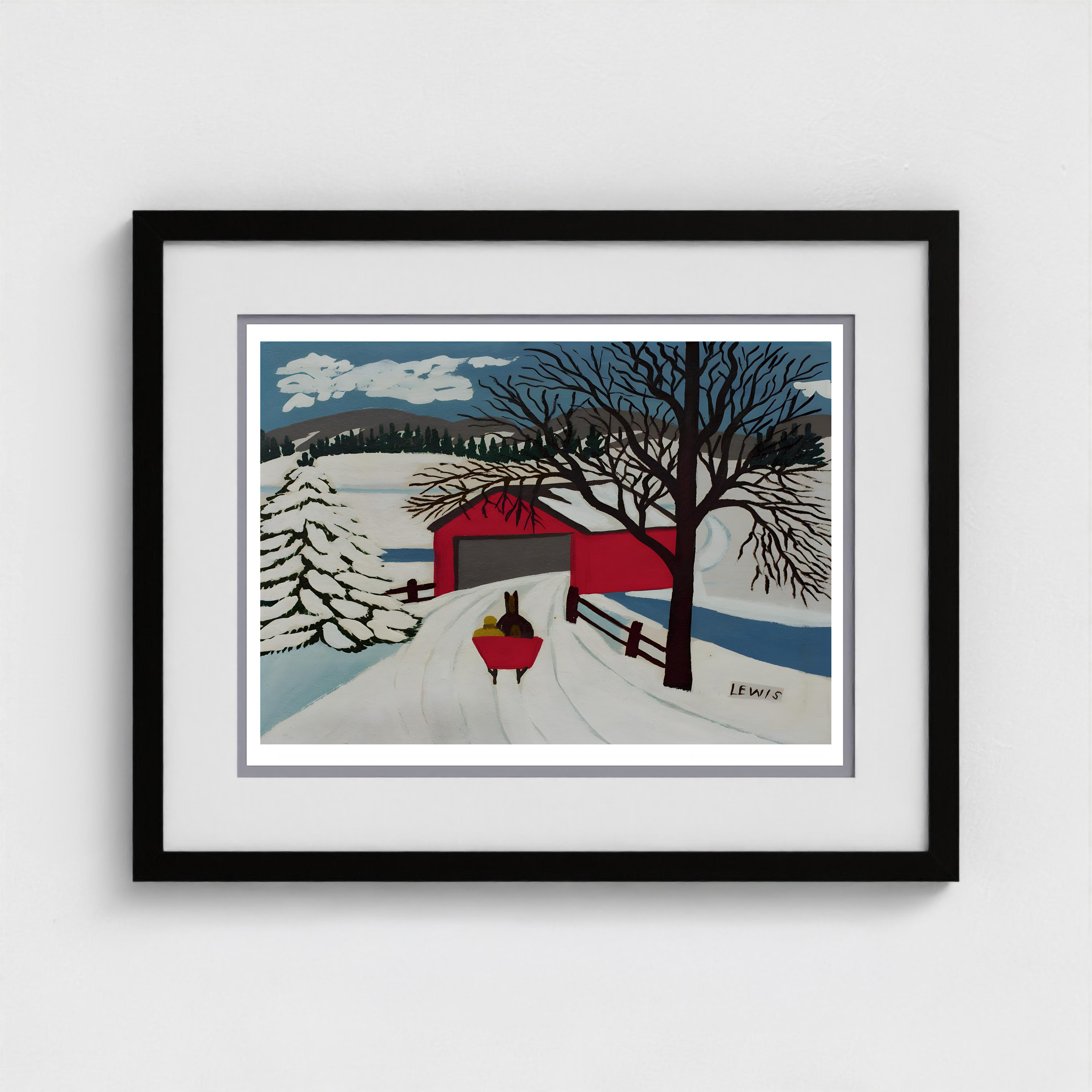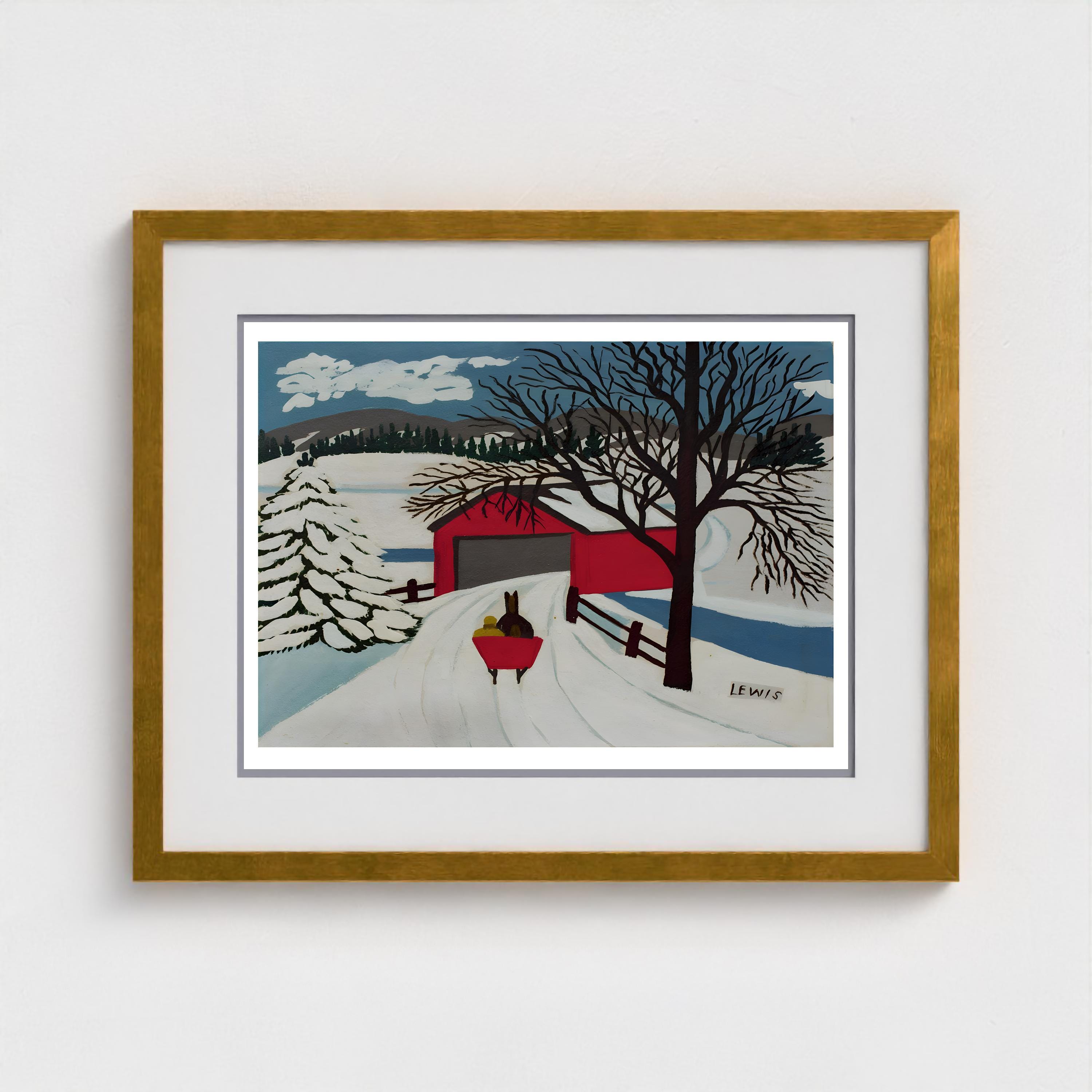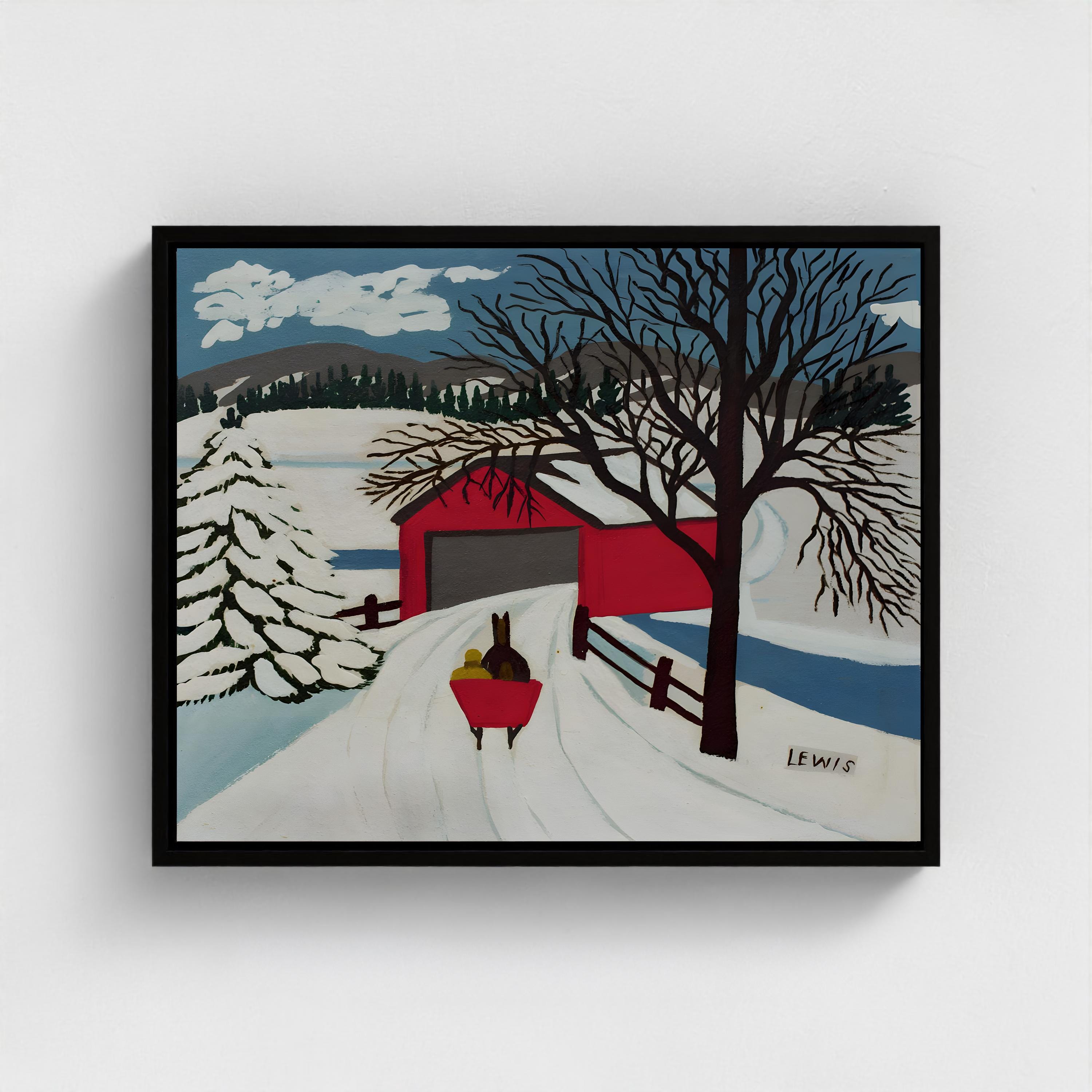 Maud Lewis, Covered Bridge and Winter Sleigh-1959 | Vintage Canadian Folk Art